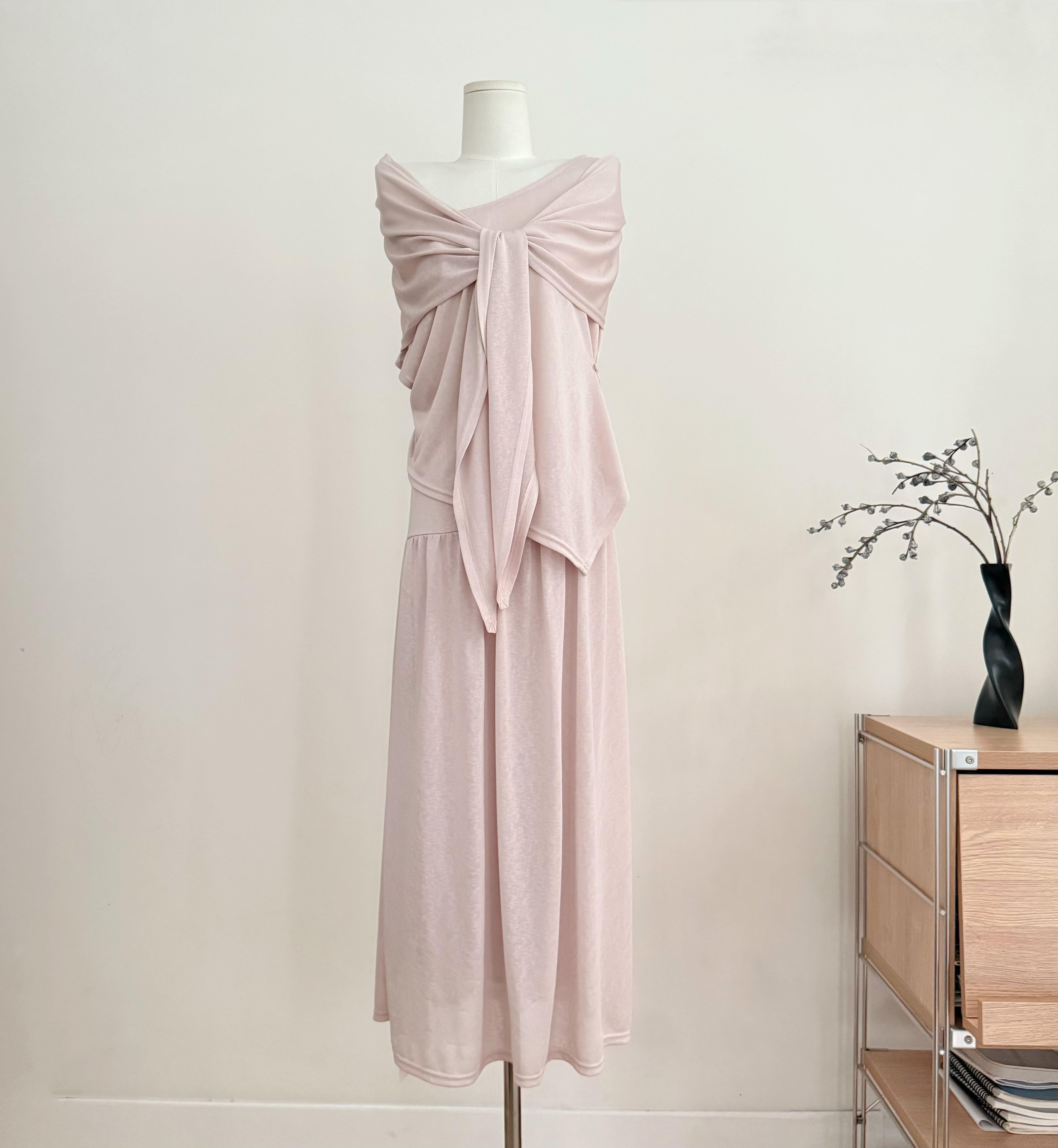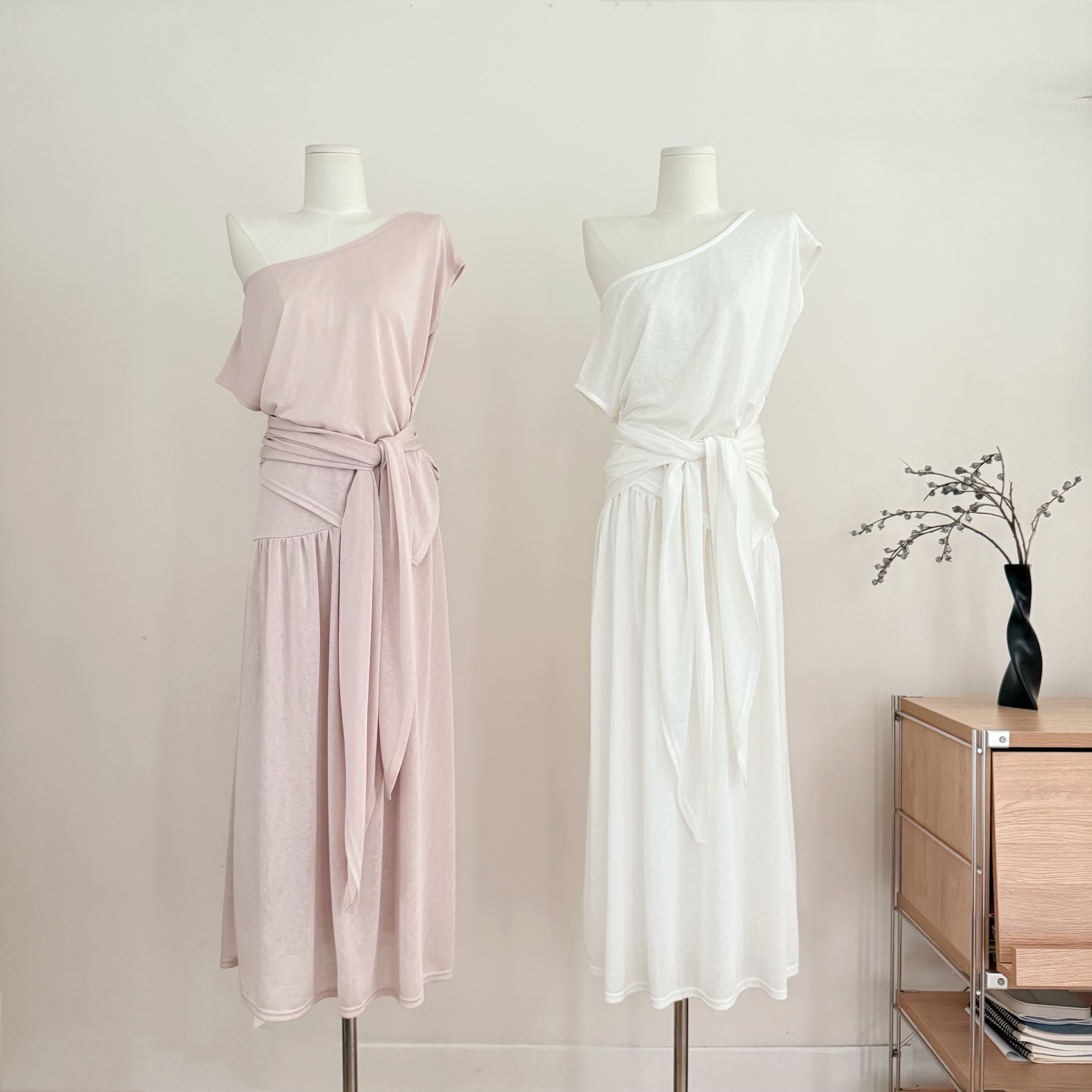 sunoneone 슬림해 보이는 주름 슬립 여성 드레스 봄 프랑스식 민소매 고급 센스 허리 수축 니트 롱 스커트