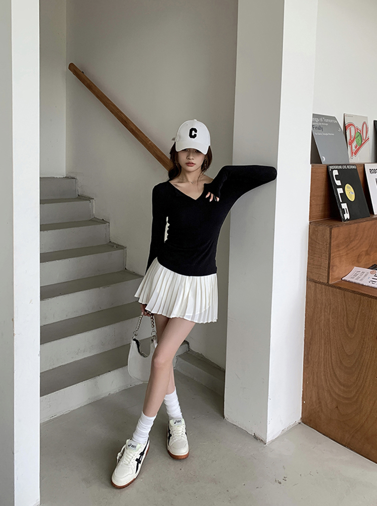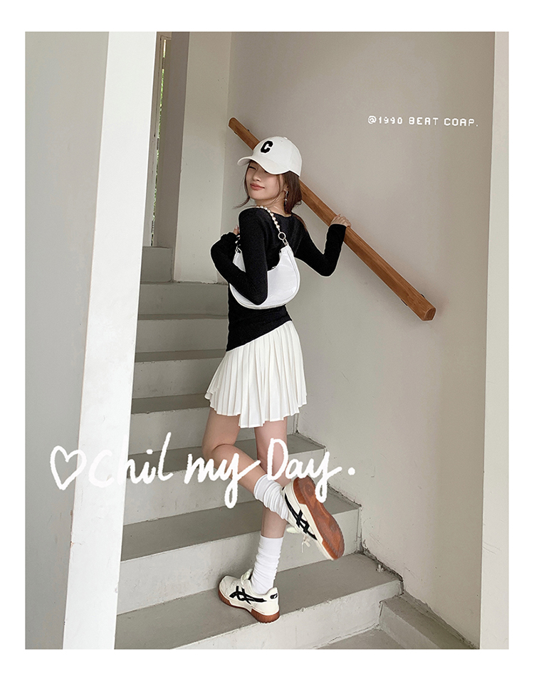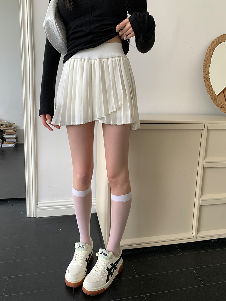 실사 2026 봄 여름 새로운 아름다운 다리 노출 방지 비스듬한 자르다 플리츠 스커트 반신 스커트 여성 슬림해 보이는 한 마디 치마바지 미니 스커트