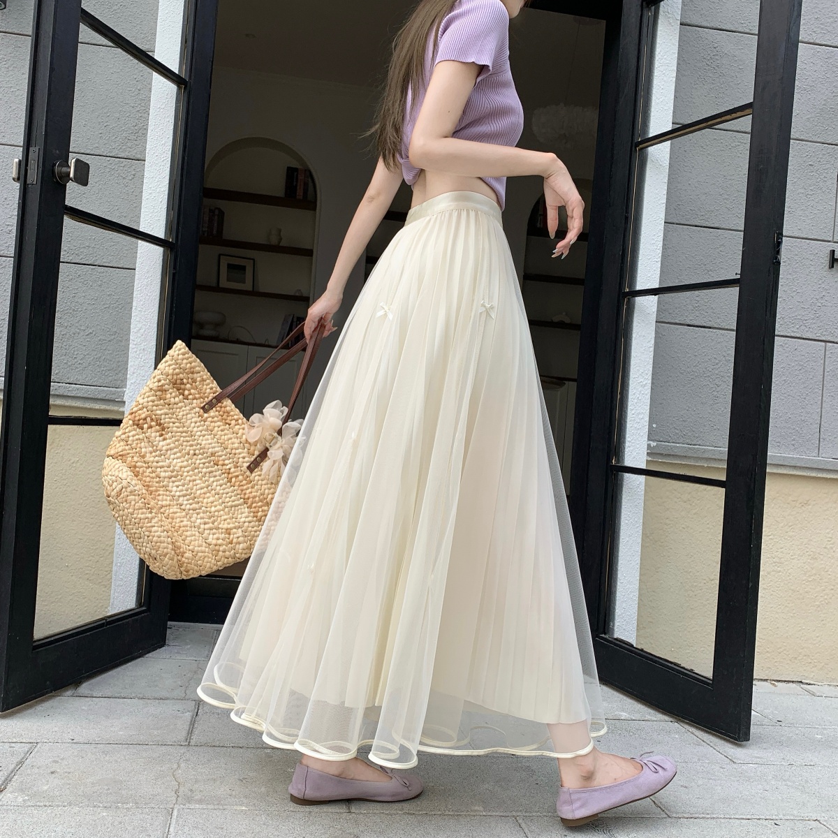 2026 여름 새로운 거즈 스커트 화이트 망사 반신 스커트 여성 도루 가을 센스 한 마디 하이웨이스트 롱 스커트 큰 진자 퍼프 스커트