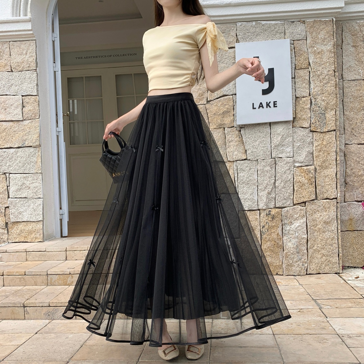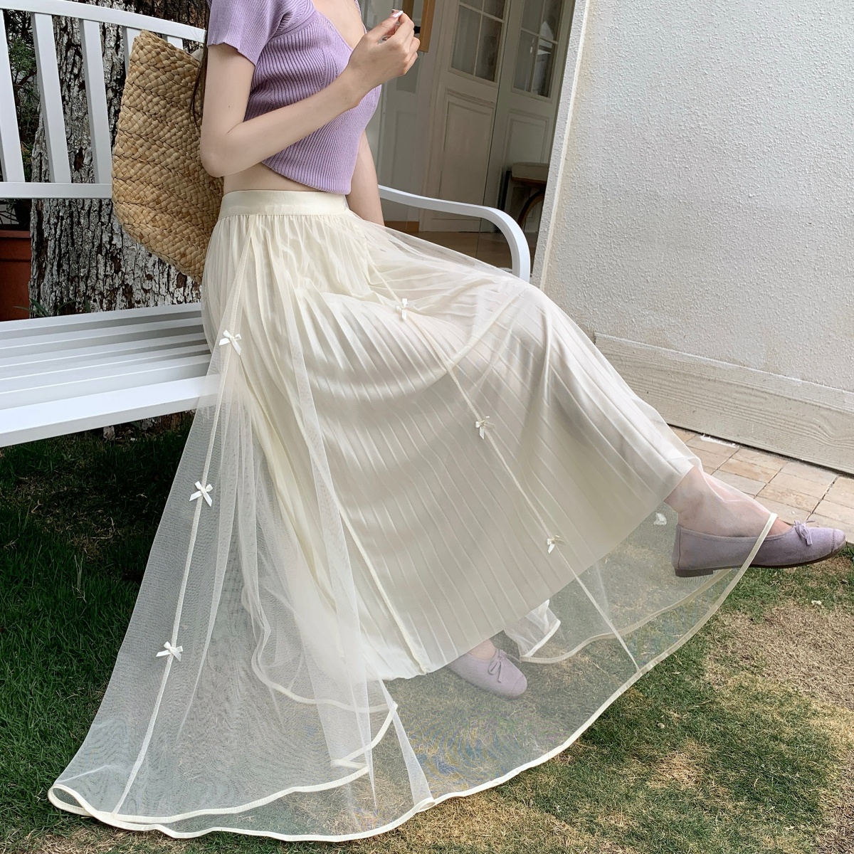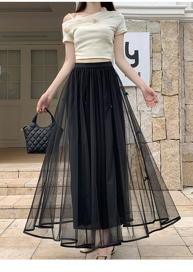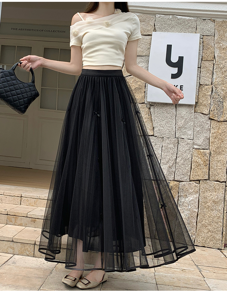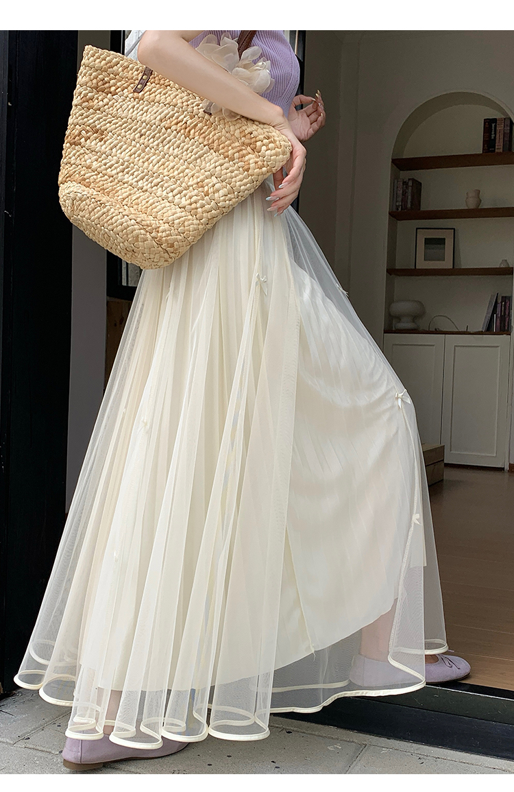 2026 거즈 스커트 새로운 고급 나비 매듭 망사 반신 스커트 여자 중간 롱 코트 요정 진자 여름 한 마디 치마