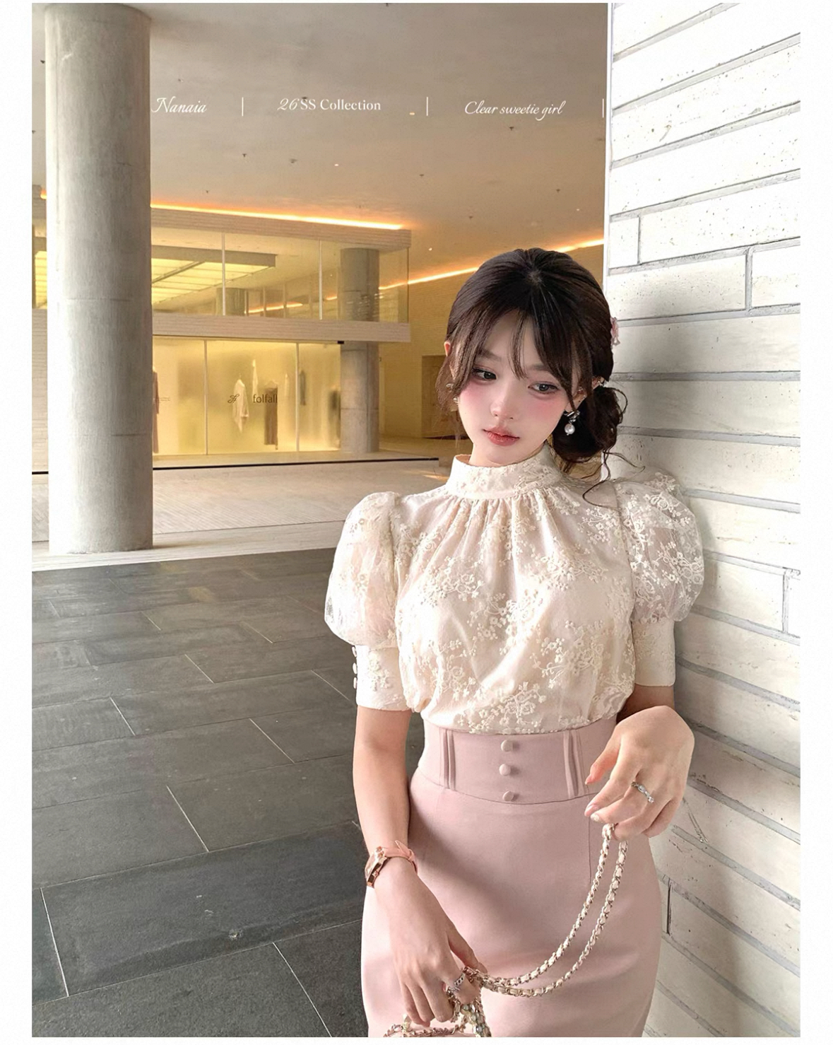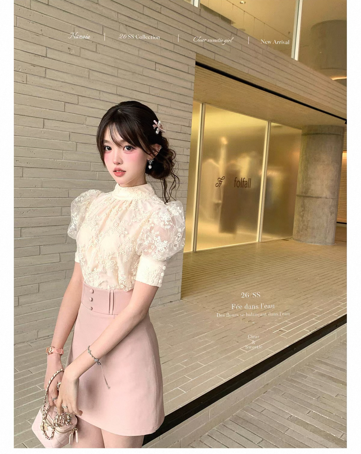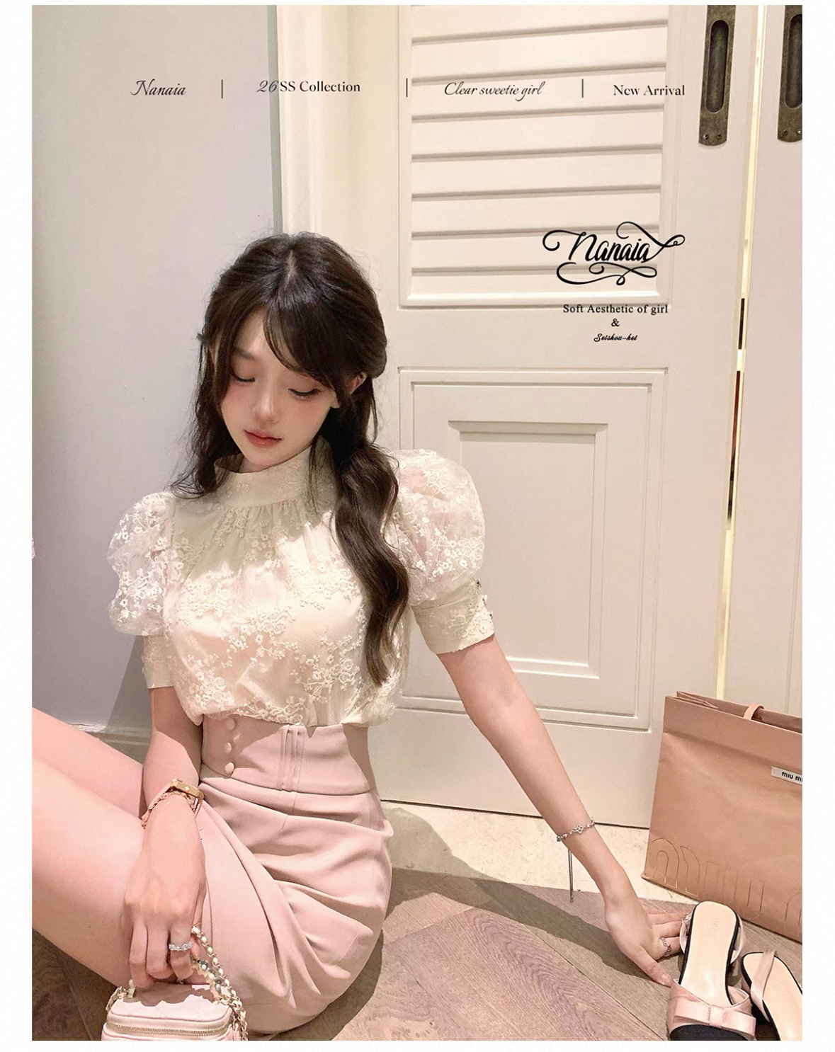 달콤한 수선화 하트 비트 데이트 주간 프랑스식 레이스 거품 소매 맨위 허리 수축 반신 스커트 명문 여성 세트 여름 긴 바지