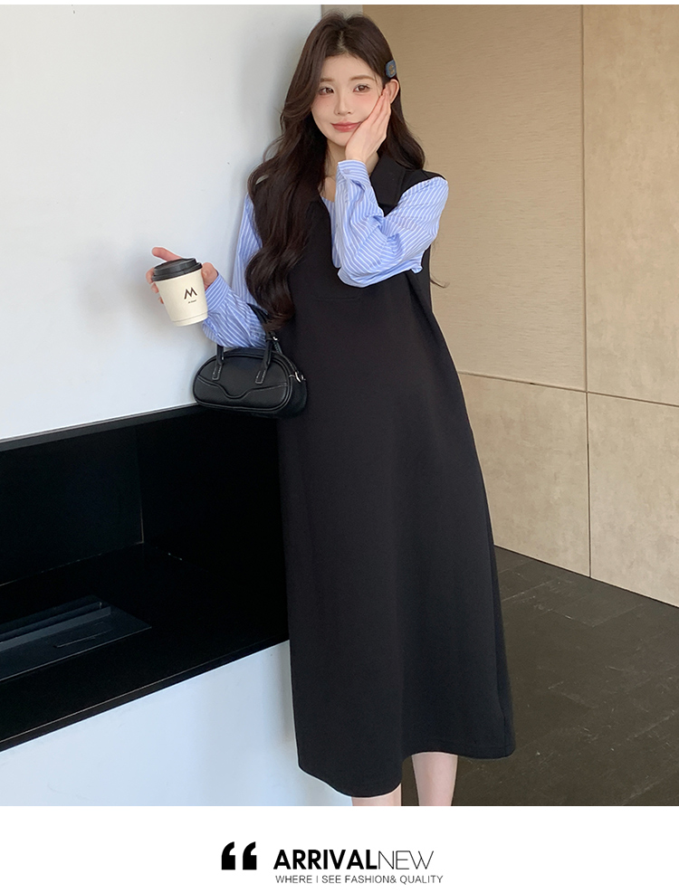 2026 여름 새로운 스트라이프 패치워크 색상 니트 드레스 임신 엄마 고급 센스 슬림해 보이는 다용도 롱 스커트