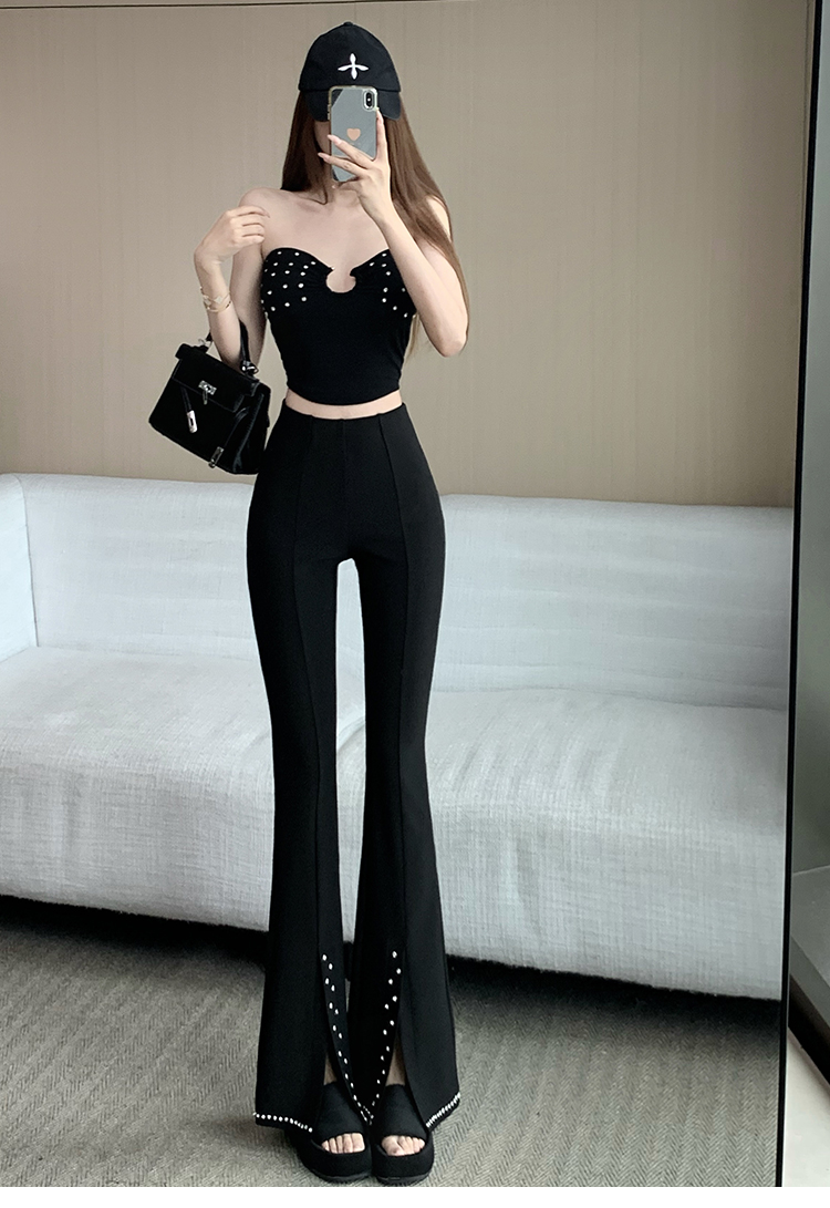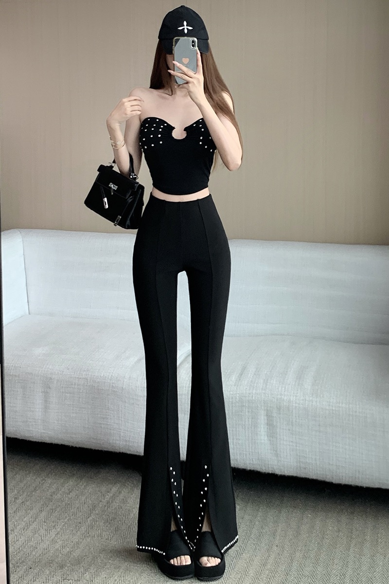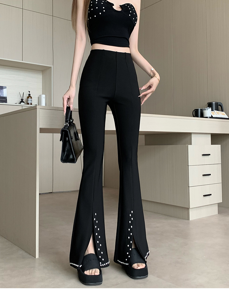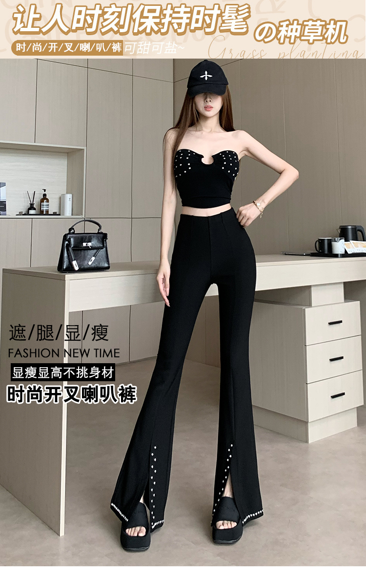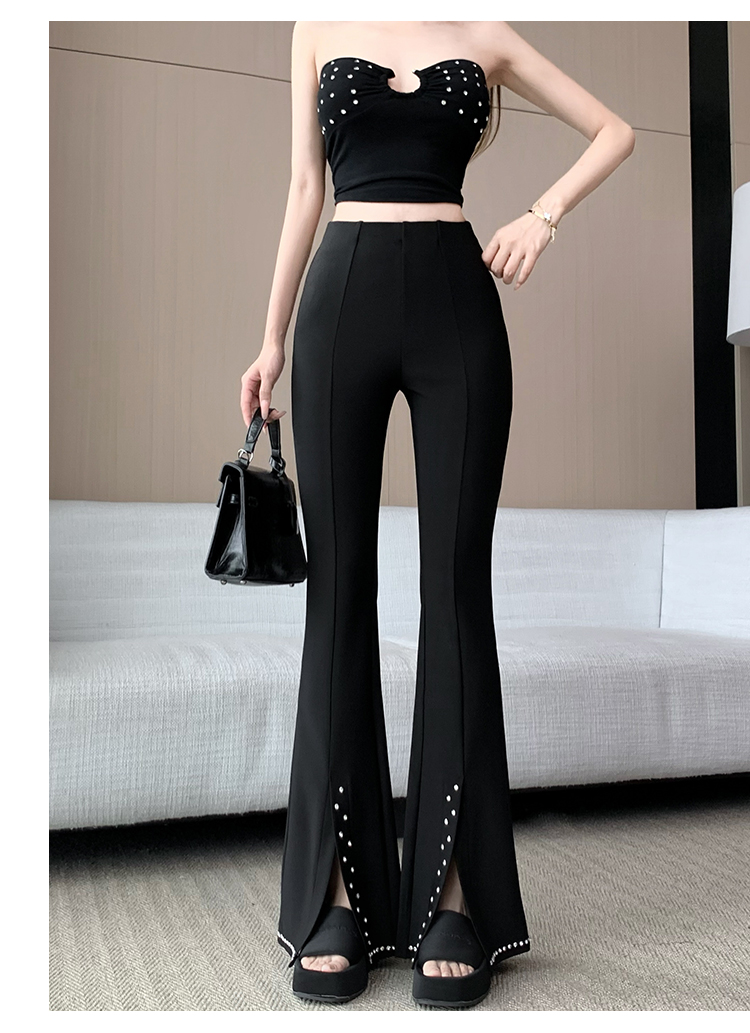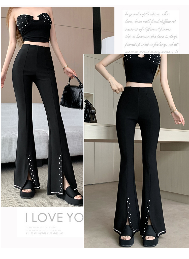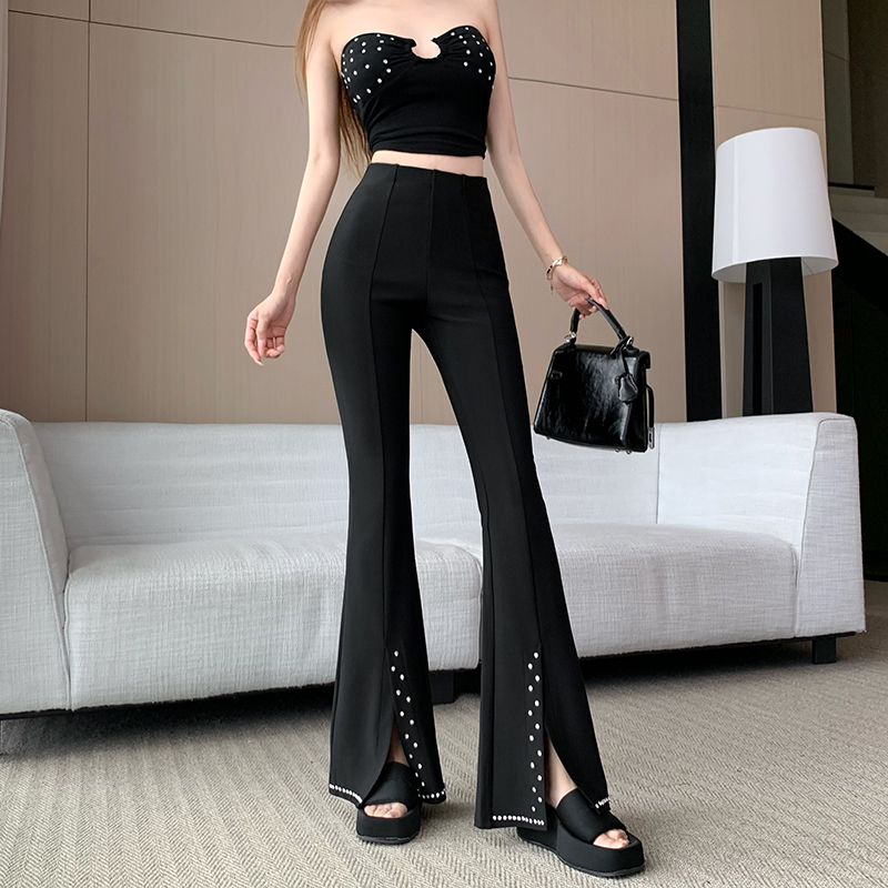 검정색 핫픽스 작은 대중 디자인 센스 리본 플레어 바지 여름 새로운 얇은 스타일 하이웨이스트 슬림해 보이는 도루 가을 센스 긴 바지
