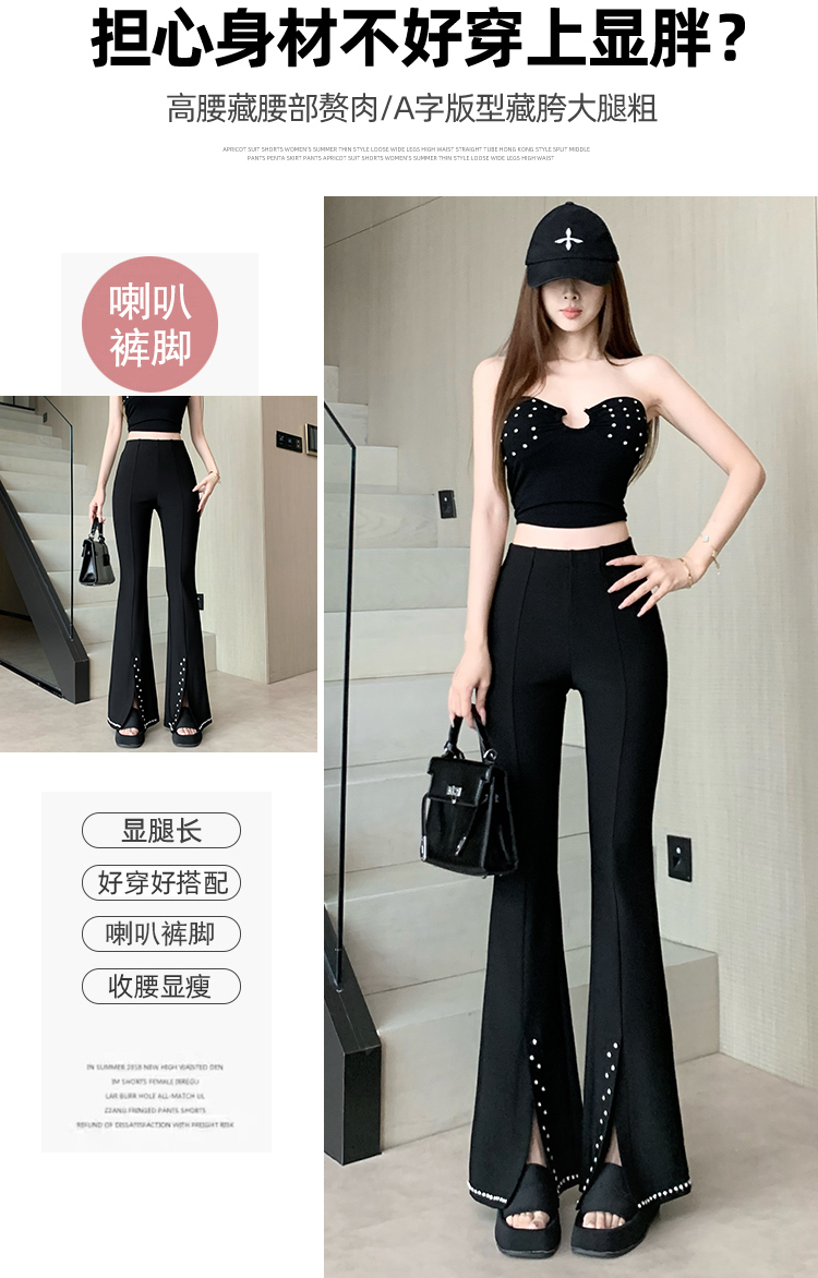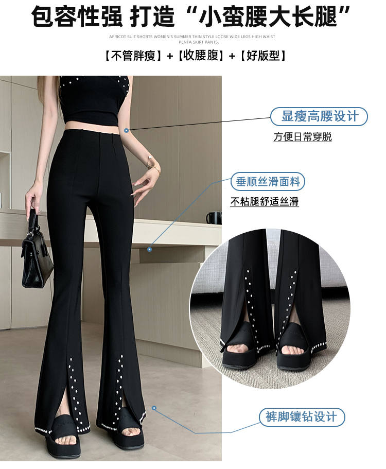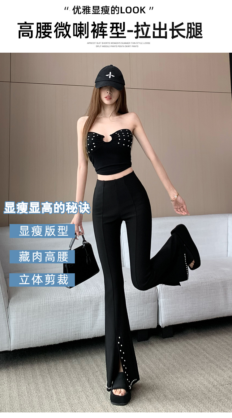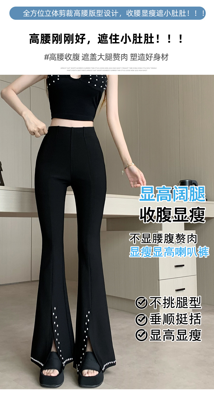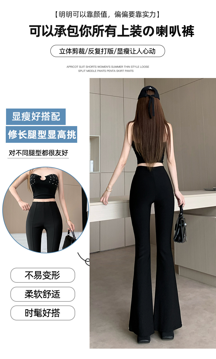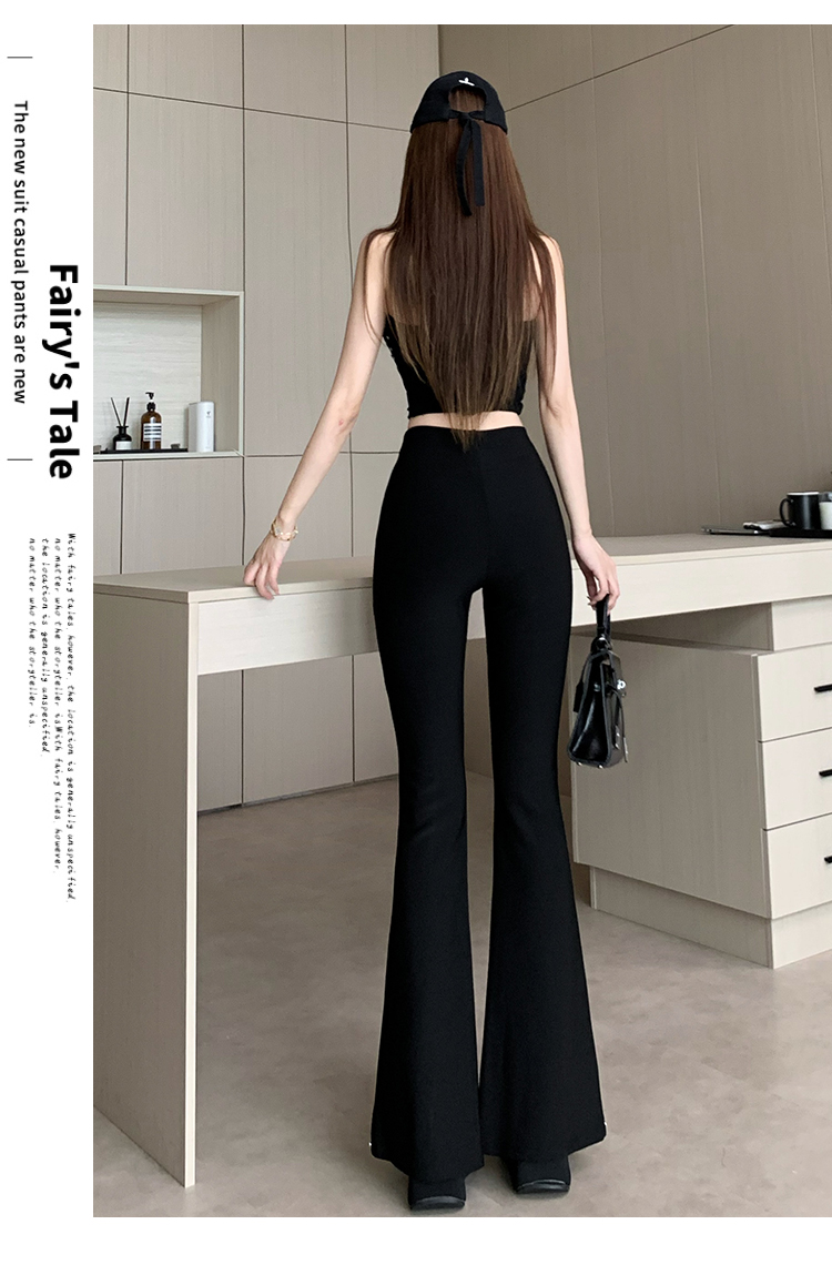 검정색 부츠컷 정장 바지 여성 봄 여름 얇은 스타일 하이웨이스트 슬림해 보이는 디스플레이 높음 몸매 가꾸기 패션 다용도 캐주얼 나팔 바지