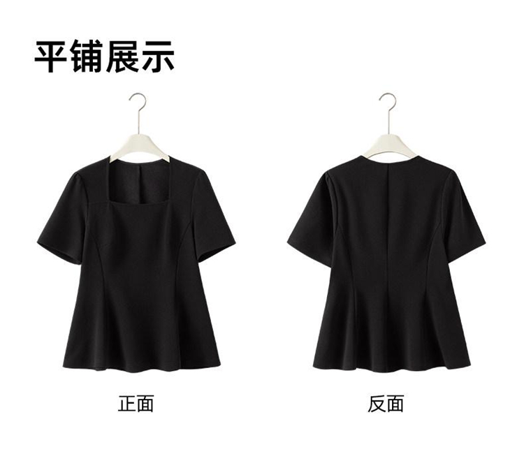 광장 칼라 긍정적 인 어깨 반팔 티셔츠 여름 허리 수축 슬림해 보이는 맨위