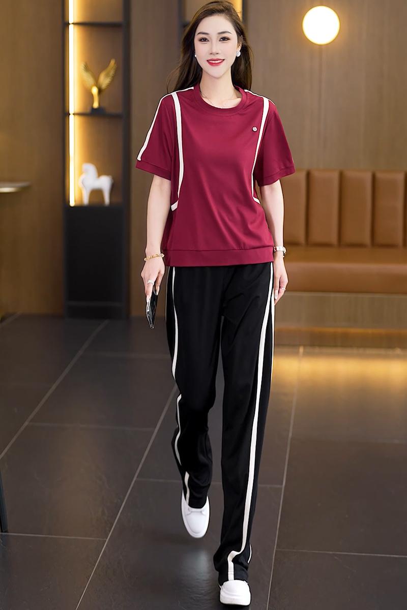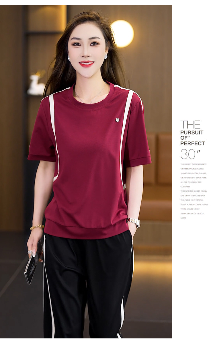 여름 드레스 스포츠 슈트 반팔 투피스 세트 빅 사이즈 여성 의류 바지 여름 얇은 스타일