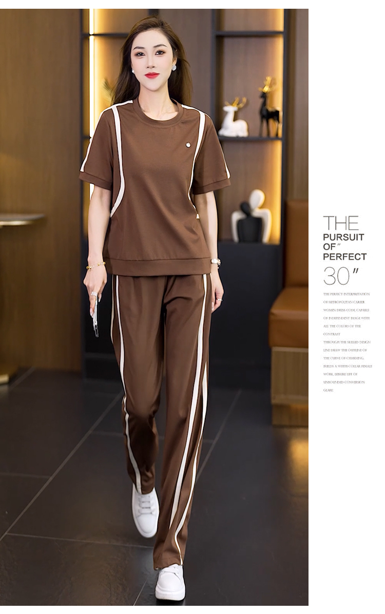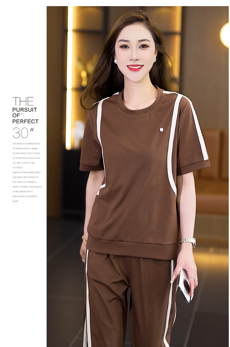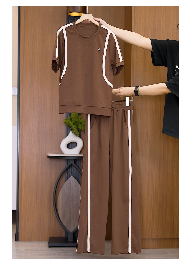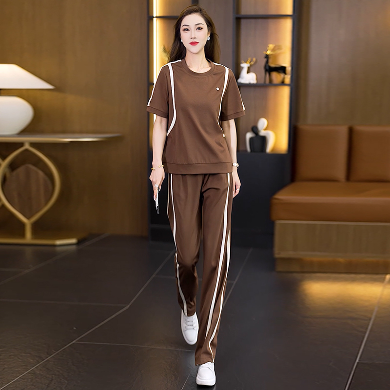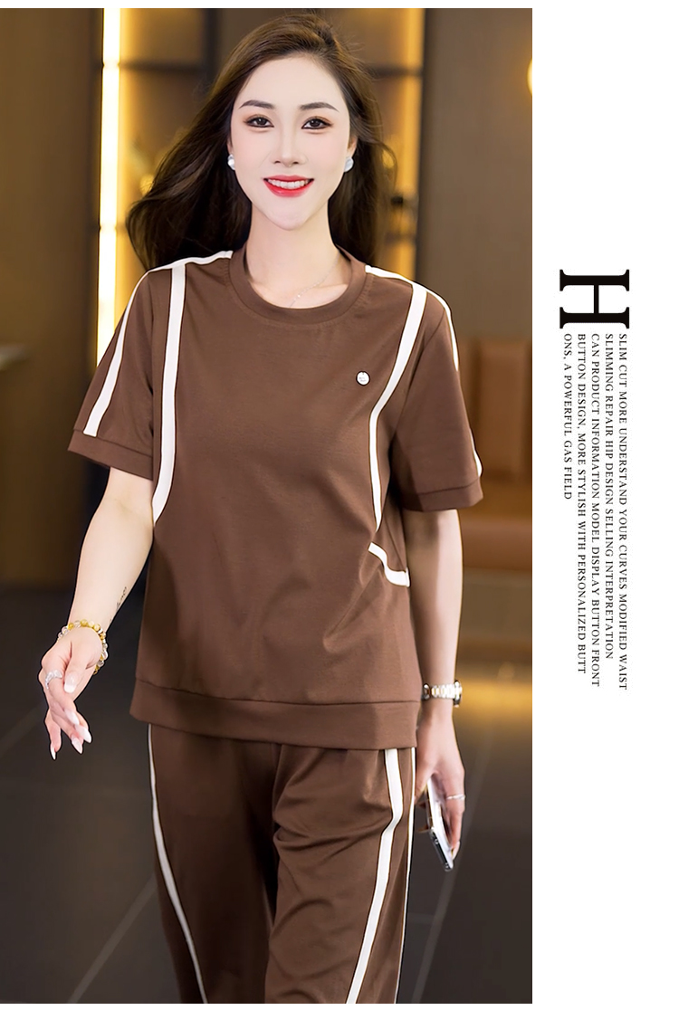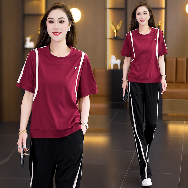 여름 드레스 스포츠 슈트 반팔 투피스 세트 빅 사이즈 여성 의류 바지 여름 얇은 스타일