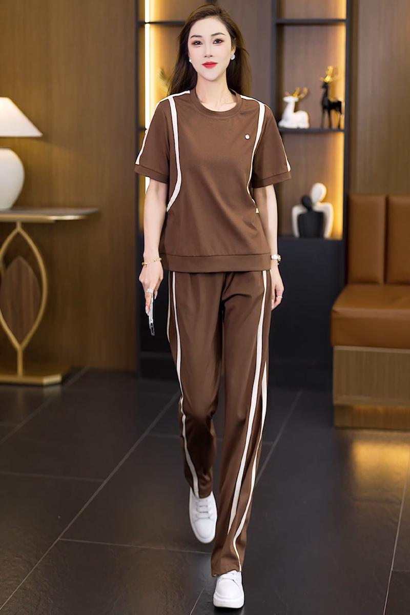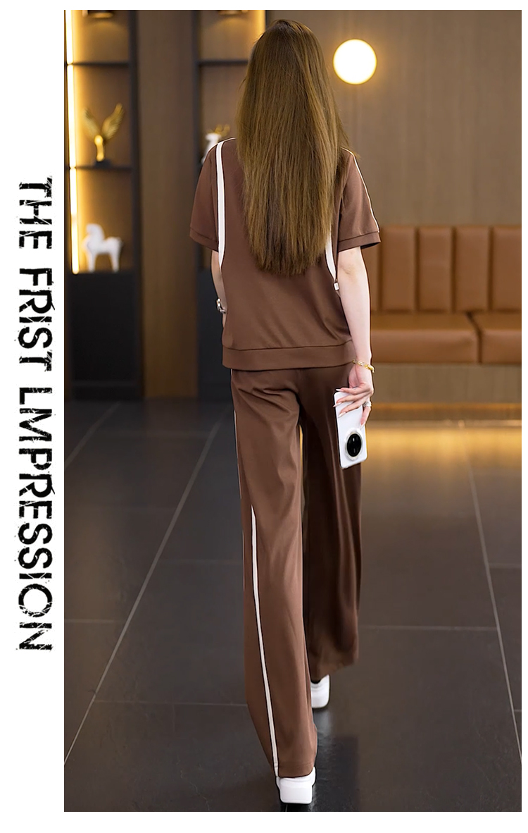 2026 운동 캐주얼 세트 여성 봄 여름 새로운 POLO 칼라 맨위 슬림해 보이는 반팔 긴 바지 빅 사이즈 투피스 세트