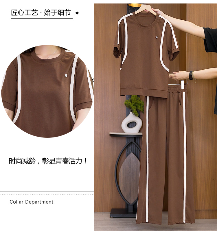 여름 새로운 어머니 드레스 중년 여성 투피스 세트 패션 다용도 반팔 와이드 레그 팬츠 슬림해 보이는 세트