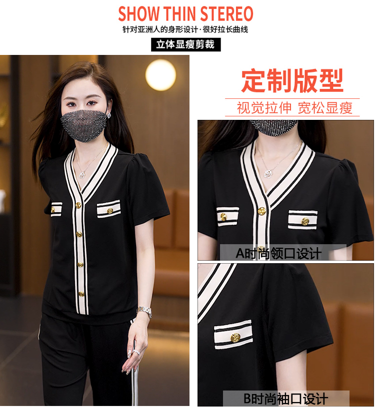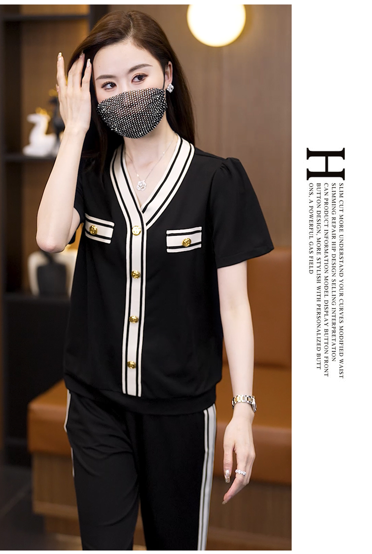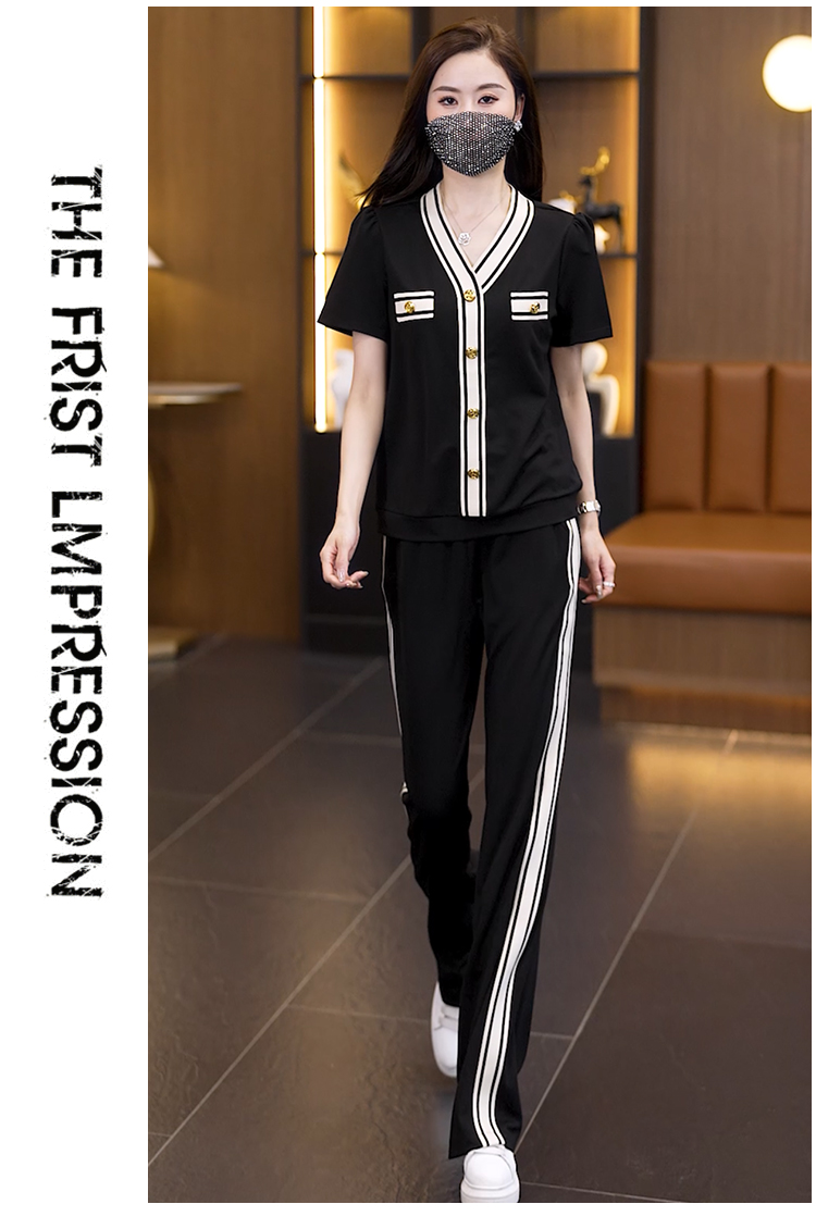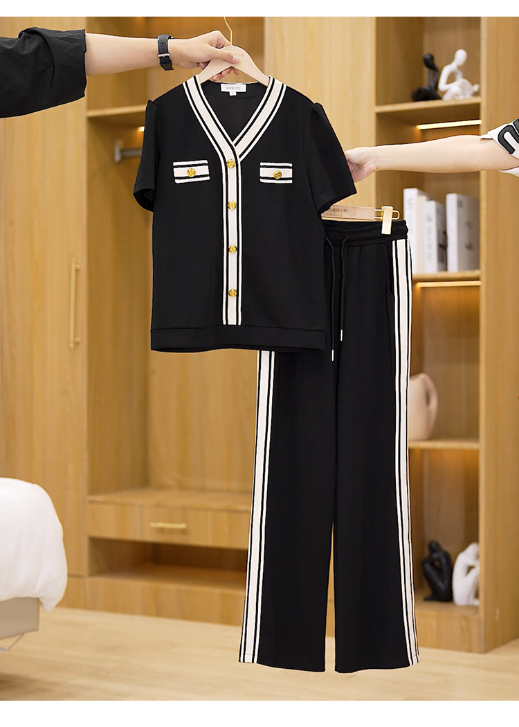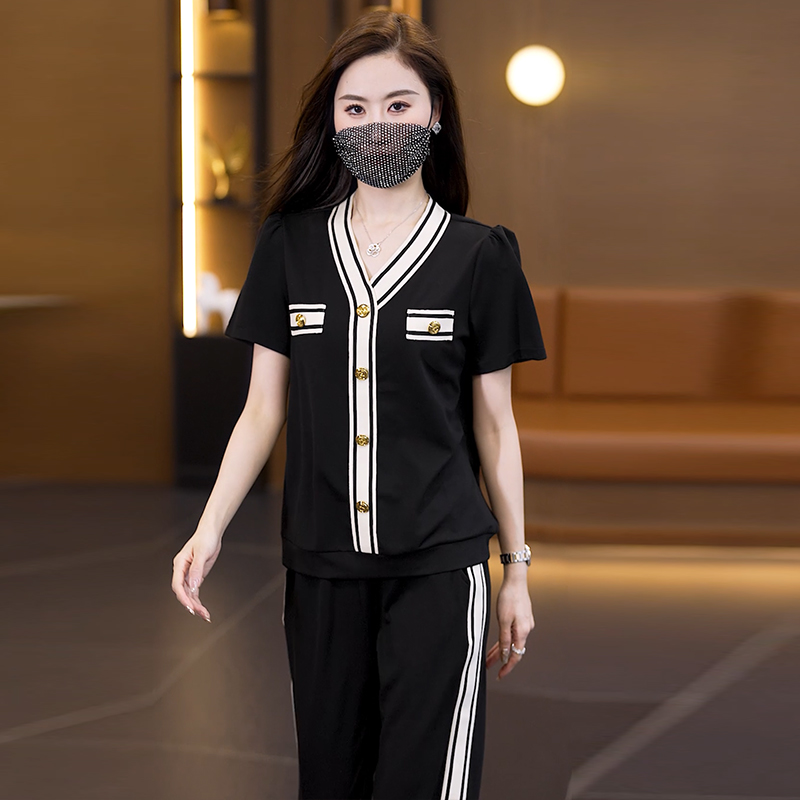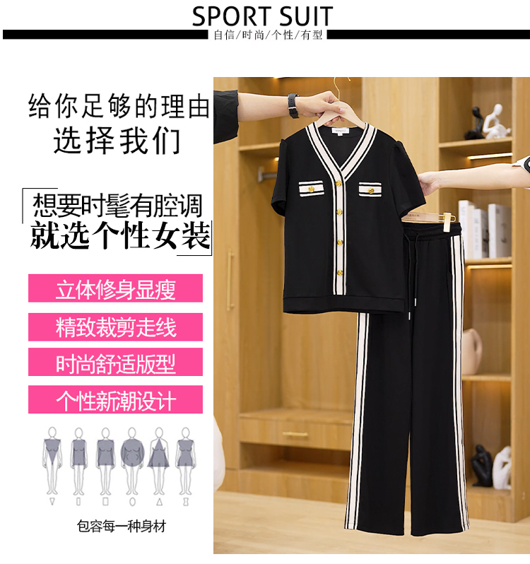 여름 드레스 스포츠 슈트 반팔 투피스 세트 빅 사이즈 여성 의류 바지 여름 얇은 스타일