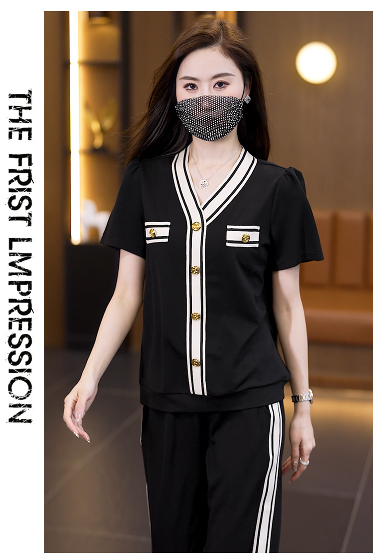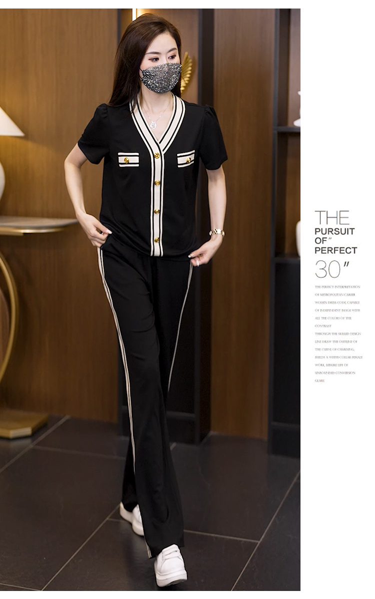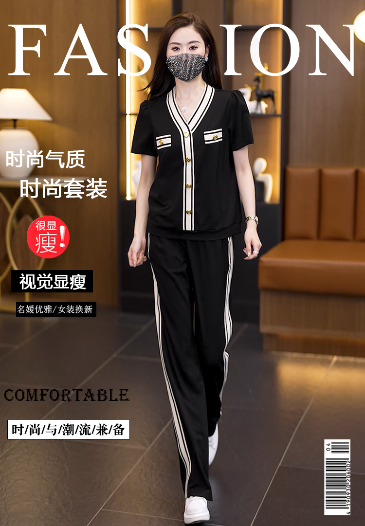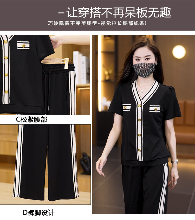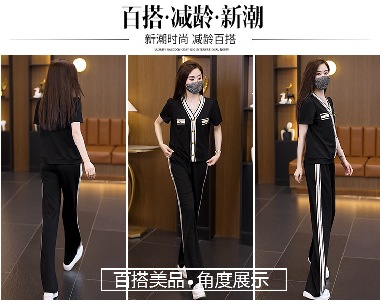 여름 새로운 어머니 드레스 중년 여성 투피스 세트 패션 다용도 반팔 와이드 레그 팬츠 슬림해 보이는 세트