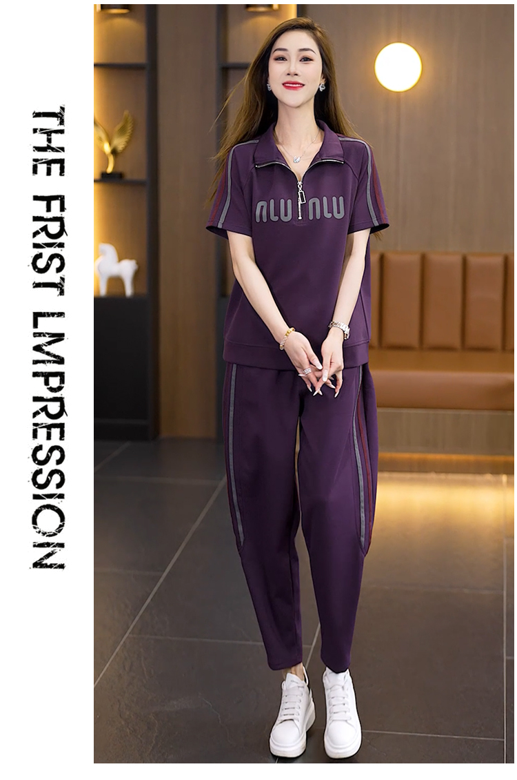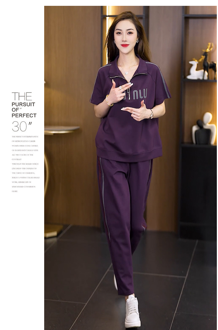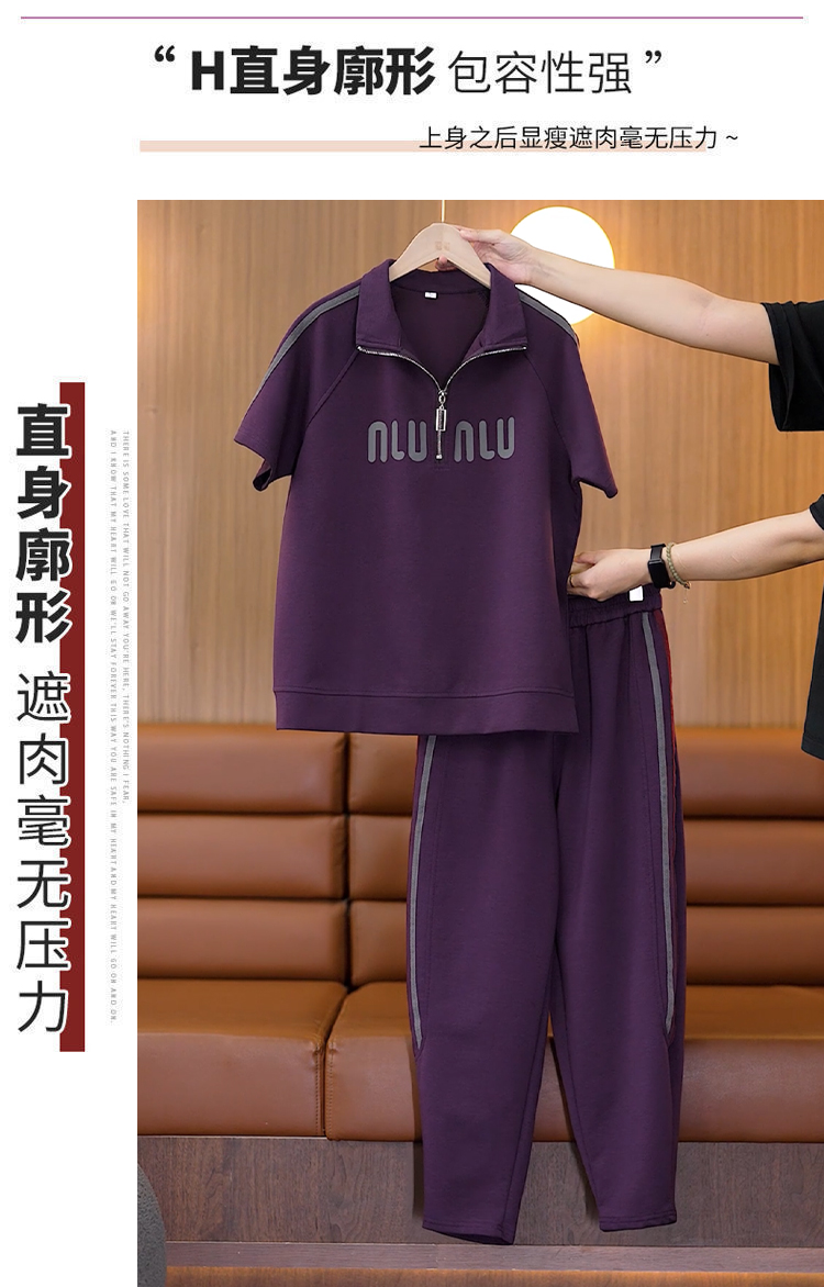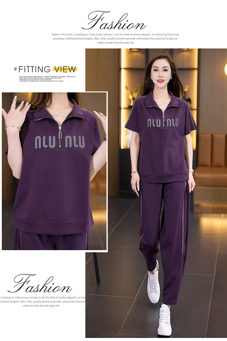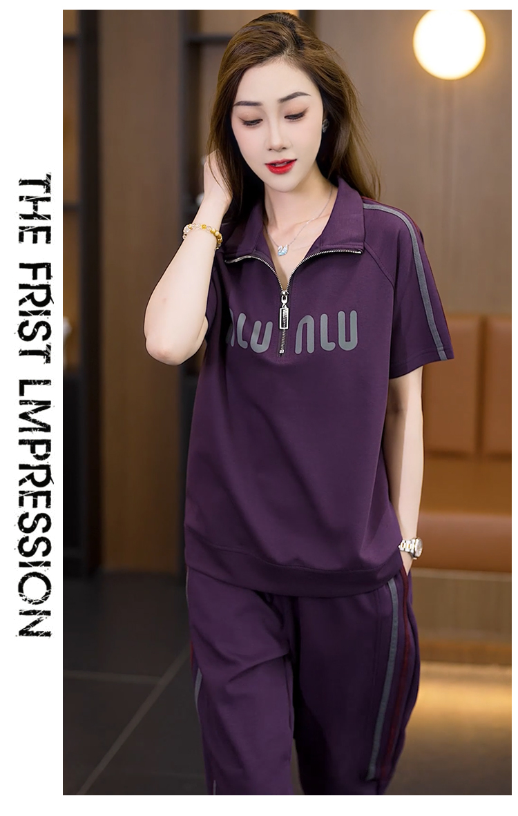여름 드레스 스포츠 슈트 반팔 투피스 세트 빅 사이즈 여성 의류 바지 여름 얇은 스타일