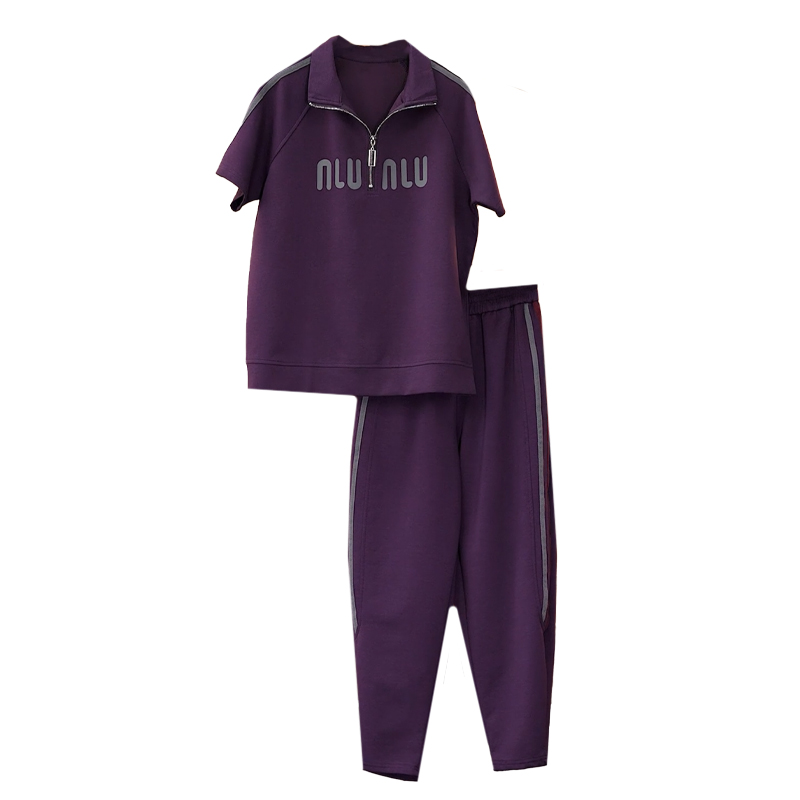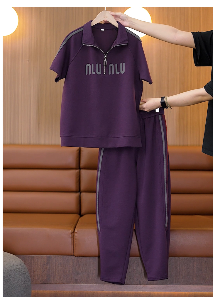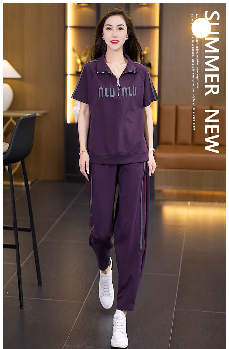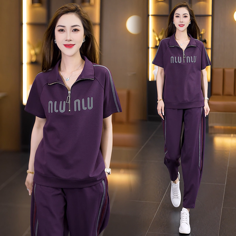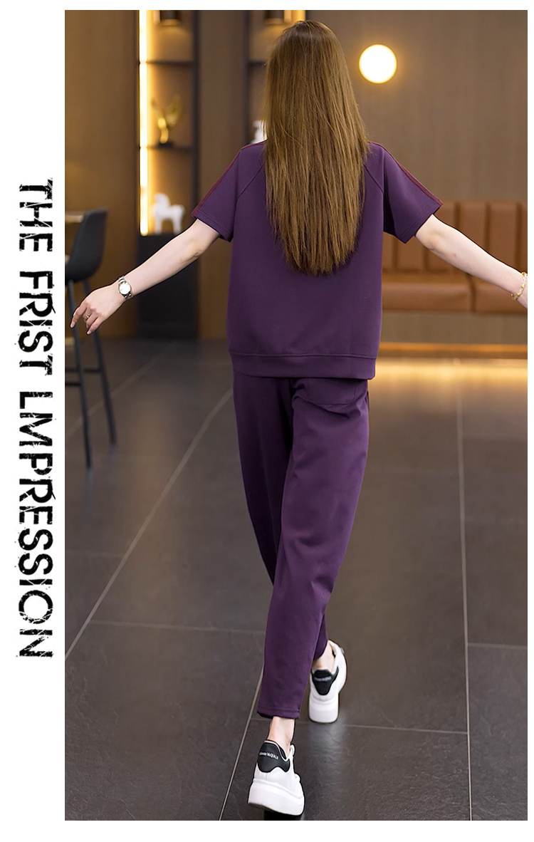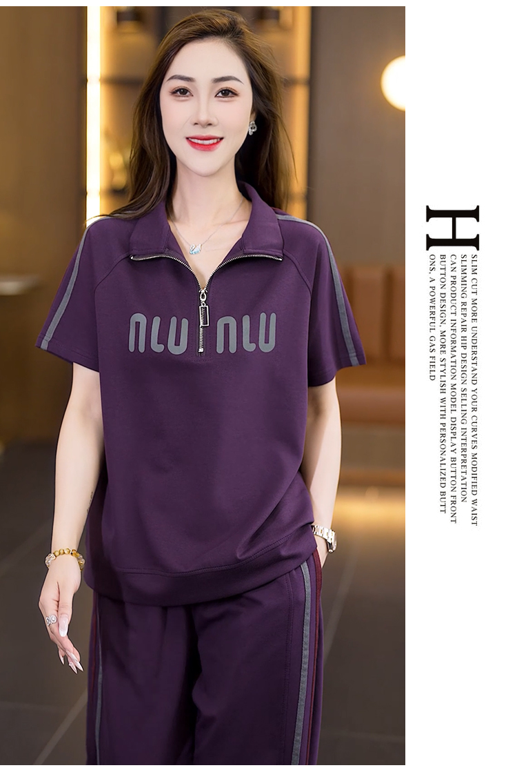 여름 드레스 스포츠 슈트 반팔 투피스 세트 빅 사이즈 여성 의류 바지 여름 얇은 스타일