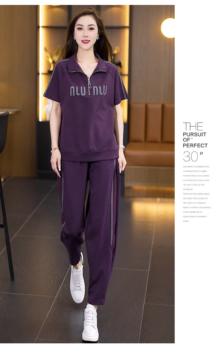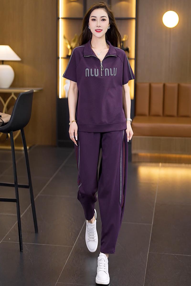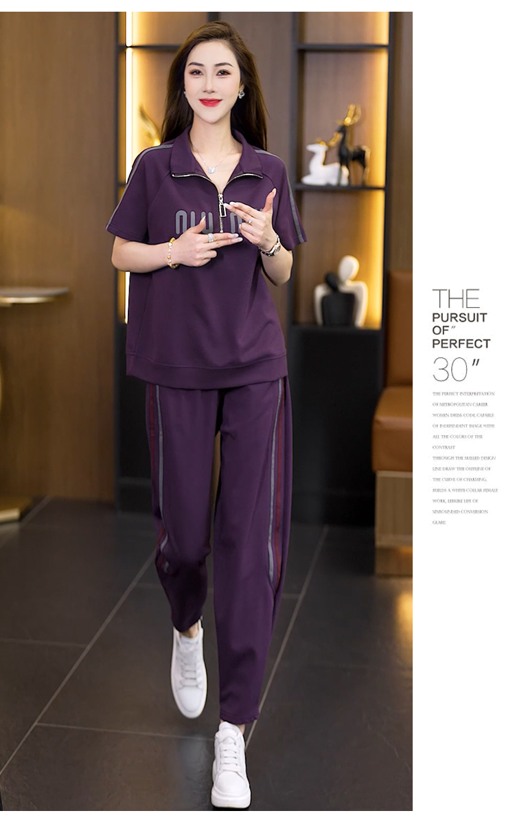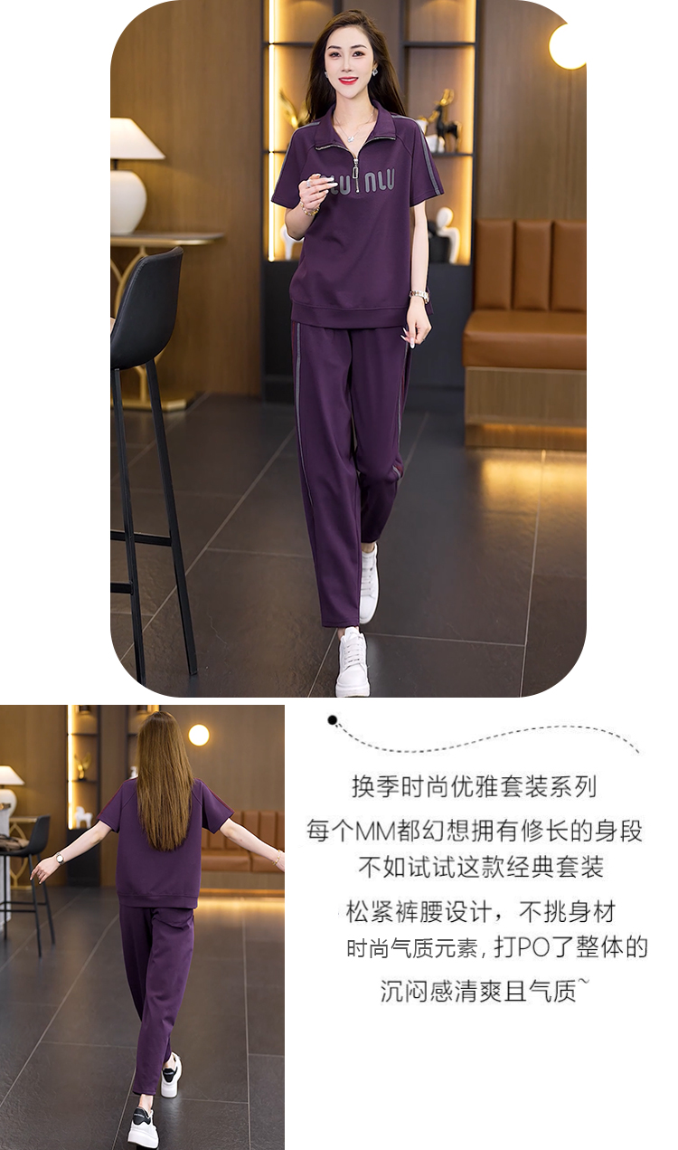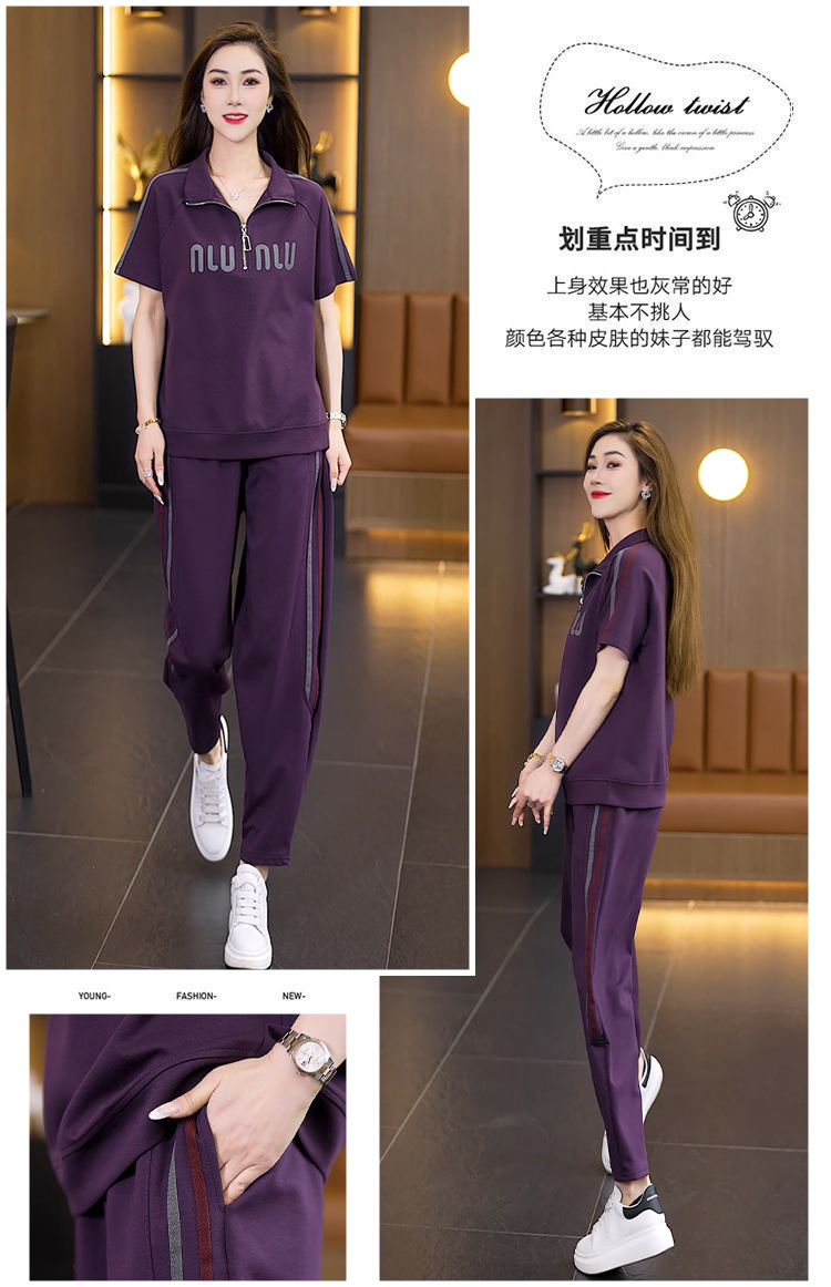여름 드레스 스포츠 슈트 반팔 투피스 세트 빅 사이즈 여성 의류 바지 여름 얇은 스타일