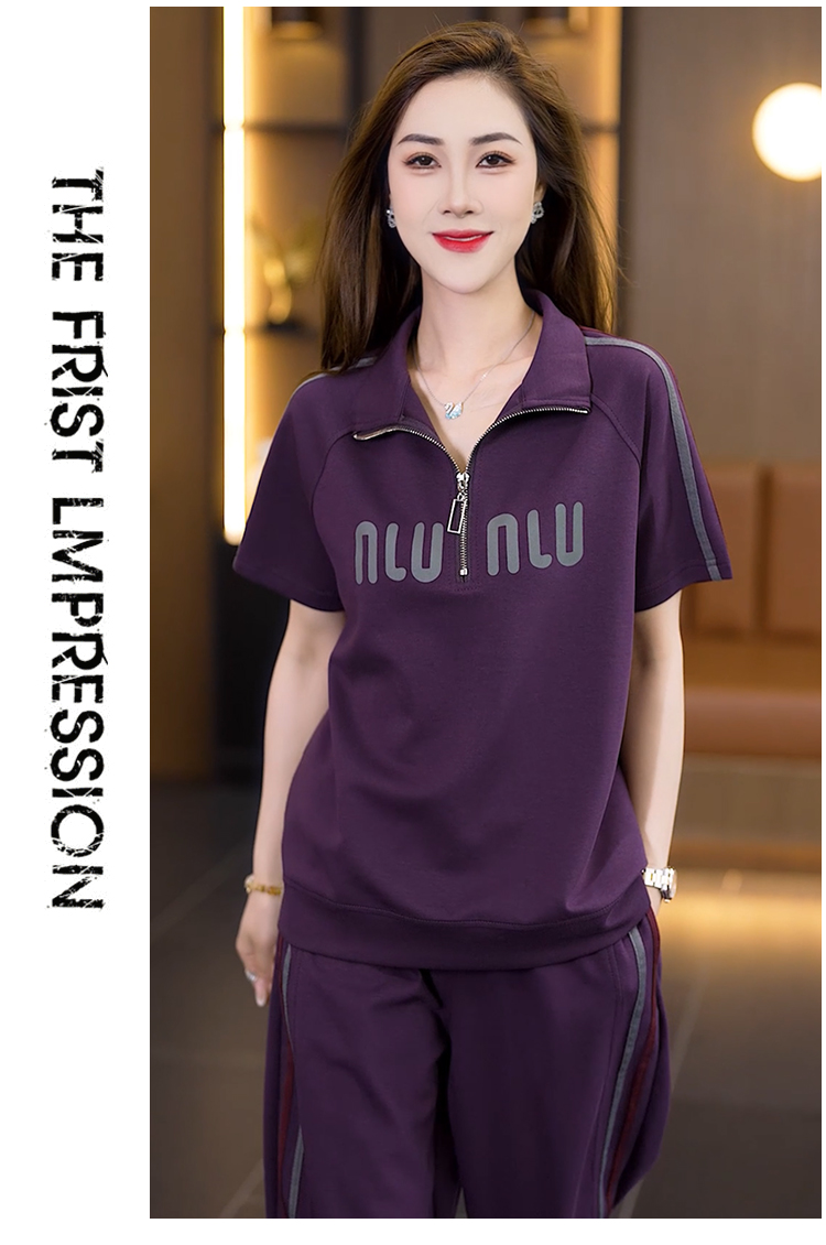 2026 운동 캐주얼 세트 여성 봄 여름 새로운 POLO 칼라 맨위 슬림해 보이는 반팔 긴 바지 빅 사이즈 투피스 세트