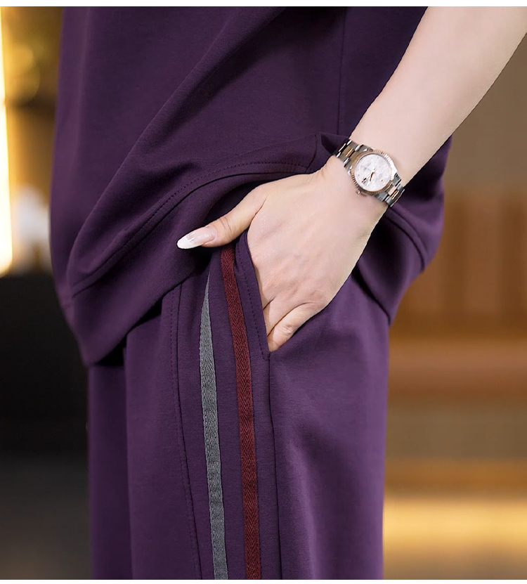 캐주얼 스포츠 슈트 여성 여름 새로운 루즈핏 슬림해 보이는 해군 칼라 반팔 후드티 넓은 다리 투피스 세트