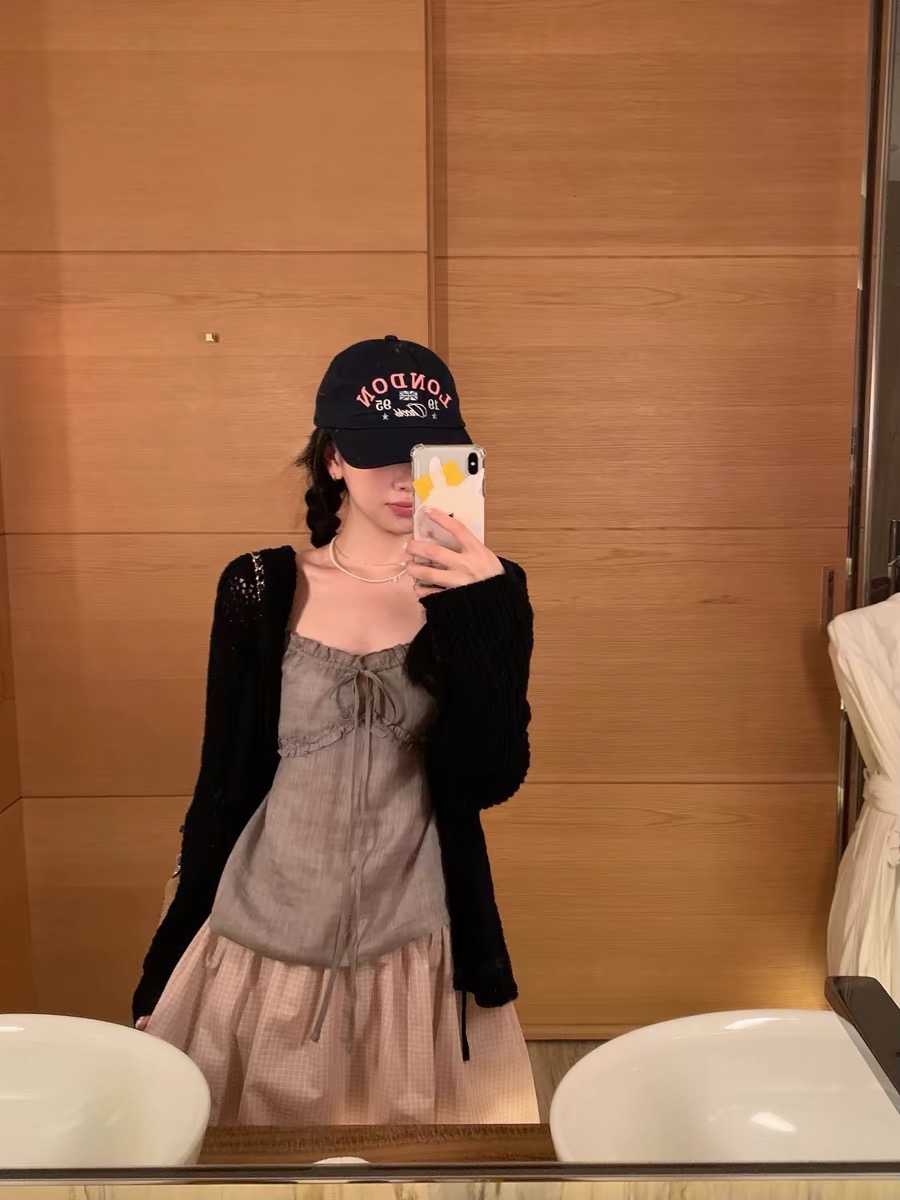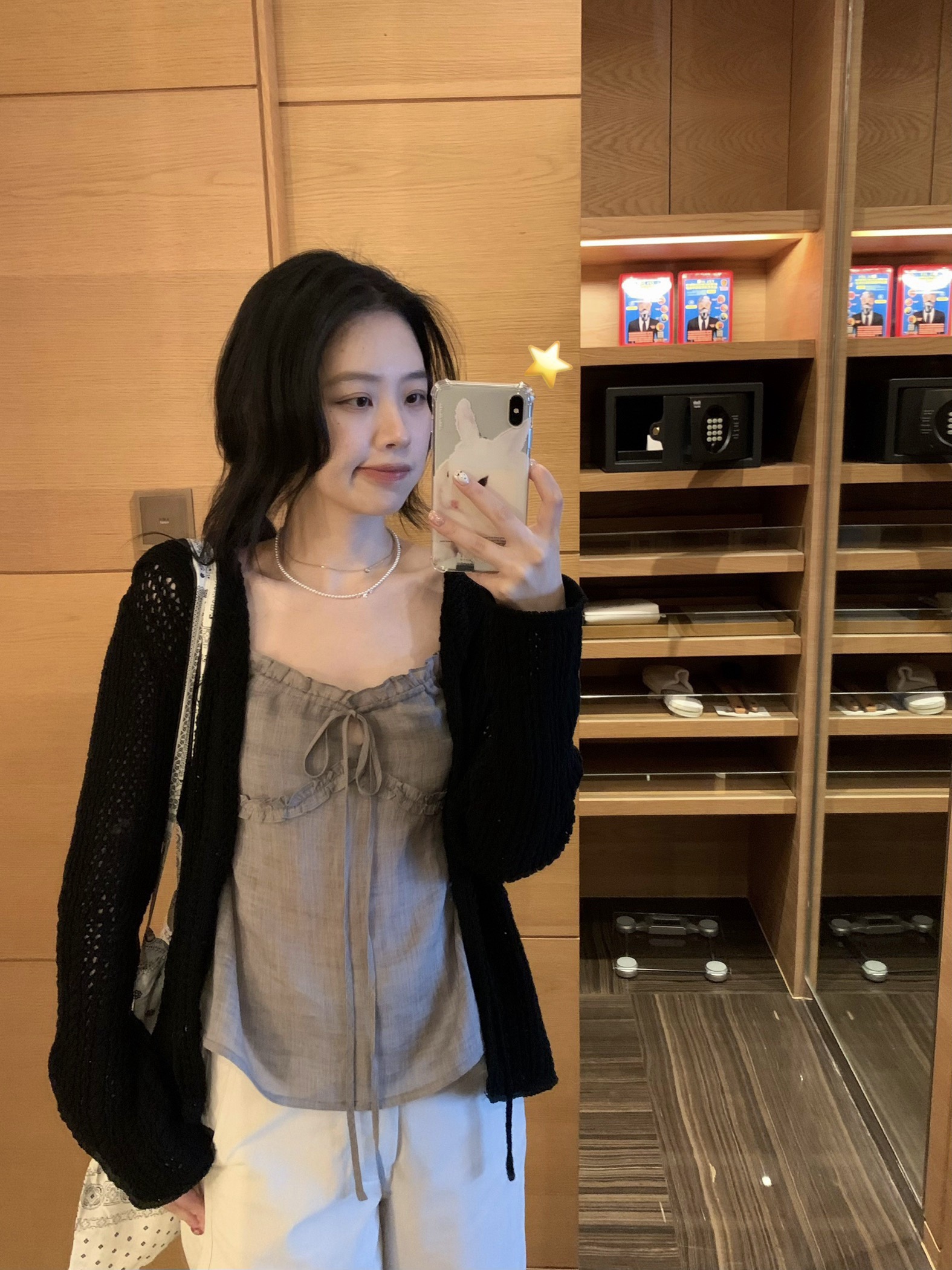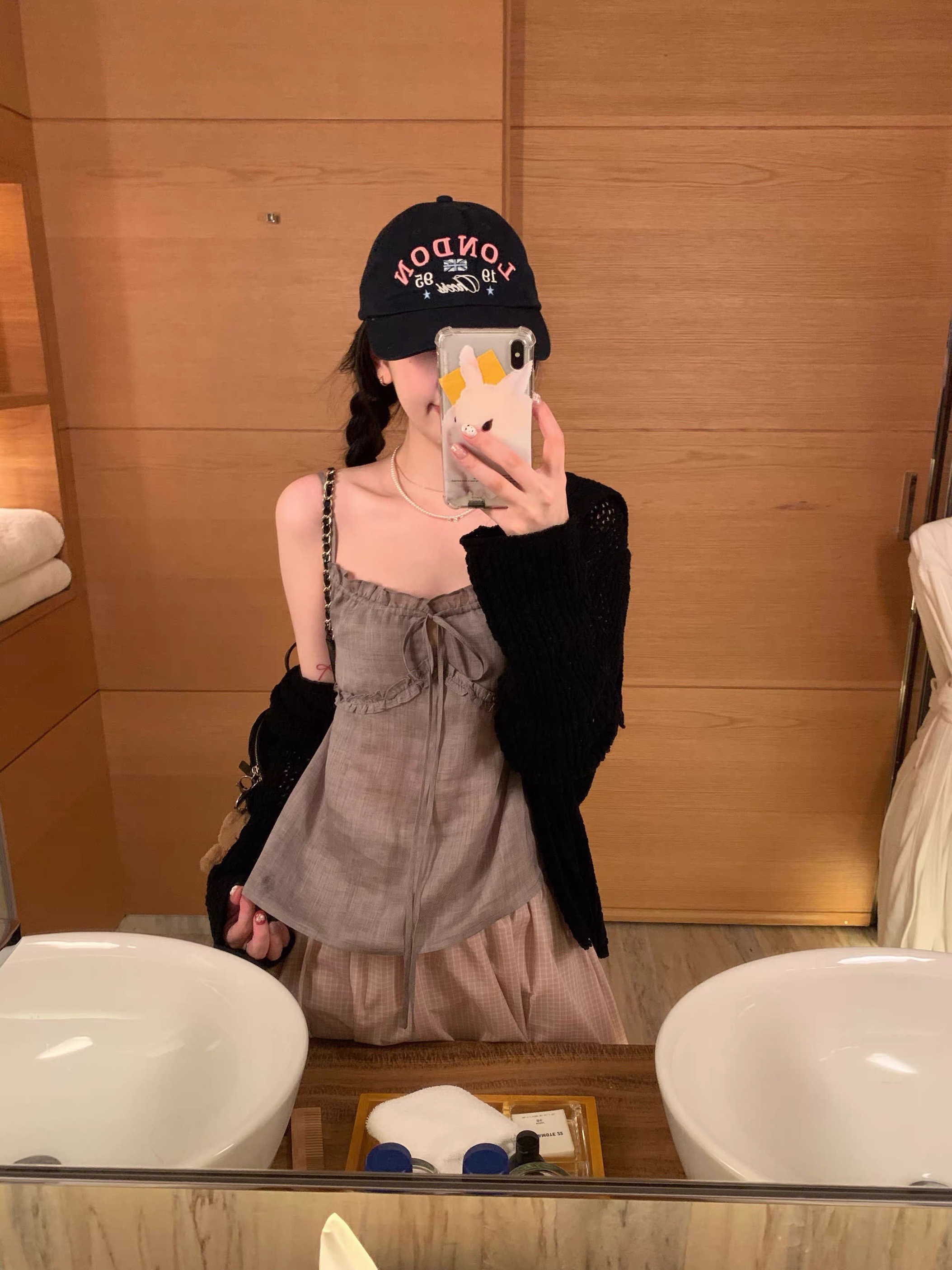 2026 여름 새로운 검정색 캐미솔 프랑스식 홀로우 아웃 자수 인형 셔츠 달콤한 매운맛 바람 슬림해 보이는 맨위
