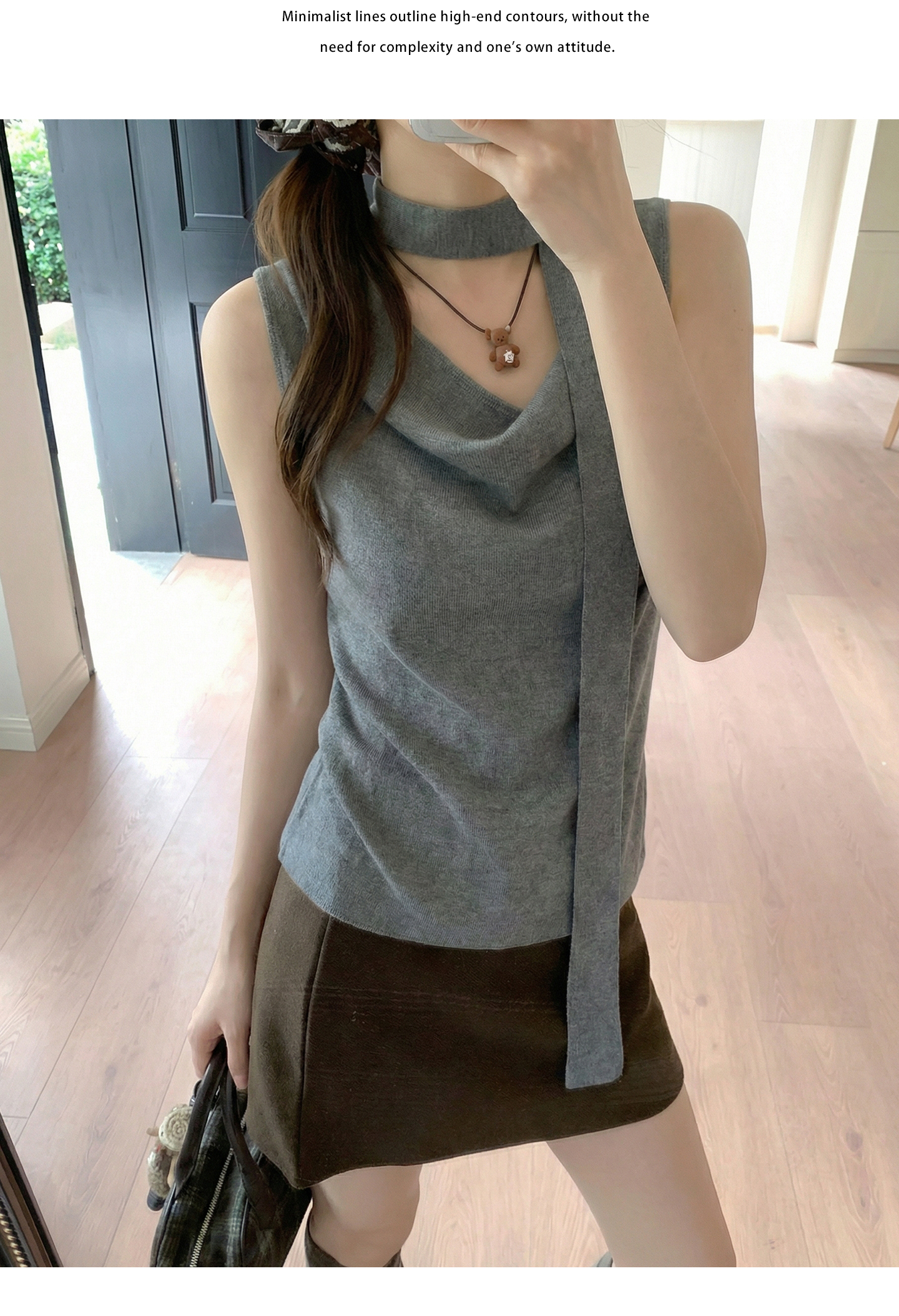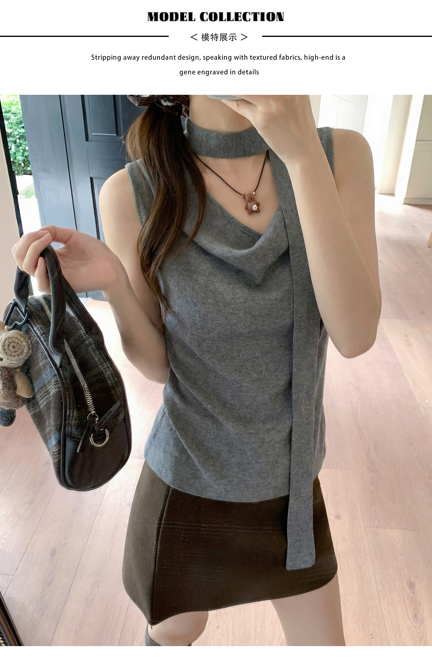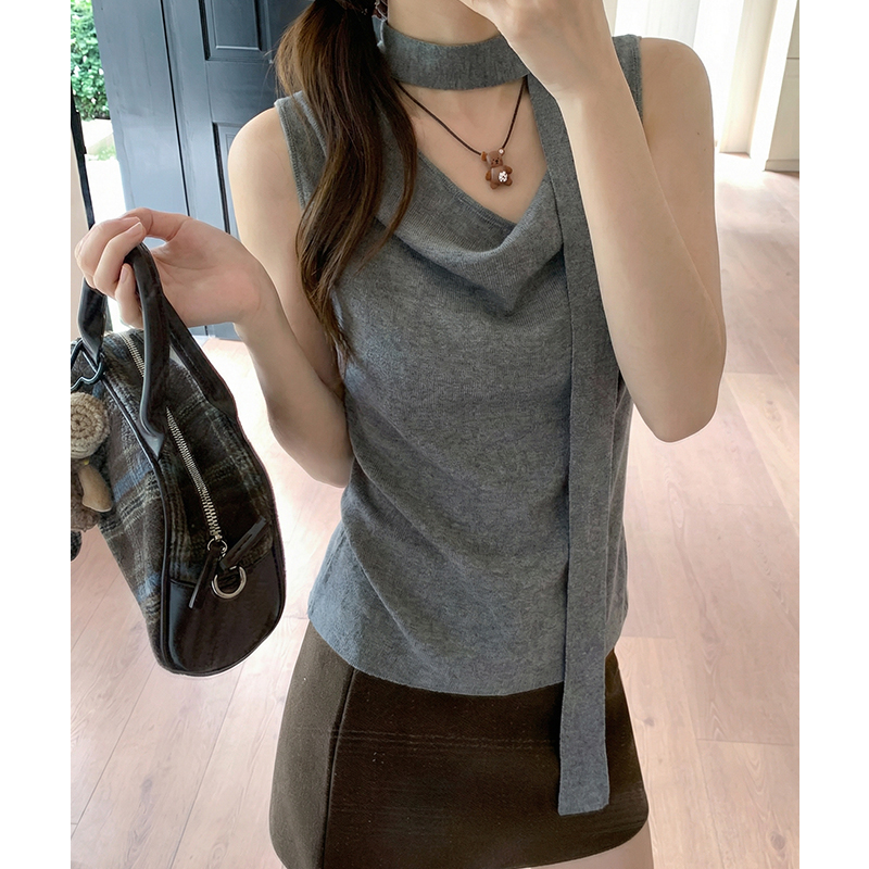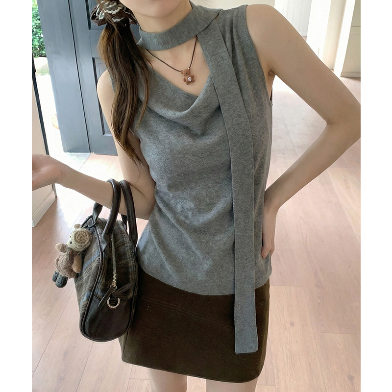 ai 정가 니트 캐미솔 2026 봄 고급 센스 오프숄더 몸매 가꾸기 행침 목 민소매 맨위