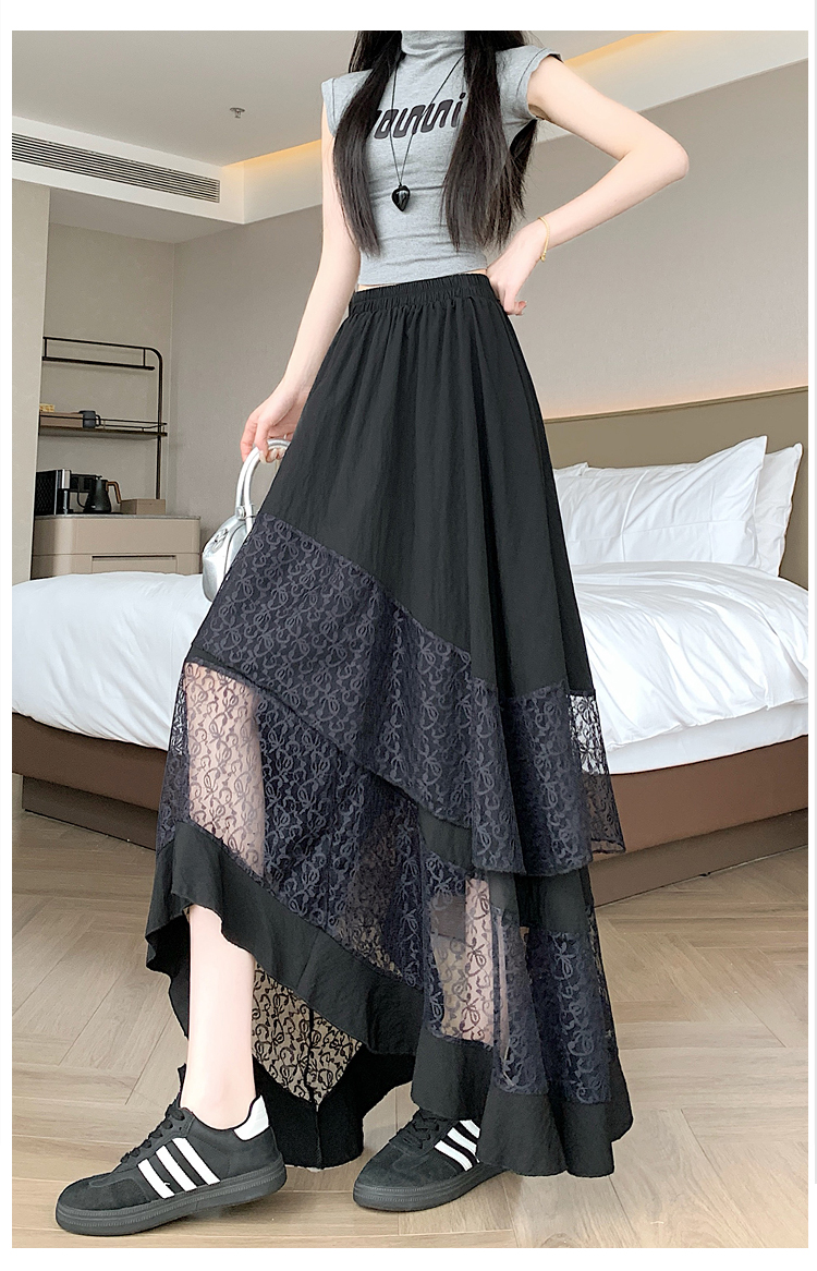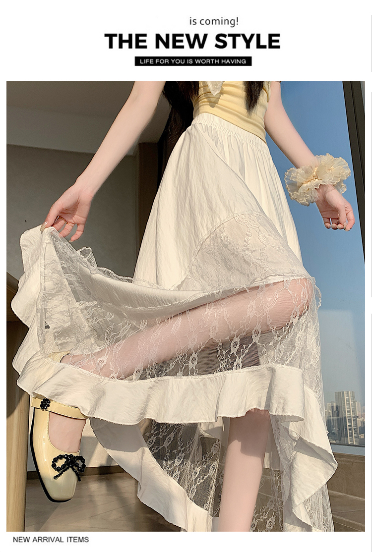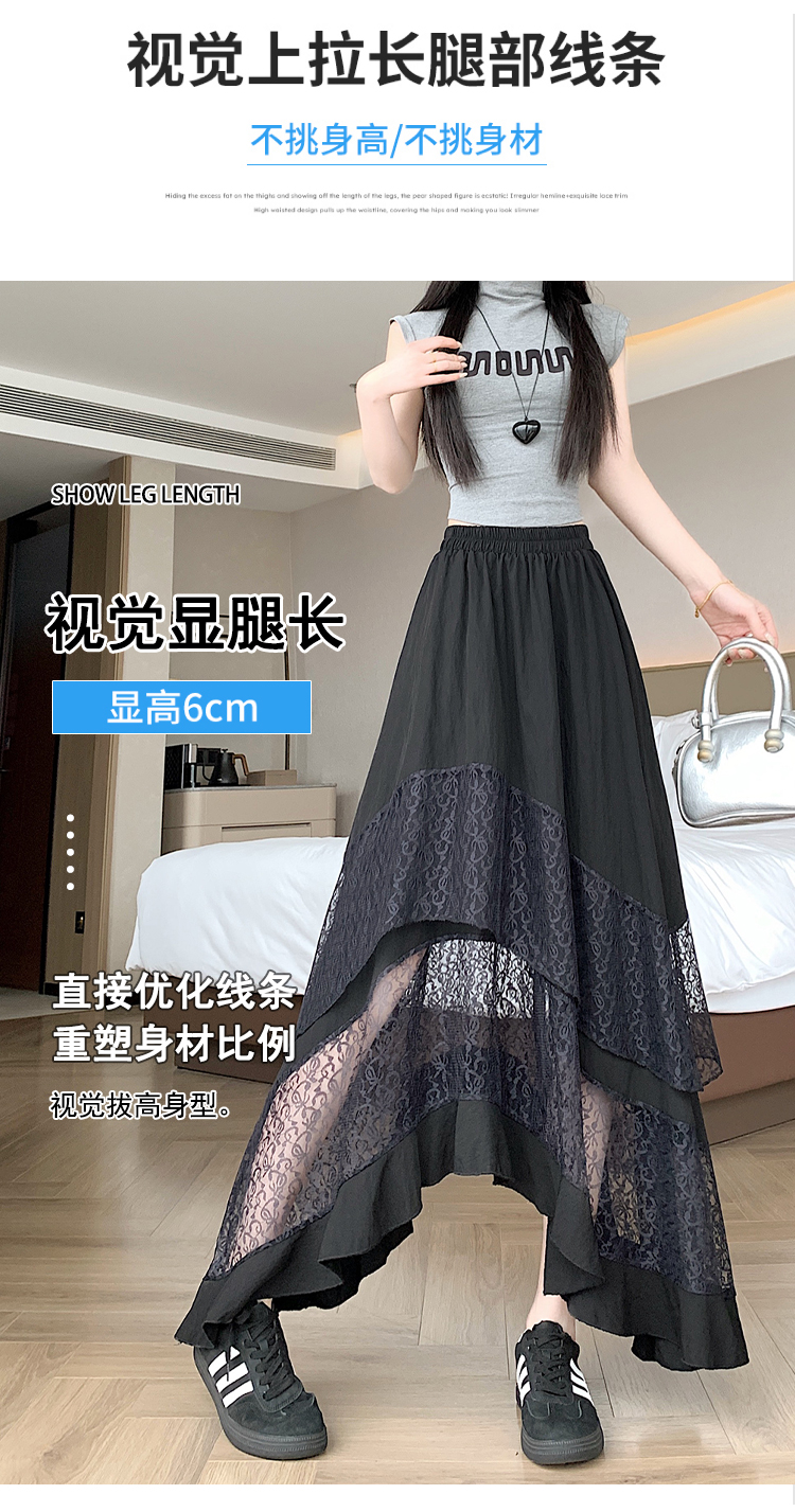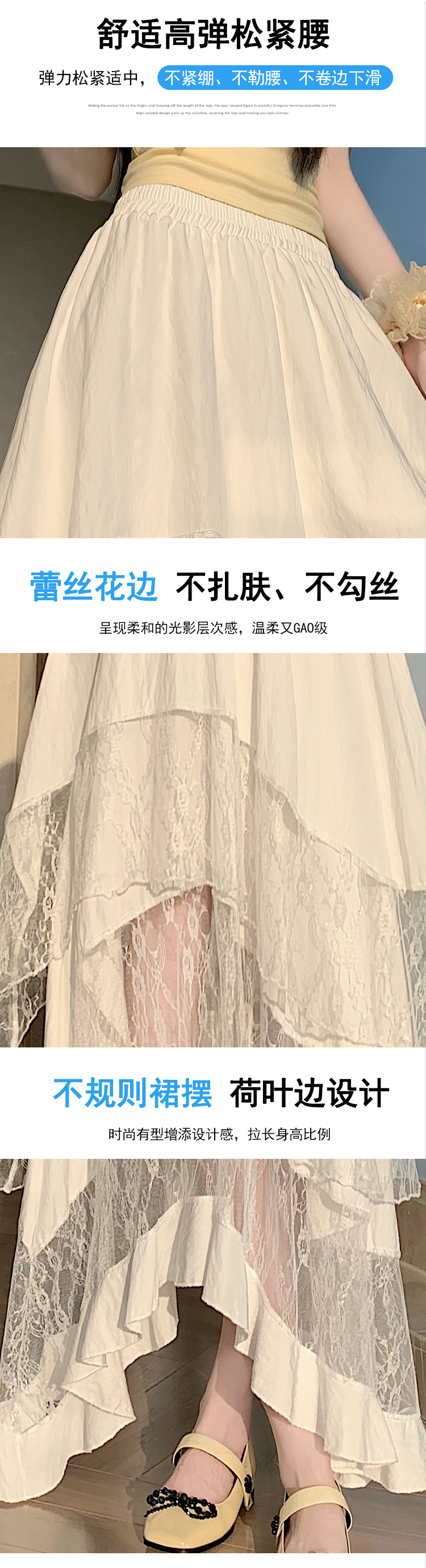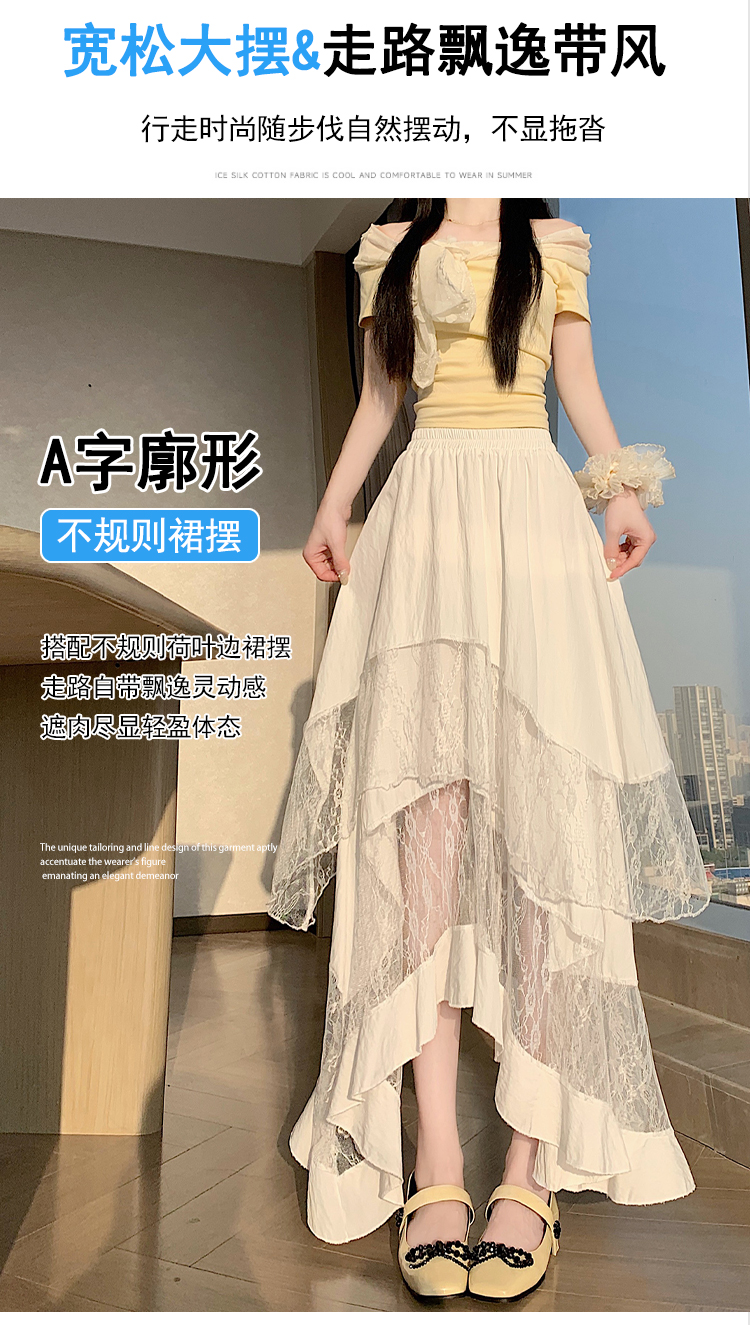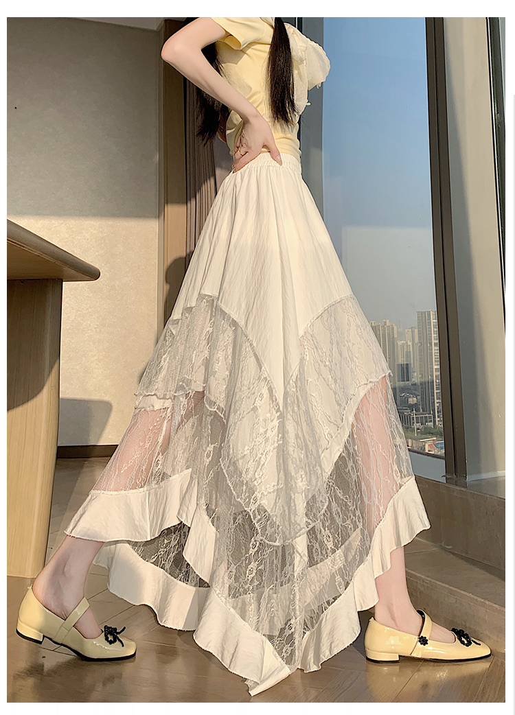 실사 2026 여름 새로운 한국 스타일 하이웨이스트 부드러운 바람 망사 패치워크 레이스 중간 스커트 패션 다용도 A라인 스커트