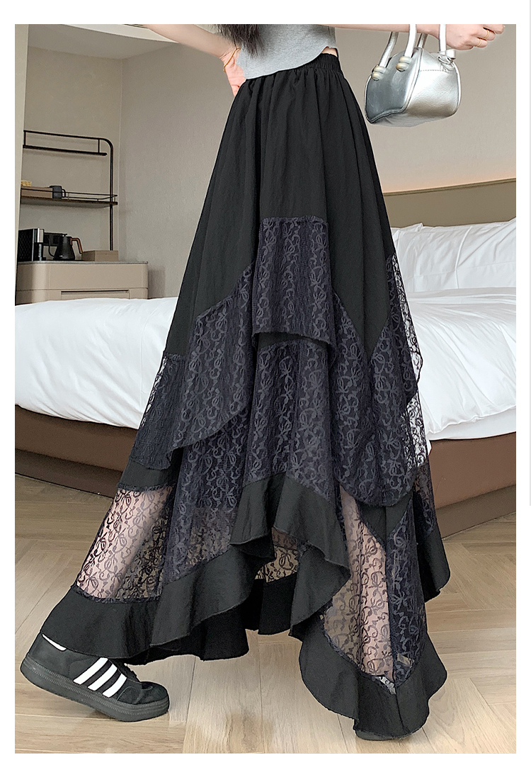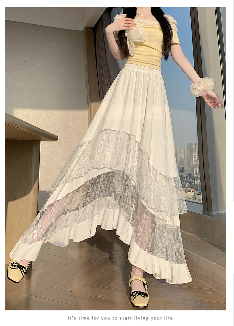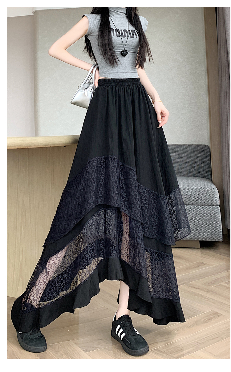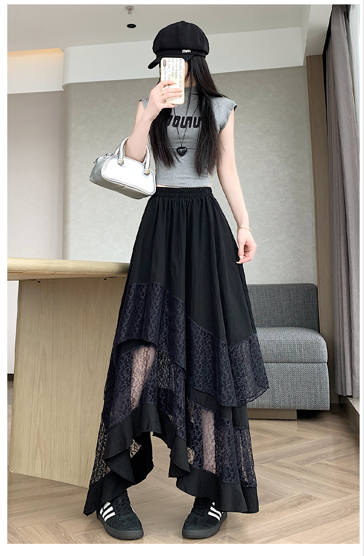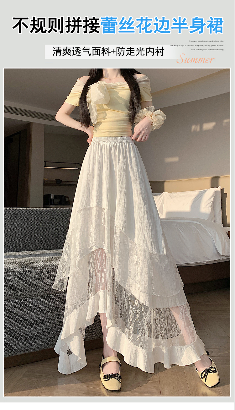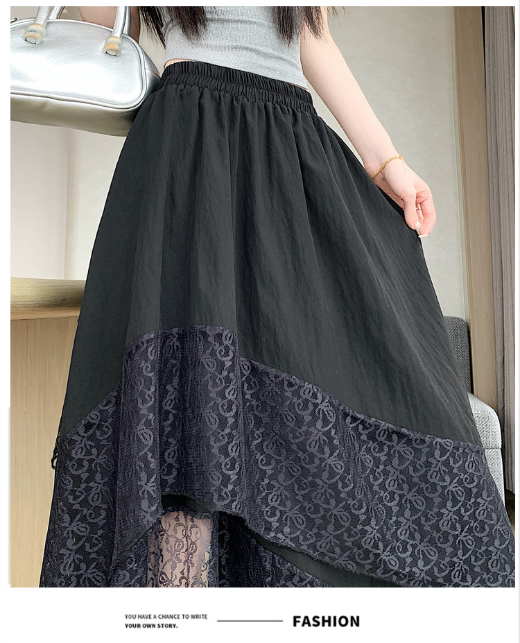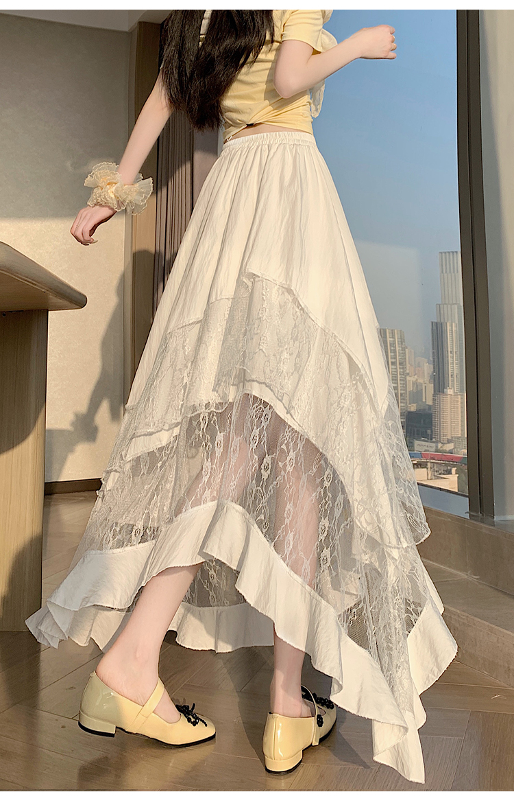 실사 2026 여름 새로운 한국 스타일 하이웨이스트 부드러운 바람 망사 패치워크 레이스 중간 스커트 패션 다용도 A라인 스커트