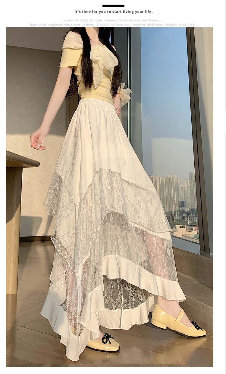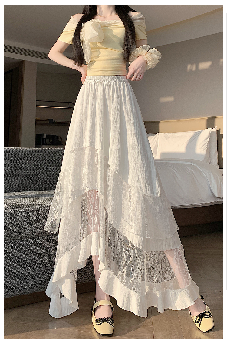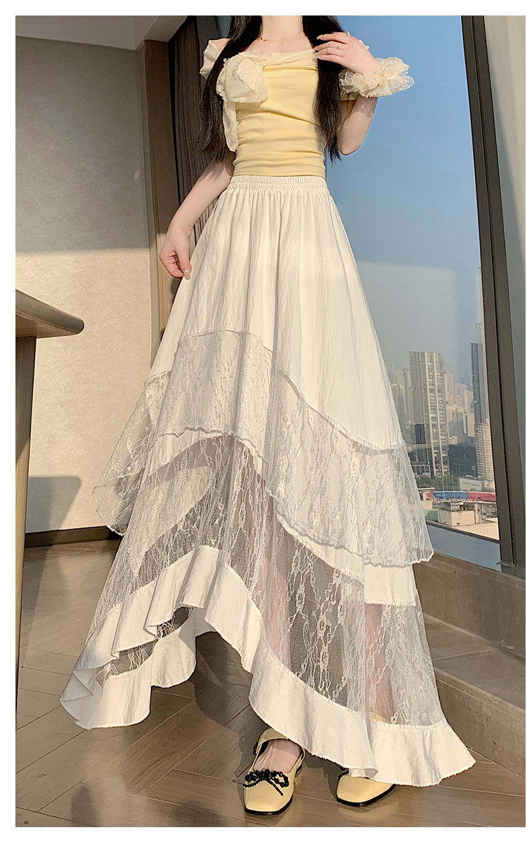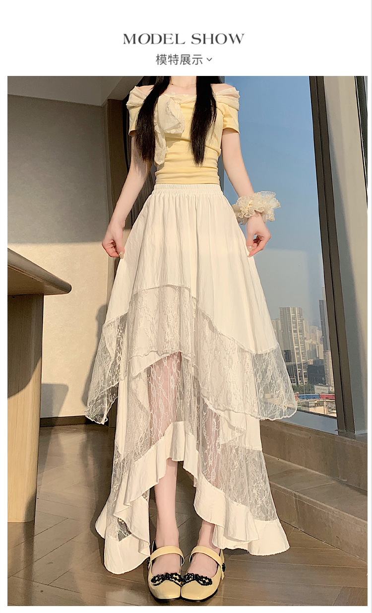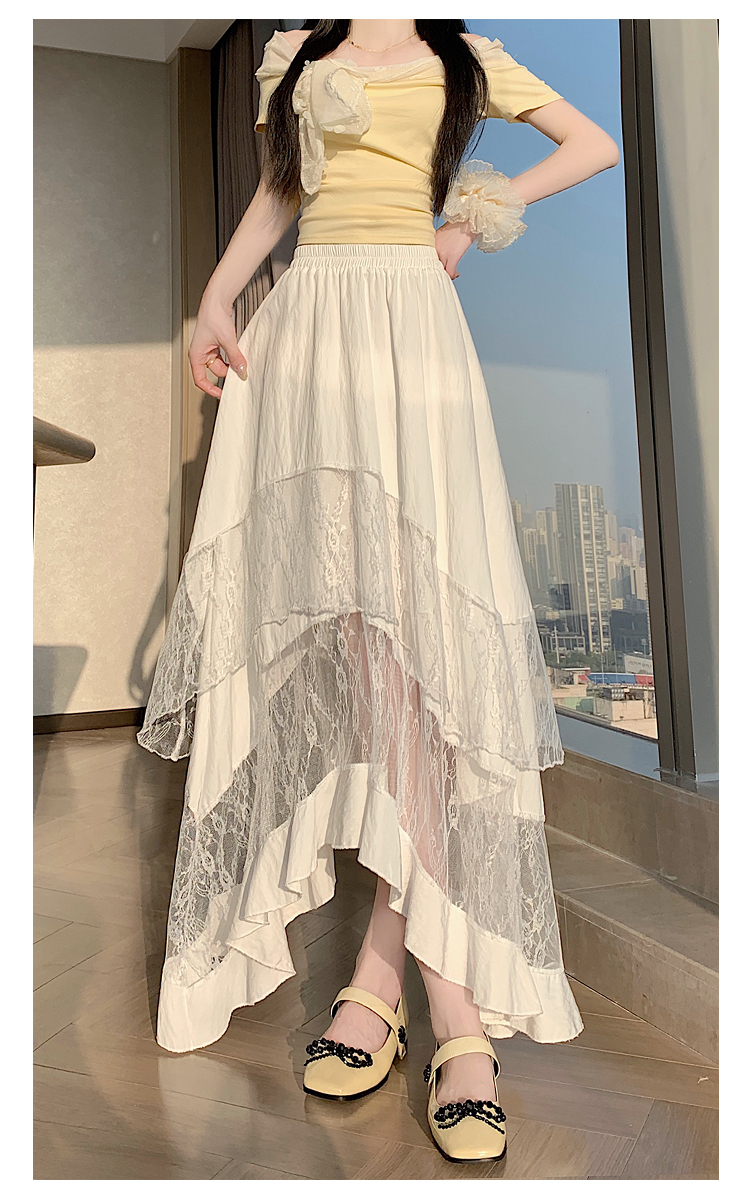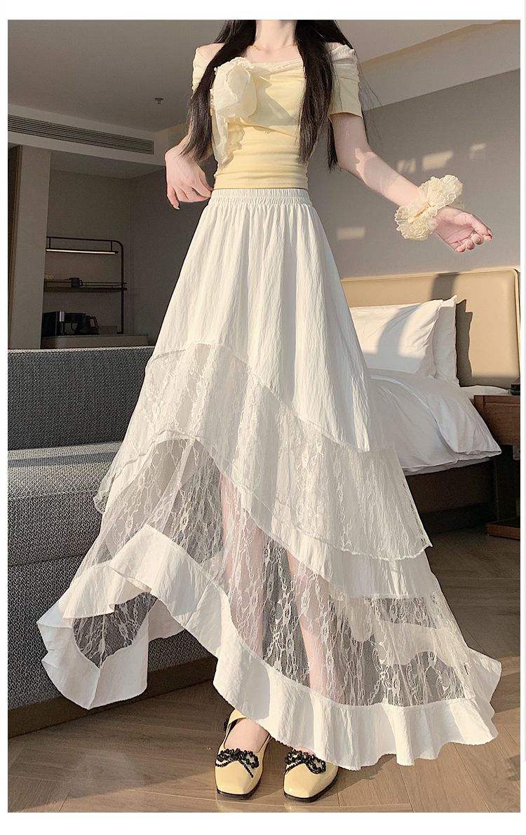 실사 2026 여름 새로운 한국 스타일 하이웨이스트 부드러운 바람 망사 패치워크 레이스 중간 스커트 패션 다용도 A라인 스커트