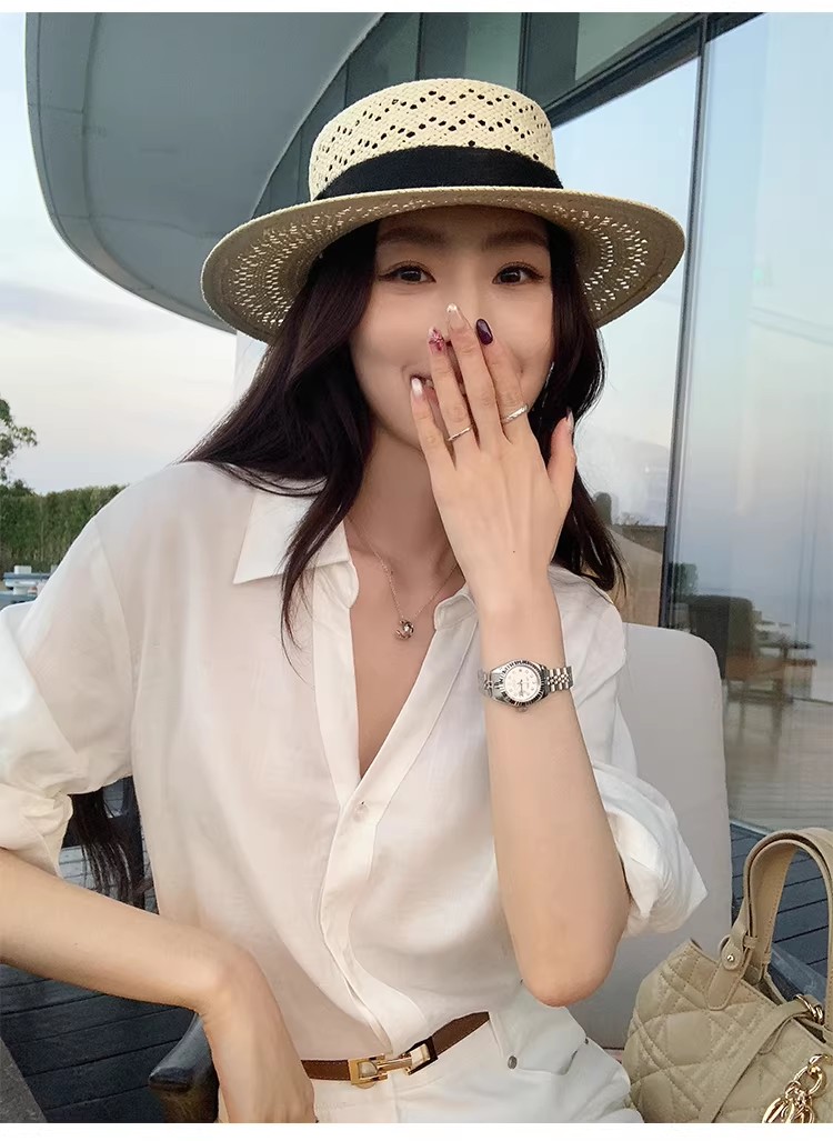 아니요 실사 화이트 반팔 여성 셔츠 프랑스식 품격 출퇴근 V넥 맨위 여성 면접 비즈니스웨어