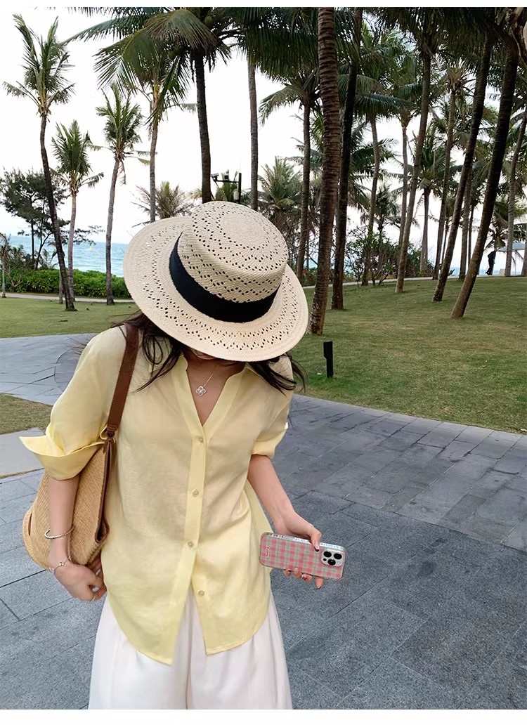 작은 대중 디자인 항구 바람 반팔 여성 셔츠 폴로 칼라 레트로 맨위 여름 드레스 외출용 ins 트렌디 디스플레이 화이트