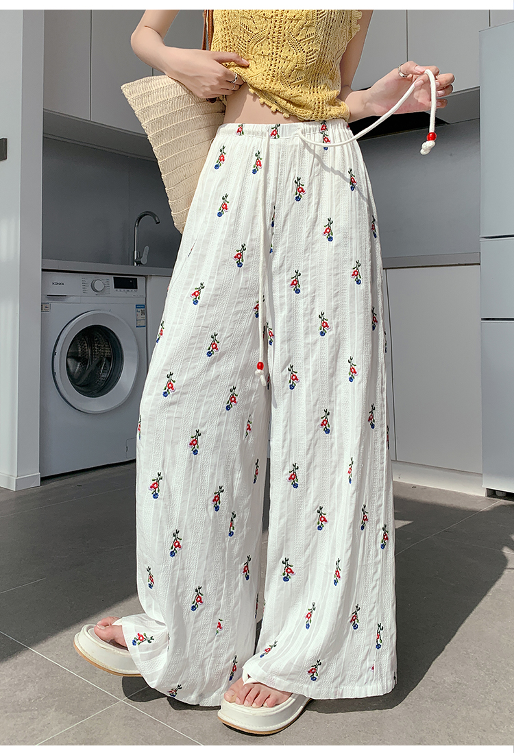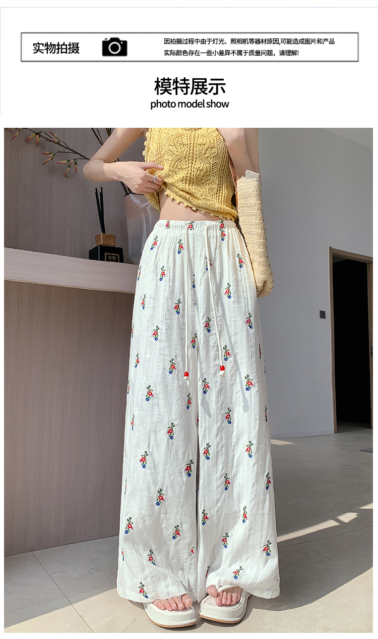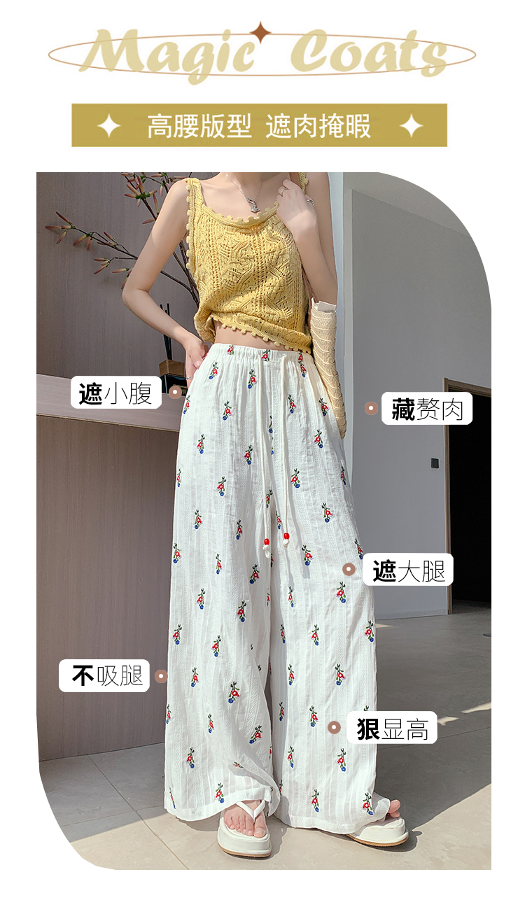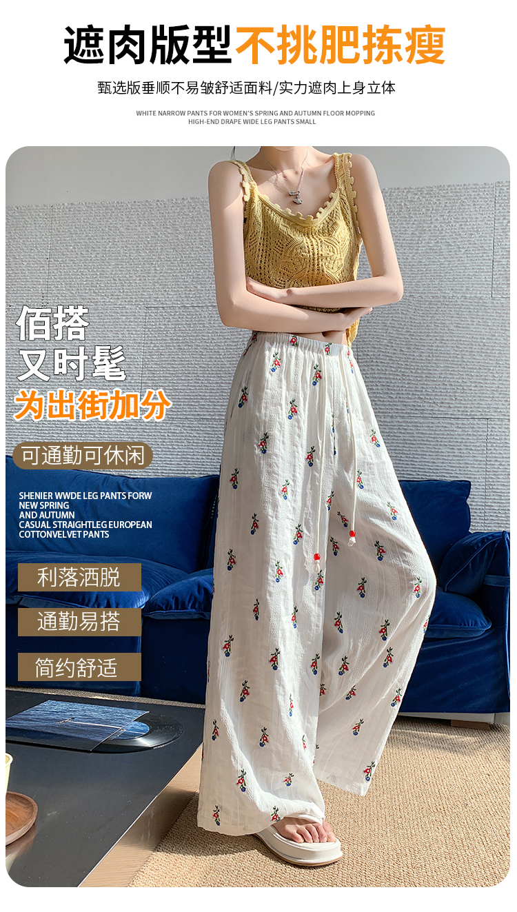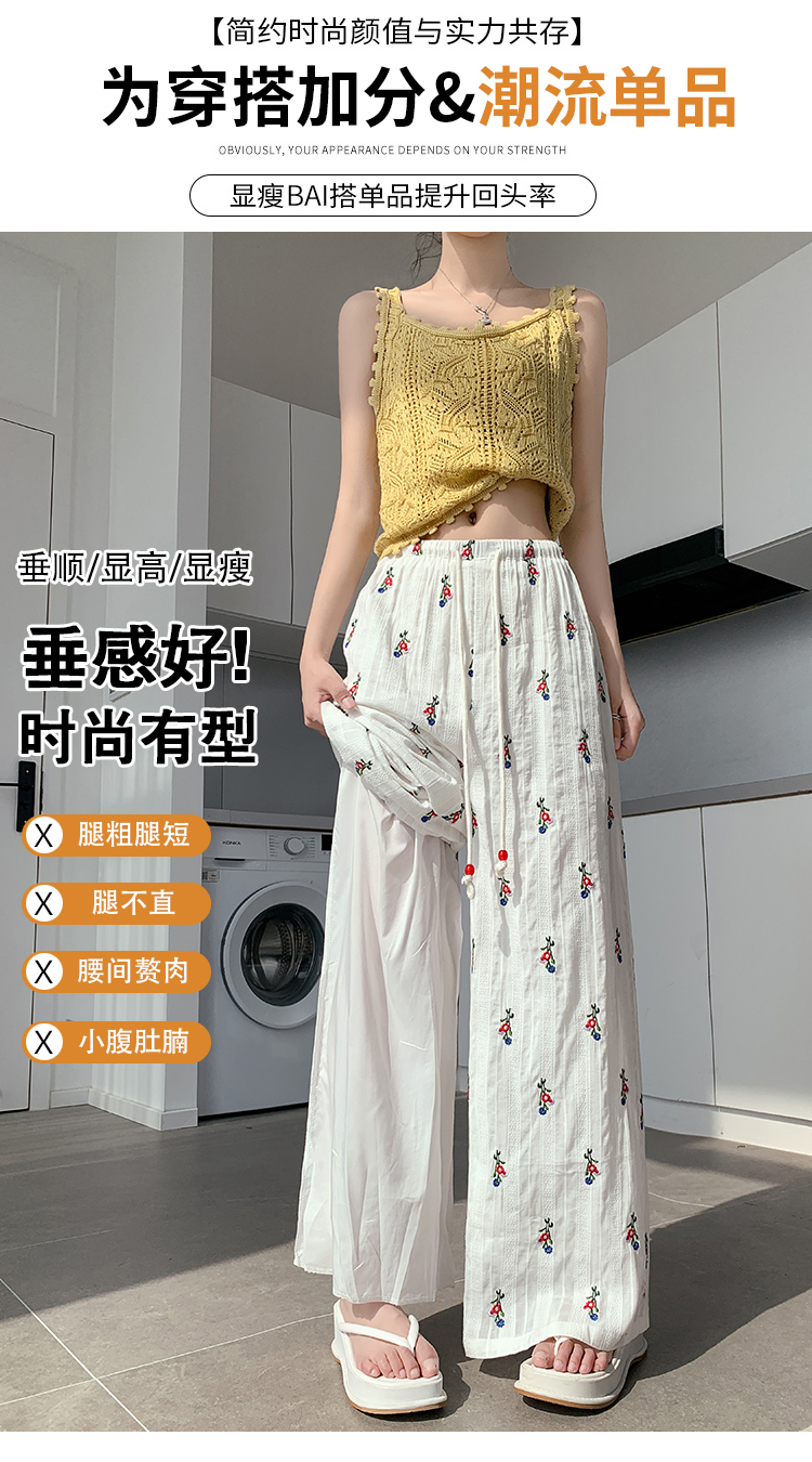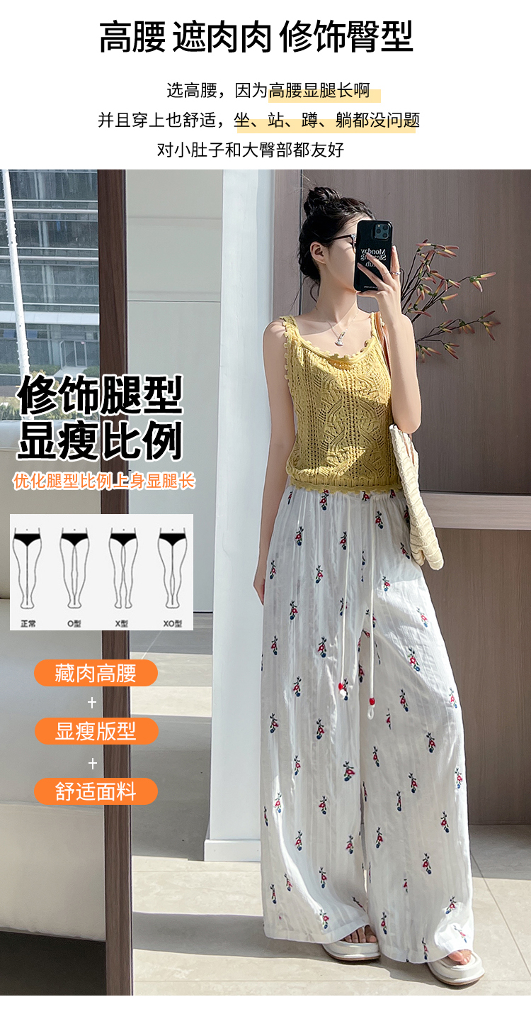 화이트 꽃무늬 와이드 레깅스 바지 2026 여름 얇은 스타일 작은 키 하이웨이스트 스트레이트 도루 센스 루즈핏 캐주얼 야마모토 바지