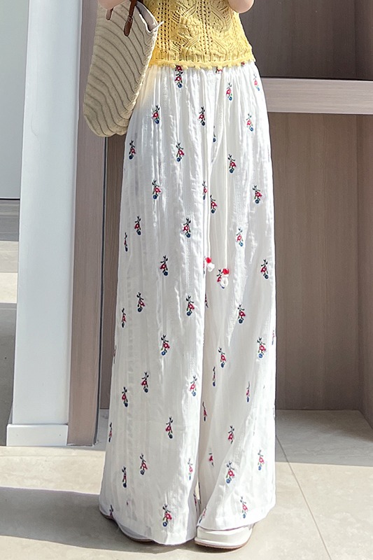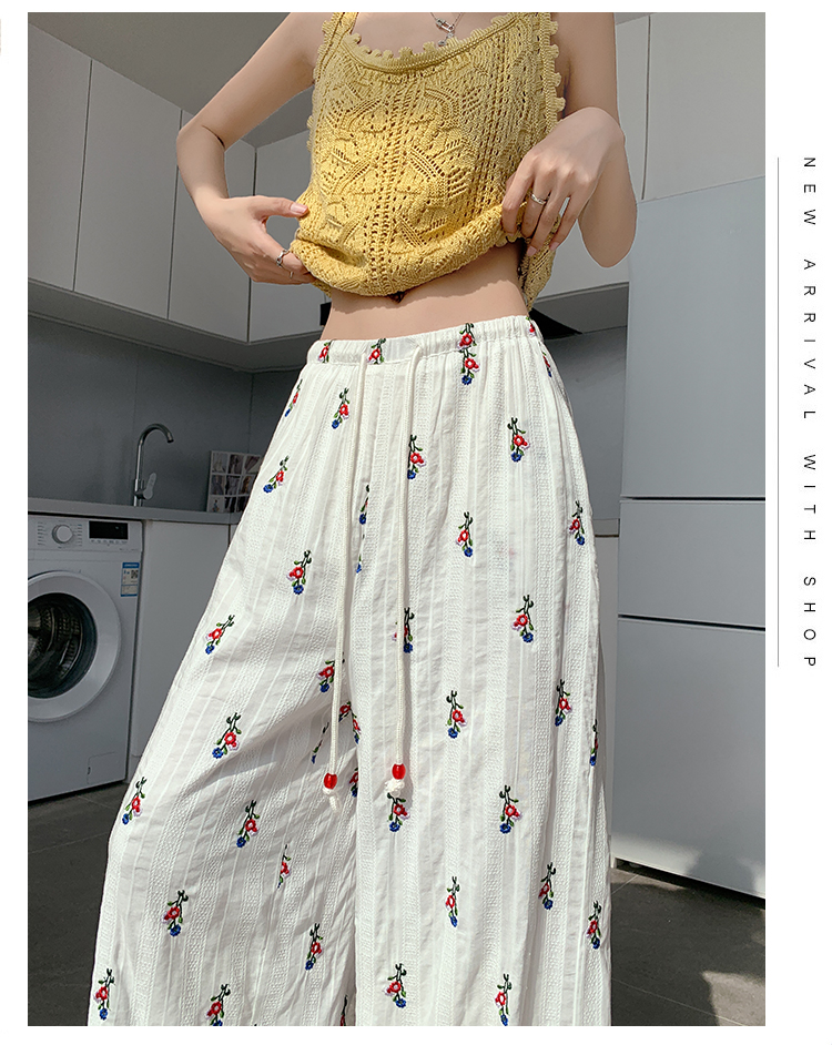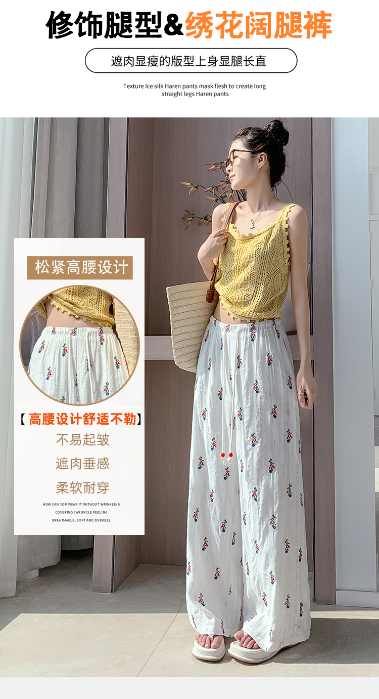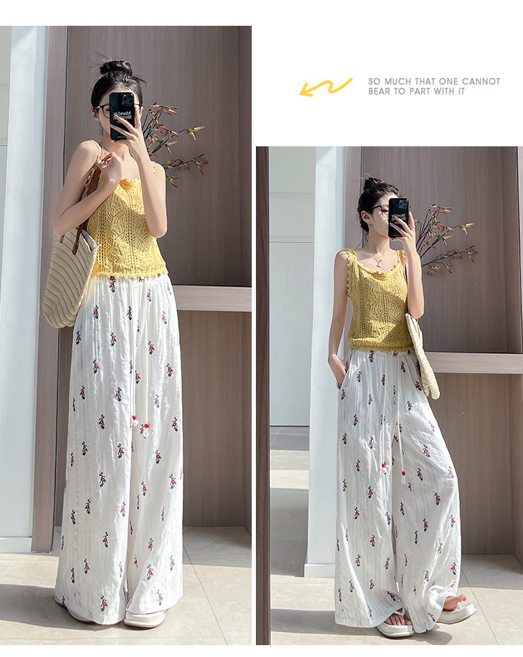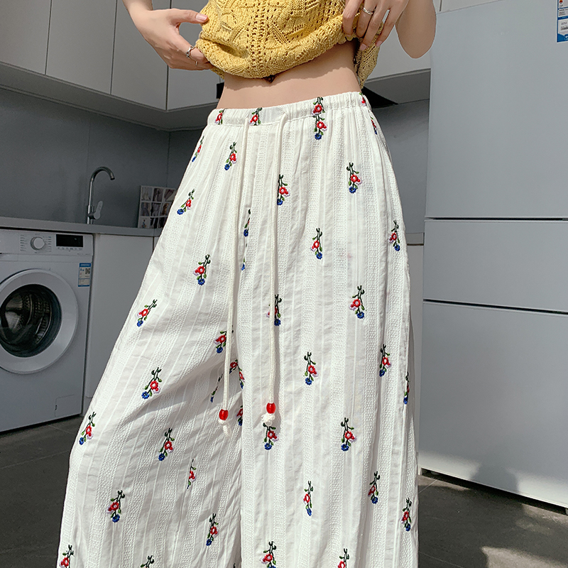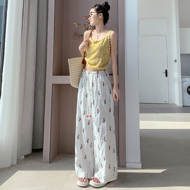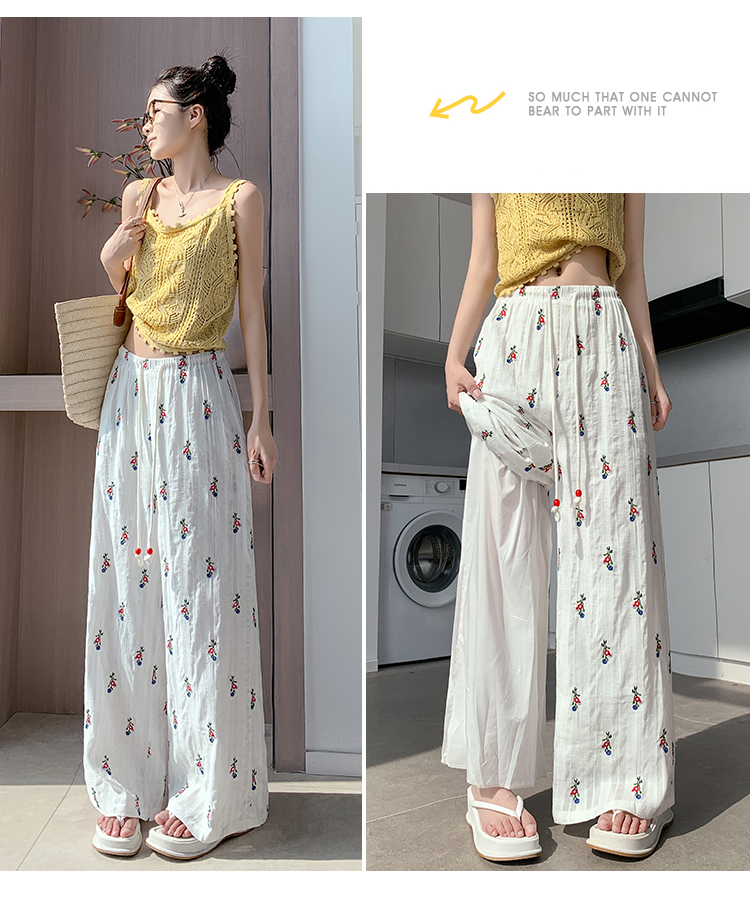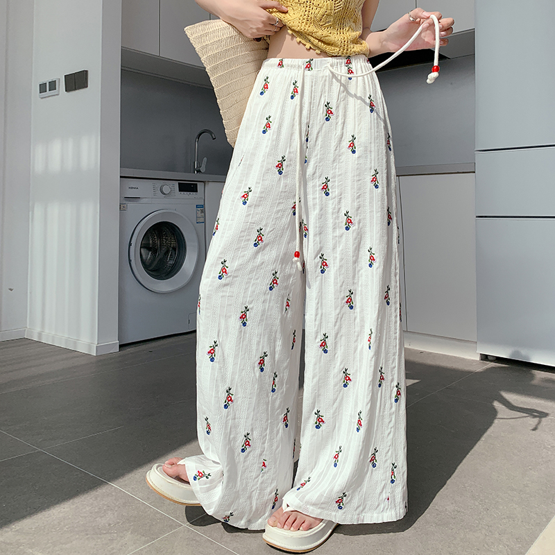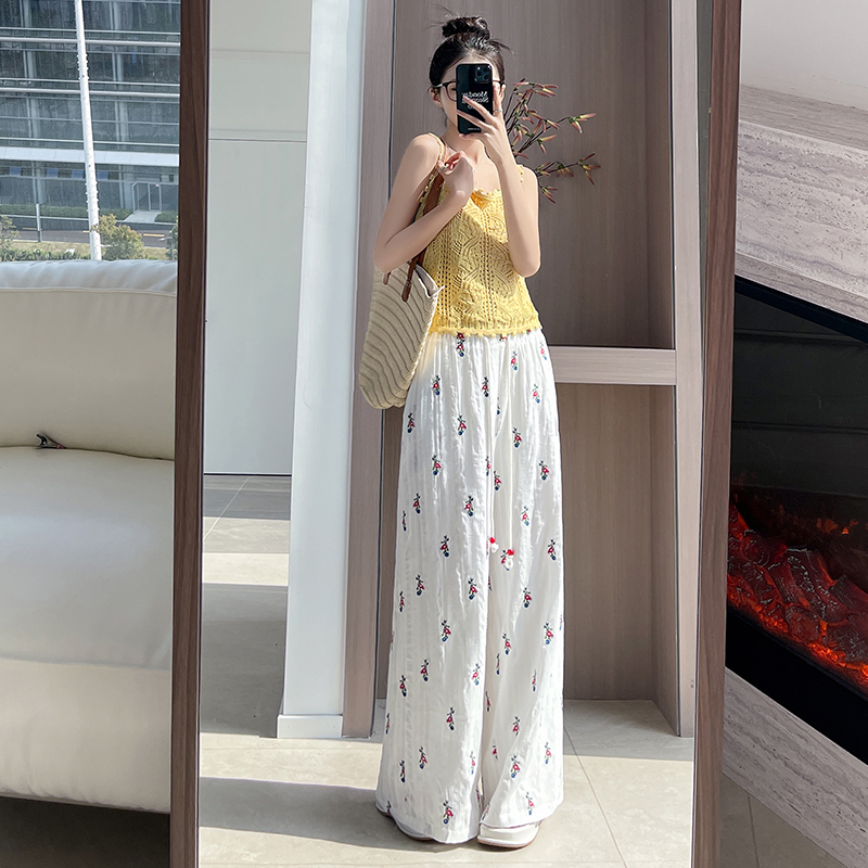 화이트 꽃무늬 와이드 레깅스 바지 2026 여름 얇은 스타일 작은 키 하이웨이스트 스트레이트 도루 센스 루즈핏 캐주얼 야마모토 바지