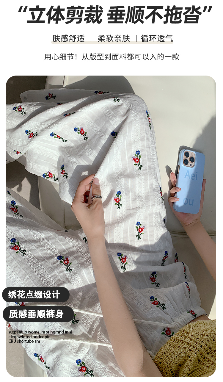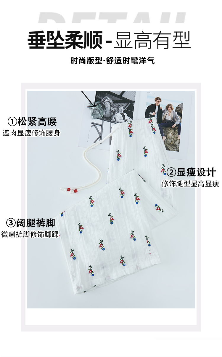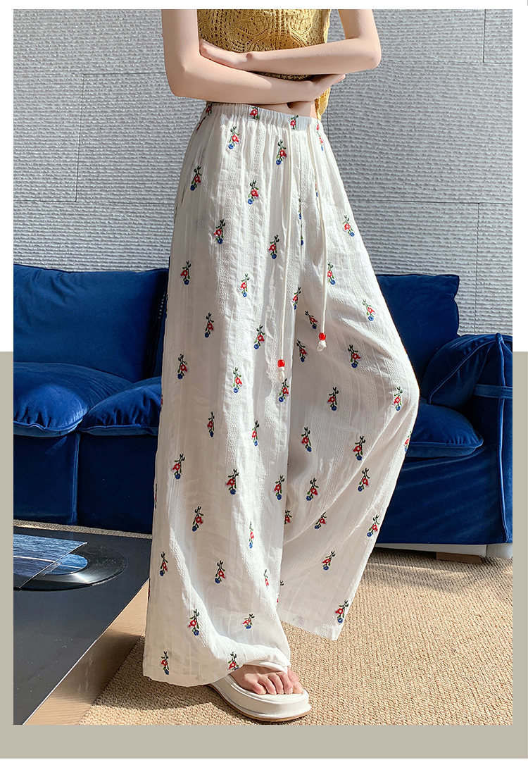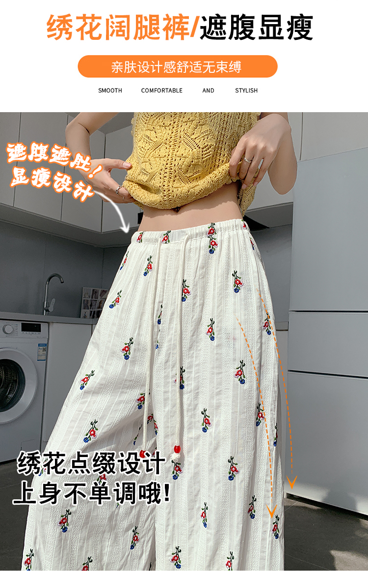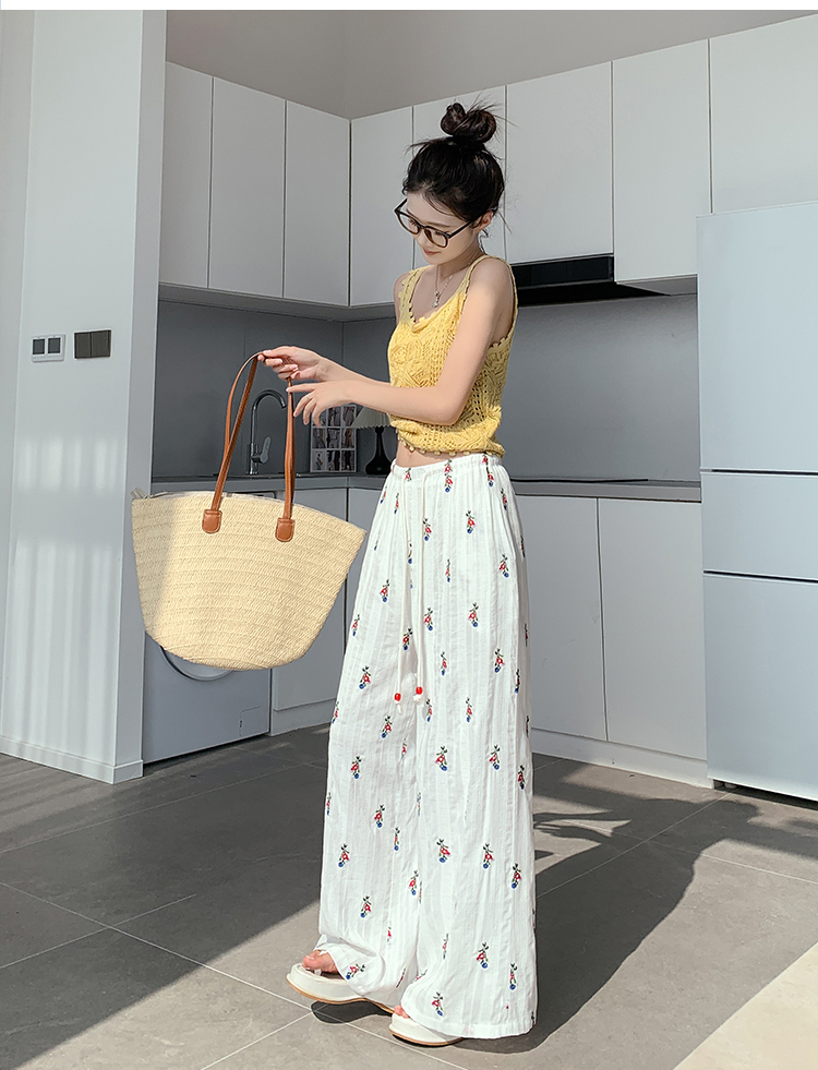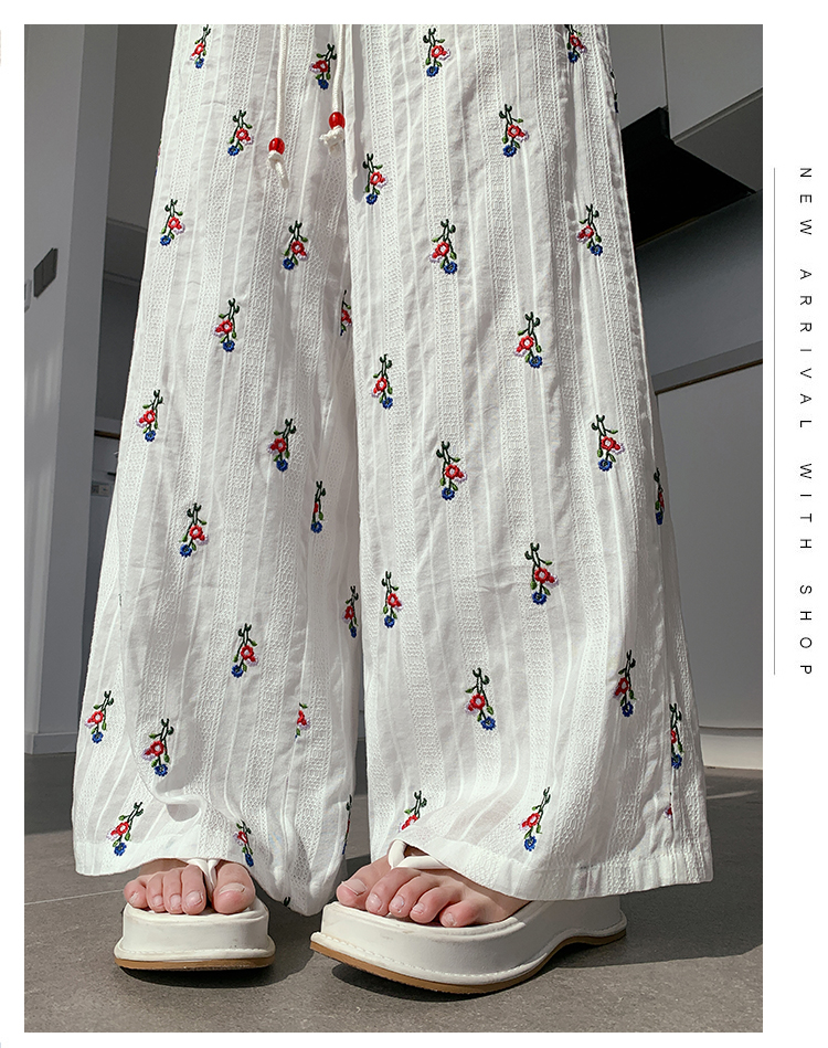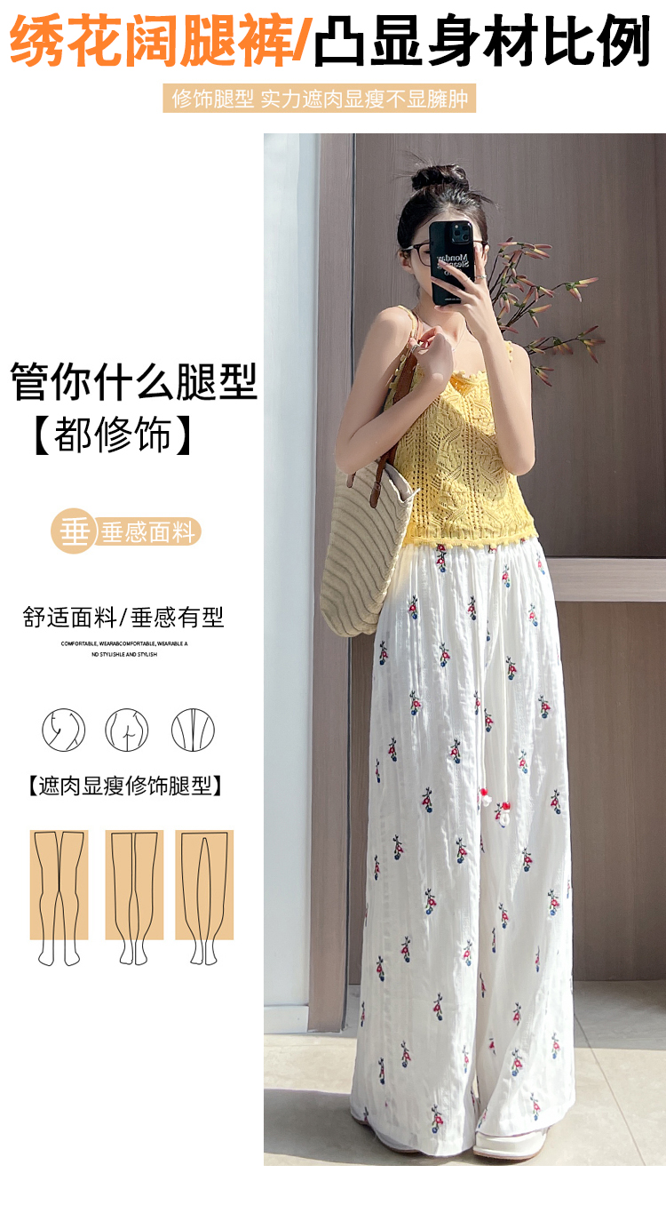화이트 꽃무늬 와이드 레깅스 바지 2026 여름 얇은 스타일 작은 키 하이웨이스트 스트레이트 도루 센스 루즈핏 캐주얼 야마모토 바지