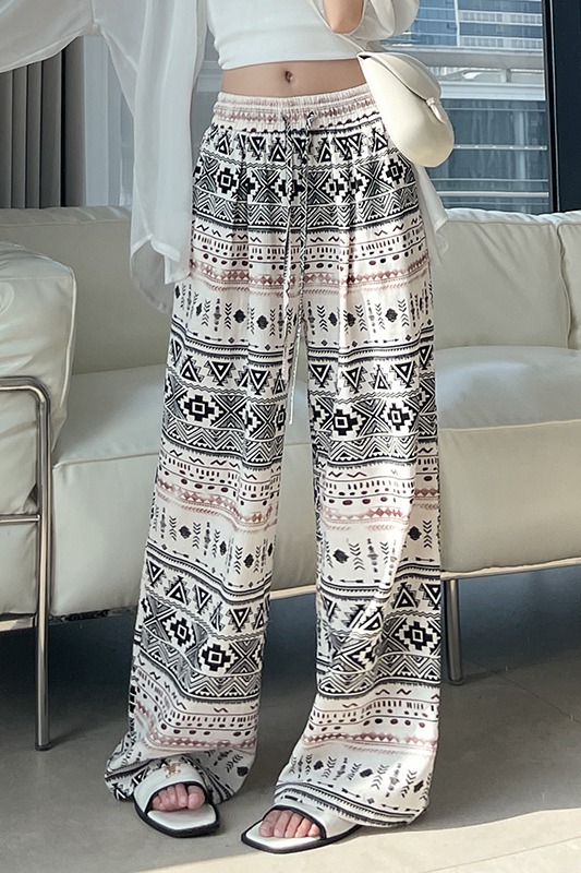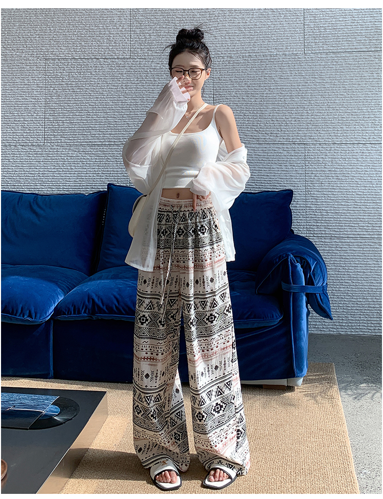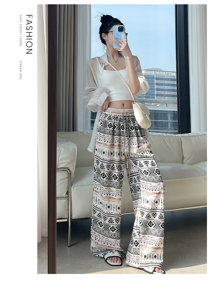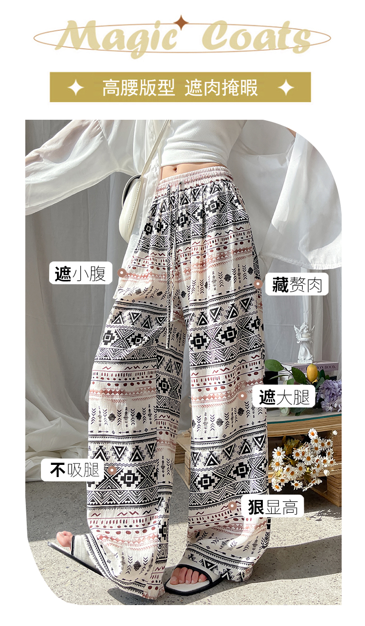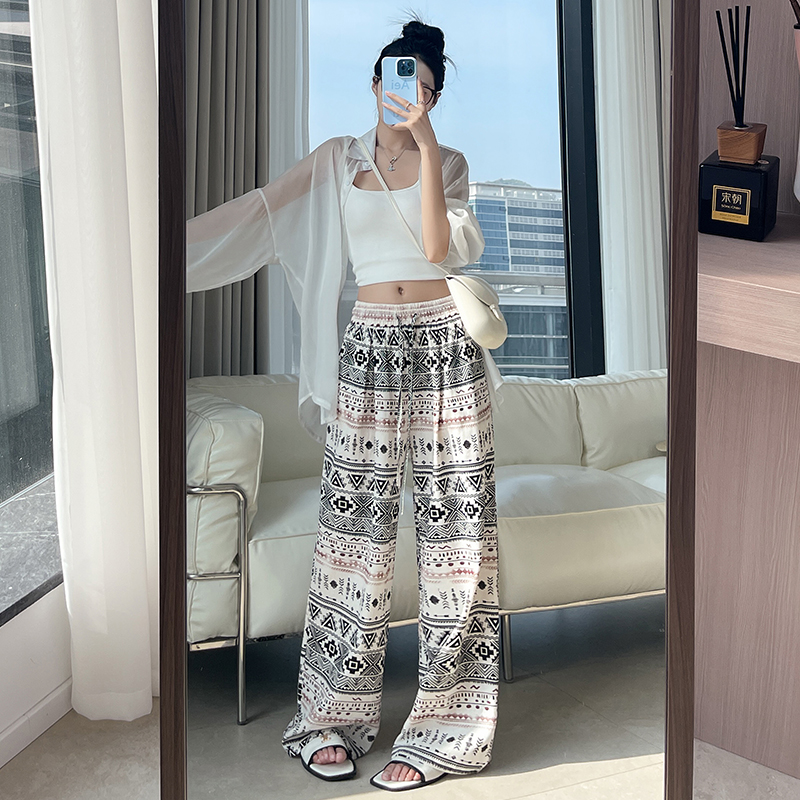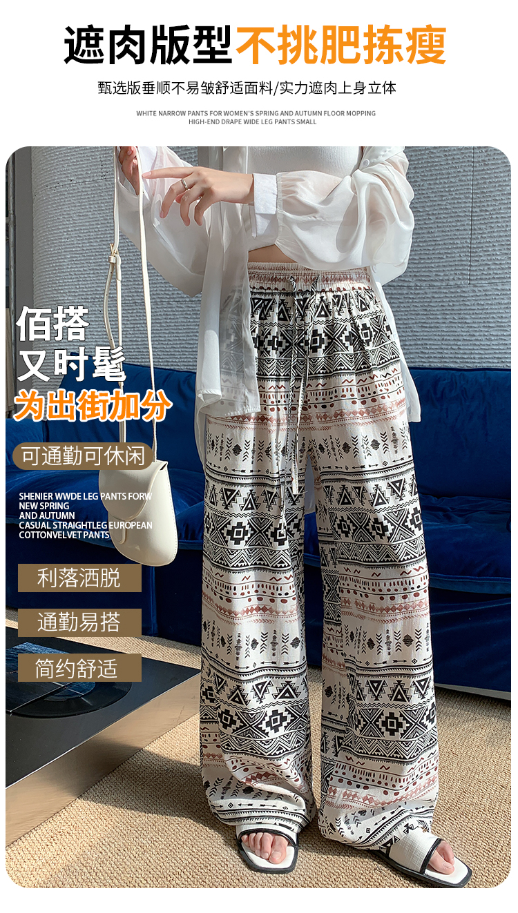 화이트 꽃무늬 와이드 레깅스 바지 2026 여름 얇은 스타일 작은 키 하이웨이스트 스트레이트 도루 센스 루즈핏 캐주얼 야마모토 바지