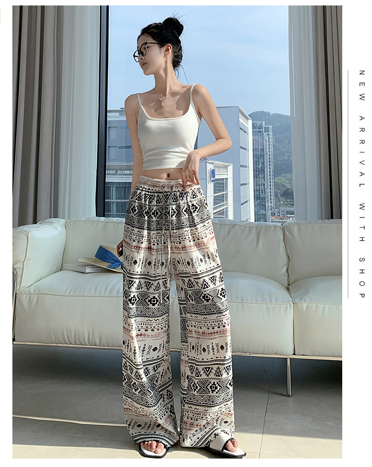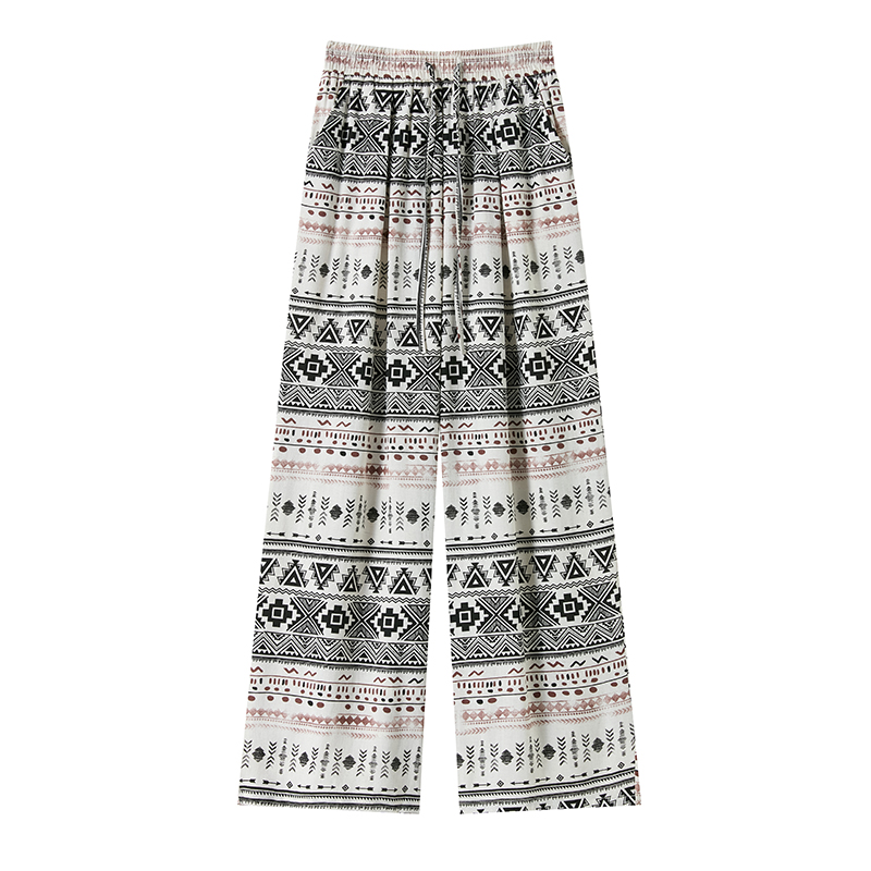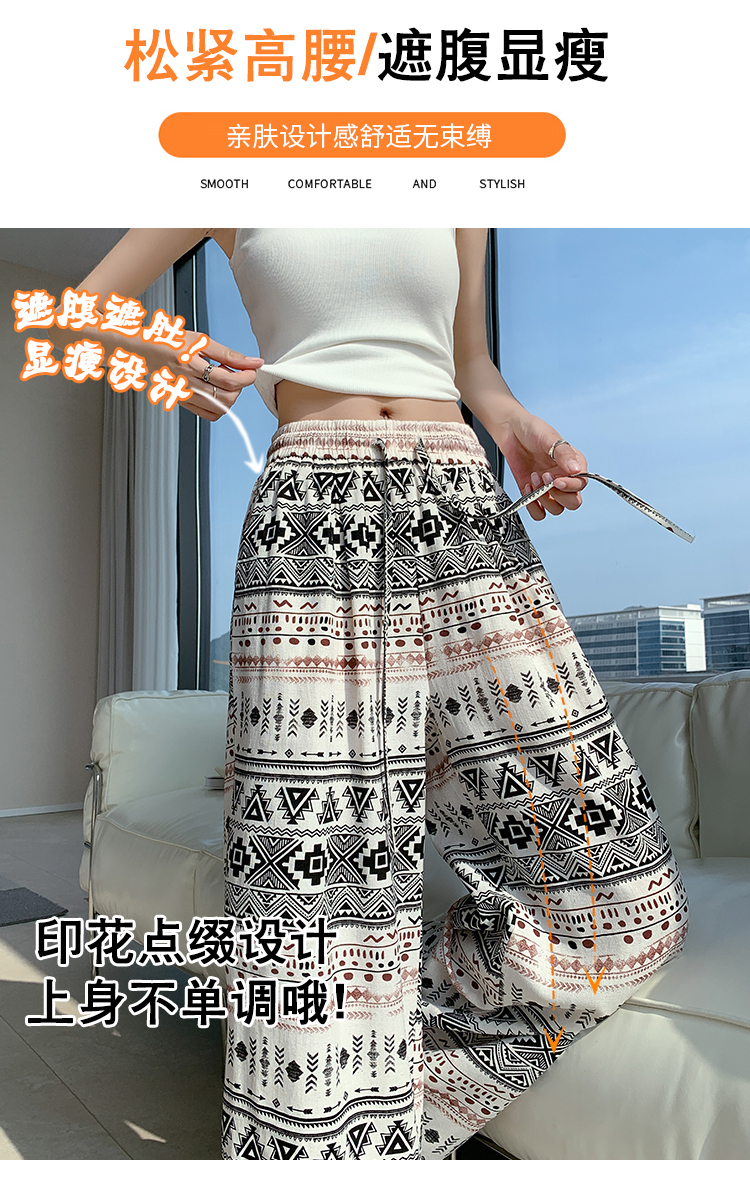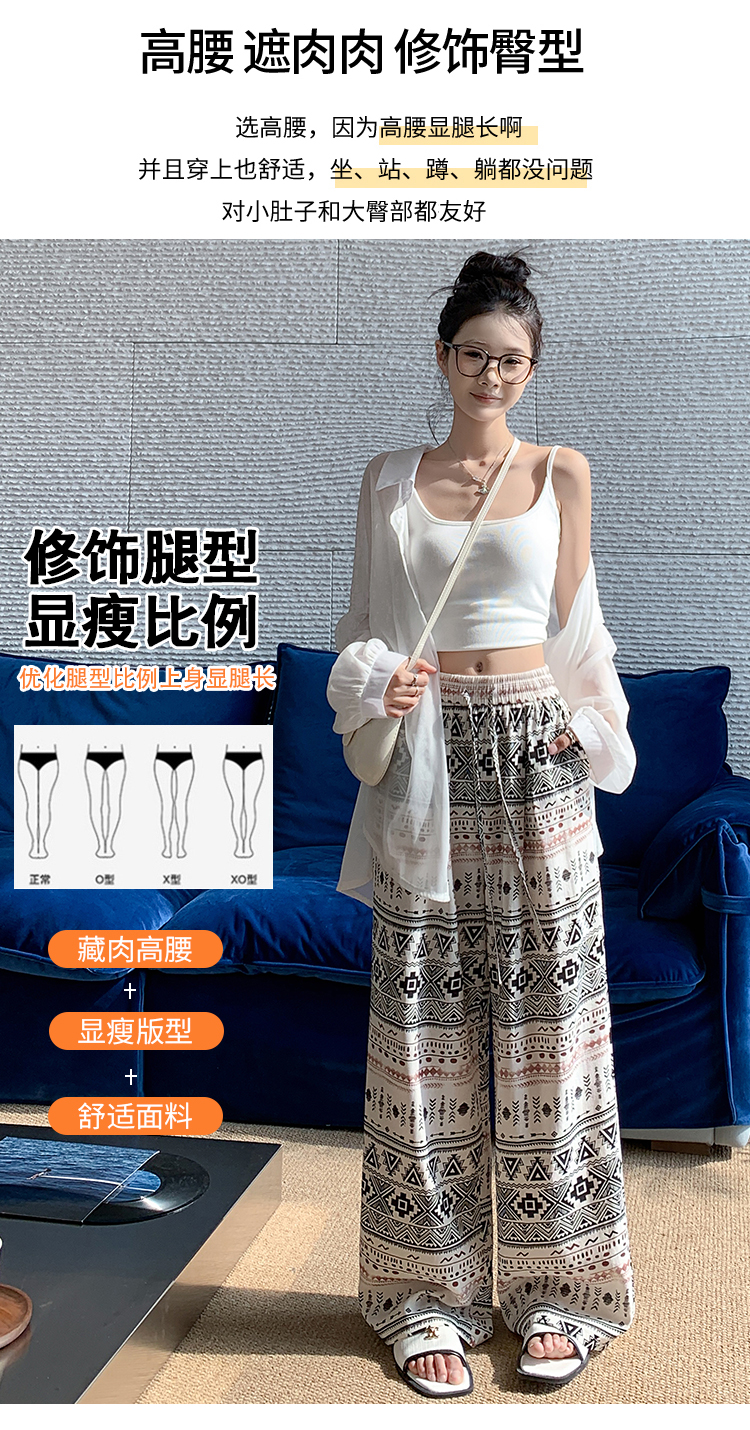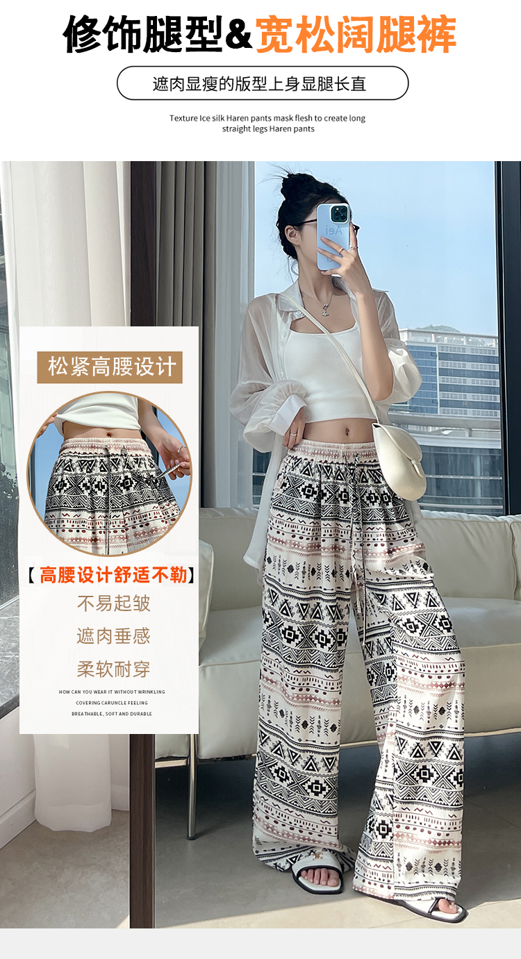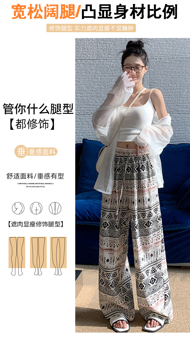 한국 스타일 얼음 실크 자수 아시아 인 면 린넨 와이드 레깅스 바지 2026 여름 얇은 스타일 하이웨이스트 슬림해 보이는 벽오동 스트레이트 긴 바지