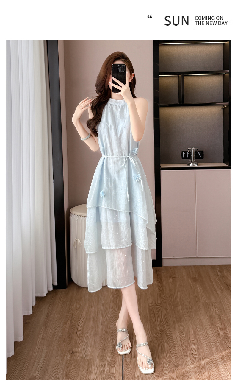 차 휴식 프랑스식 드레스 2026 새로운 여성 여름 부드러운 바람 프릴 요정 품격 쉬폰 슬립 롱 스커트