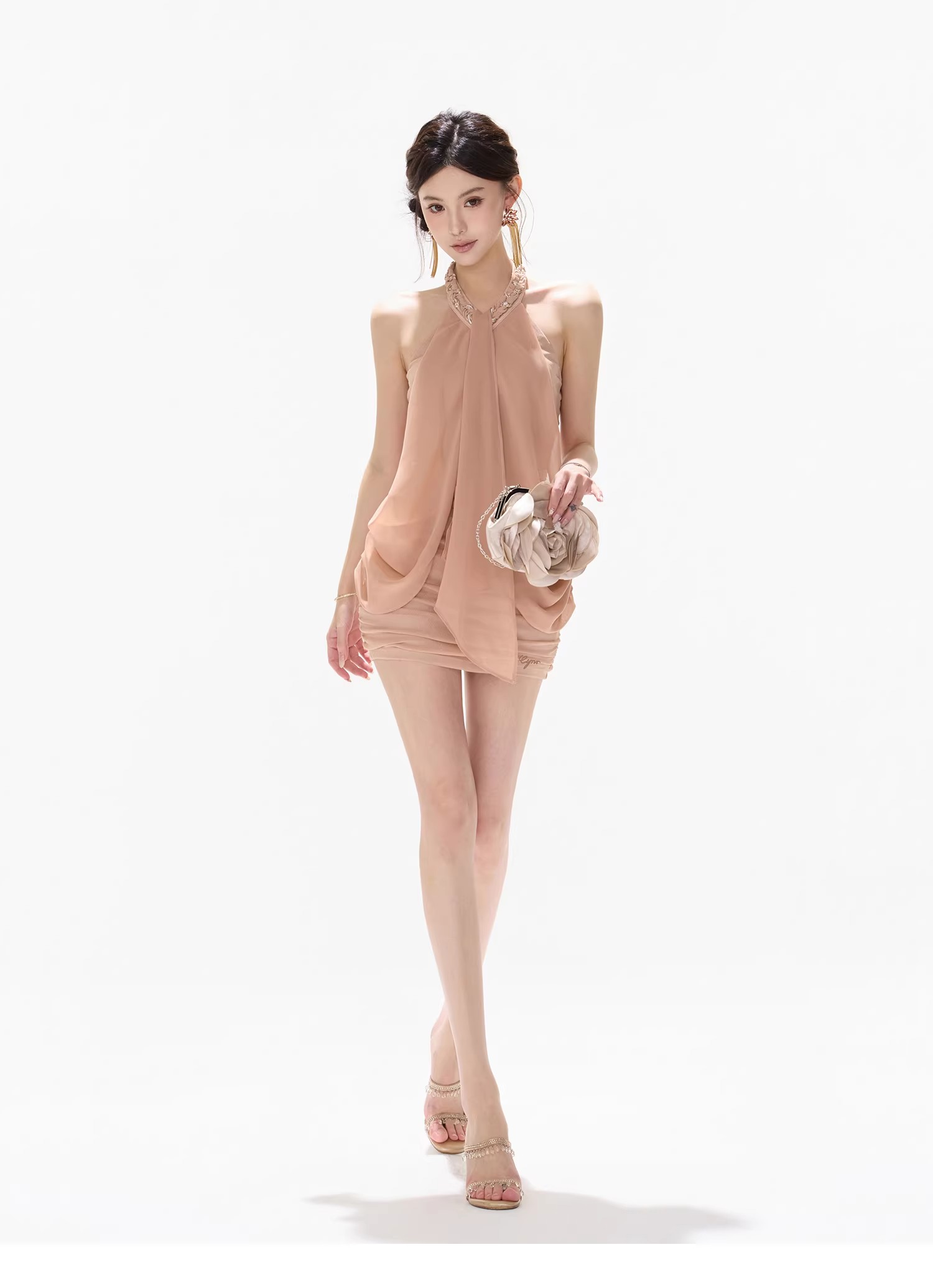 sisi jiang 달 그림자 유리 프랑스식 우아함 허리 수축 휴가 망사 자카드 품격 행침 목 롱 스커트