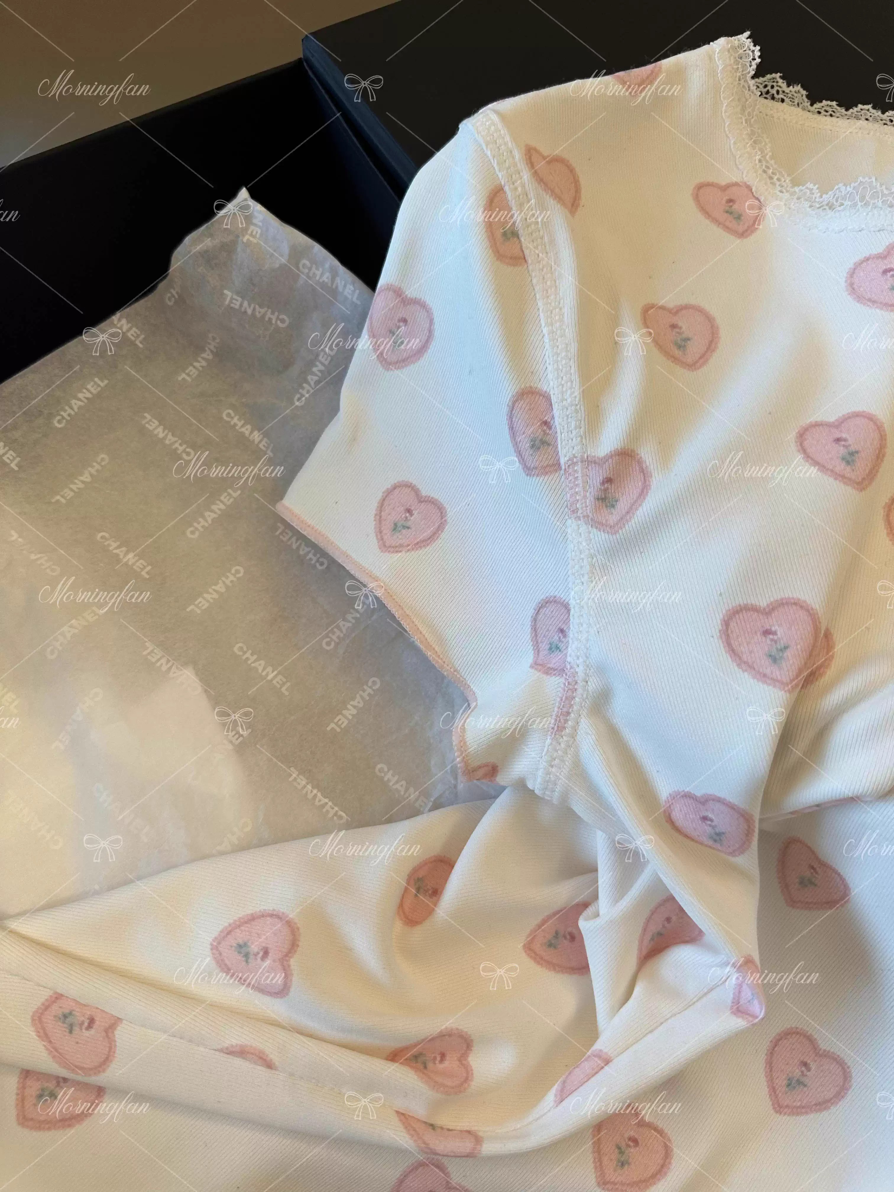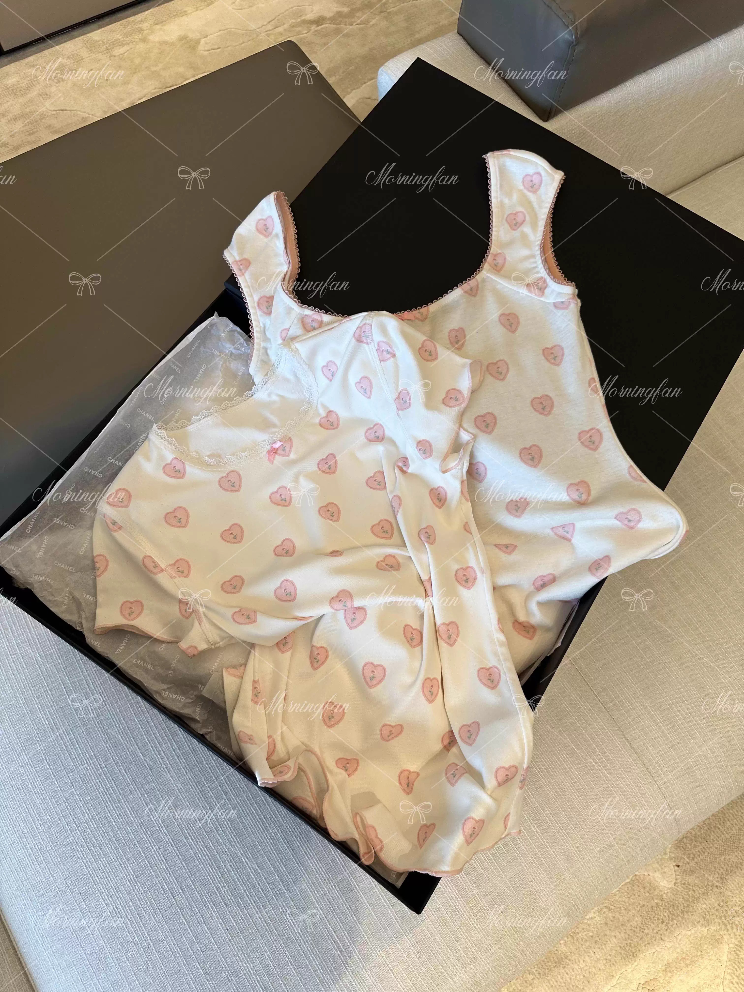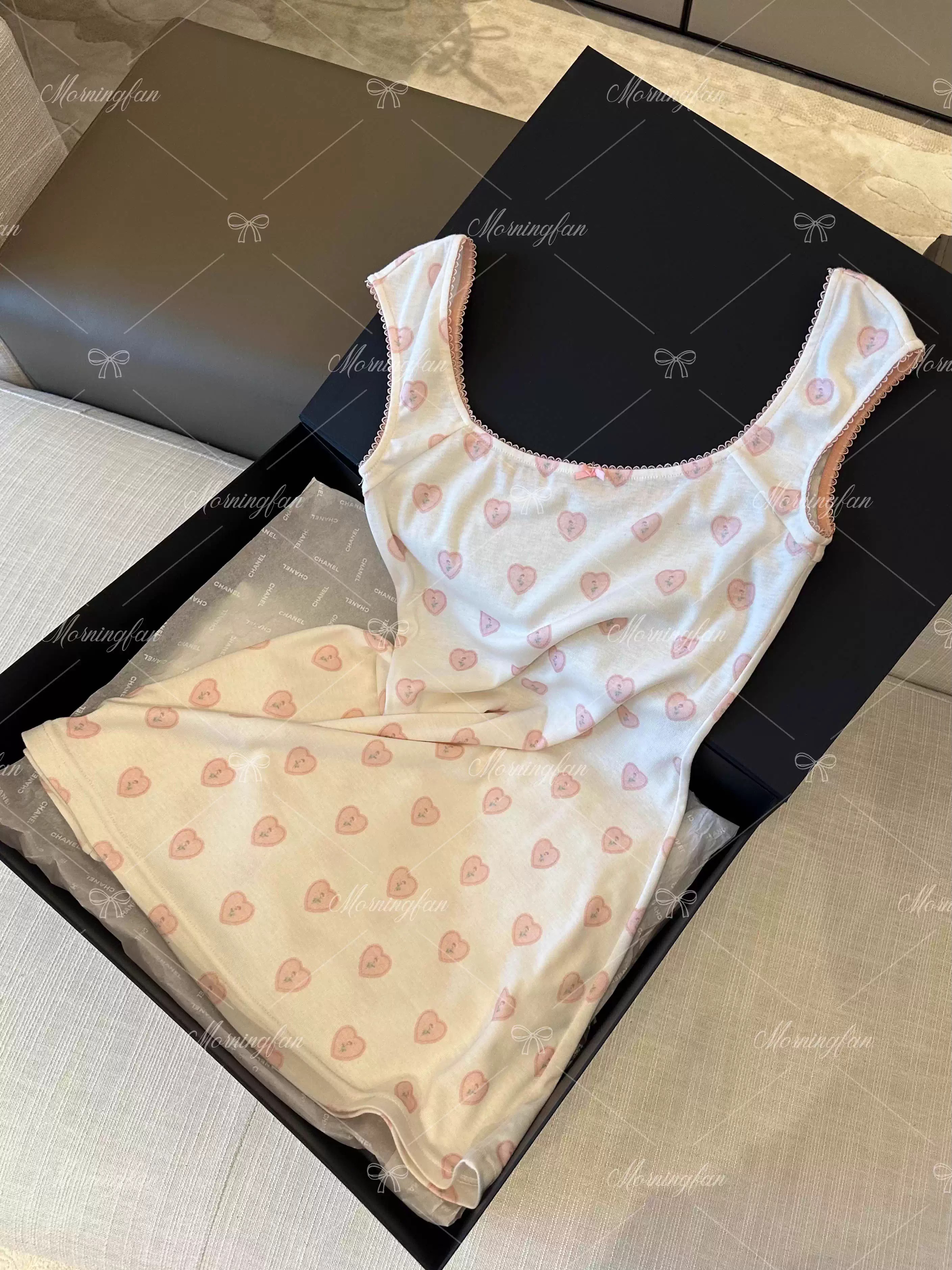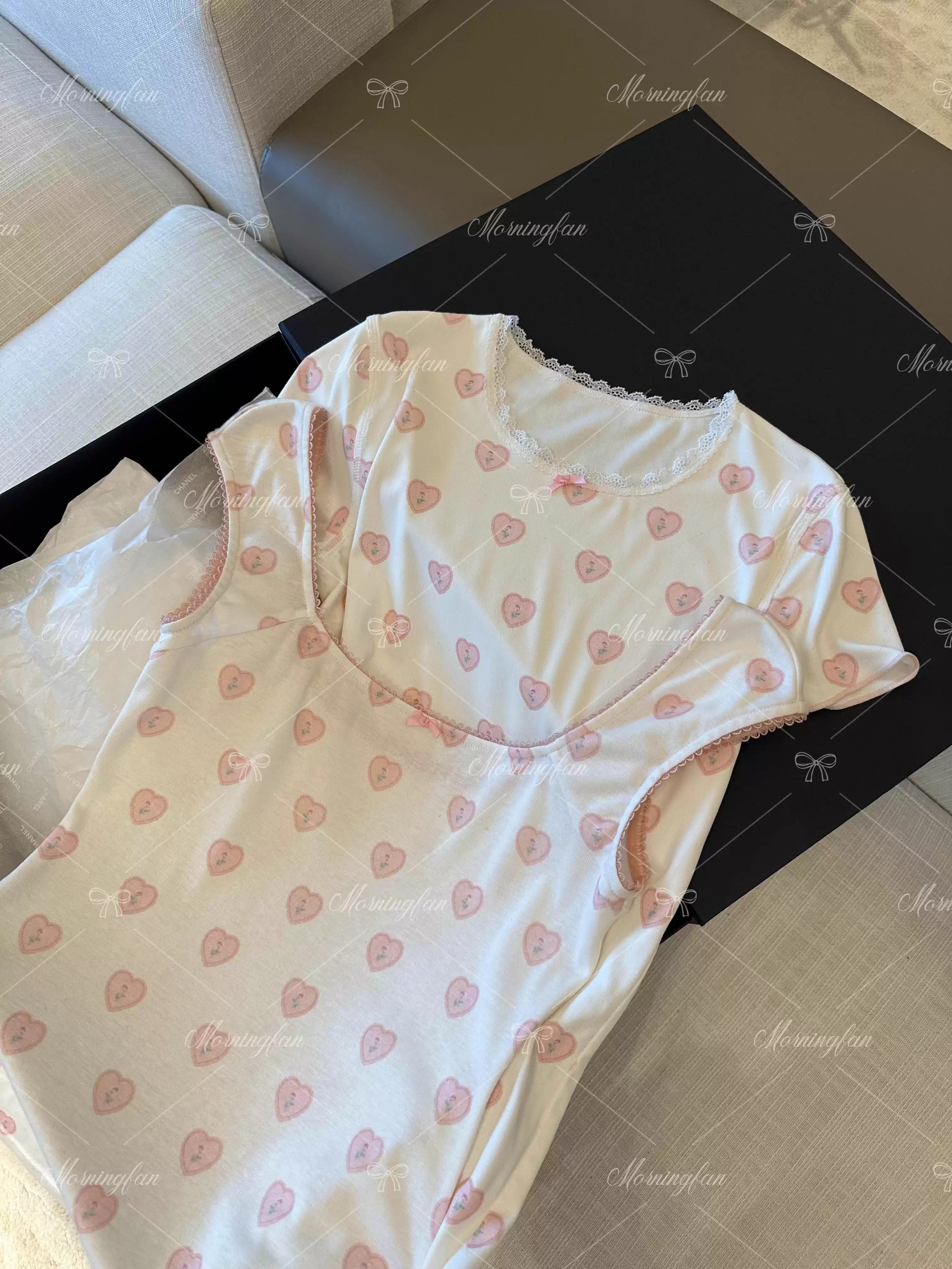 다우 시시 주간 맑은 하늘 분말 꽃잎 원 웨이 비스듬한 襟 레이스 조각 새로운 중식 맨위 여름 출퇴근 패션 세트