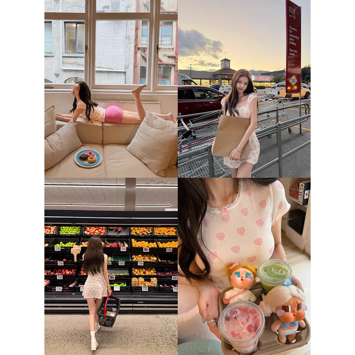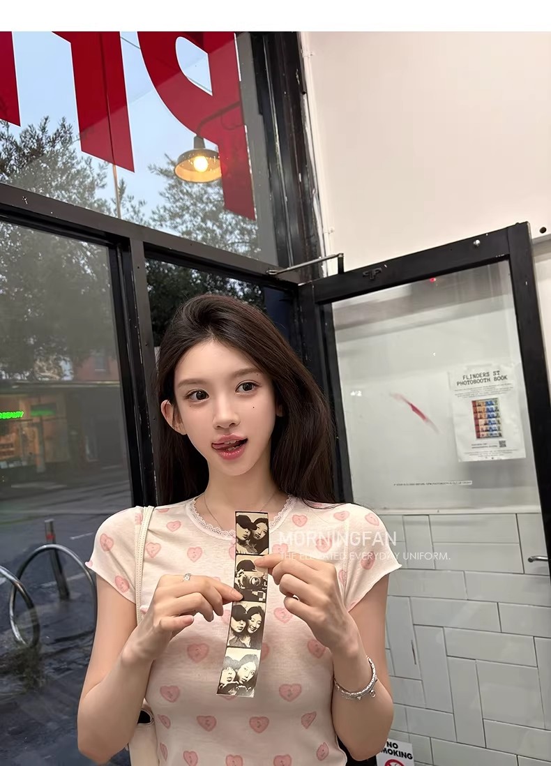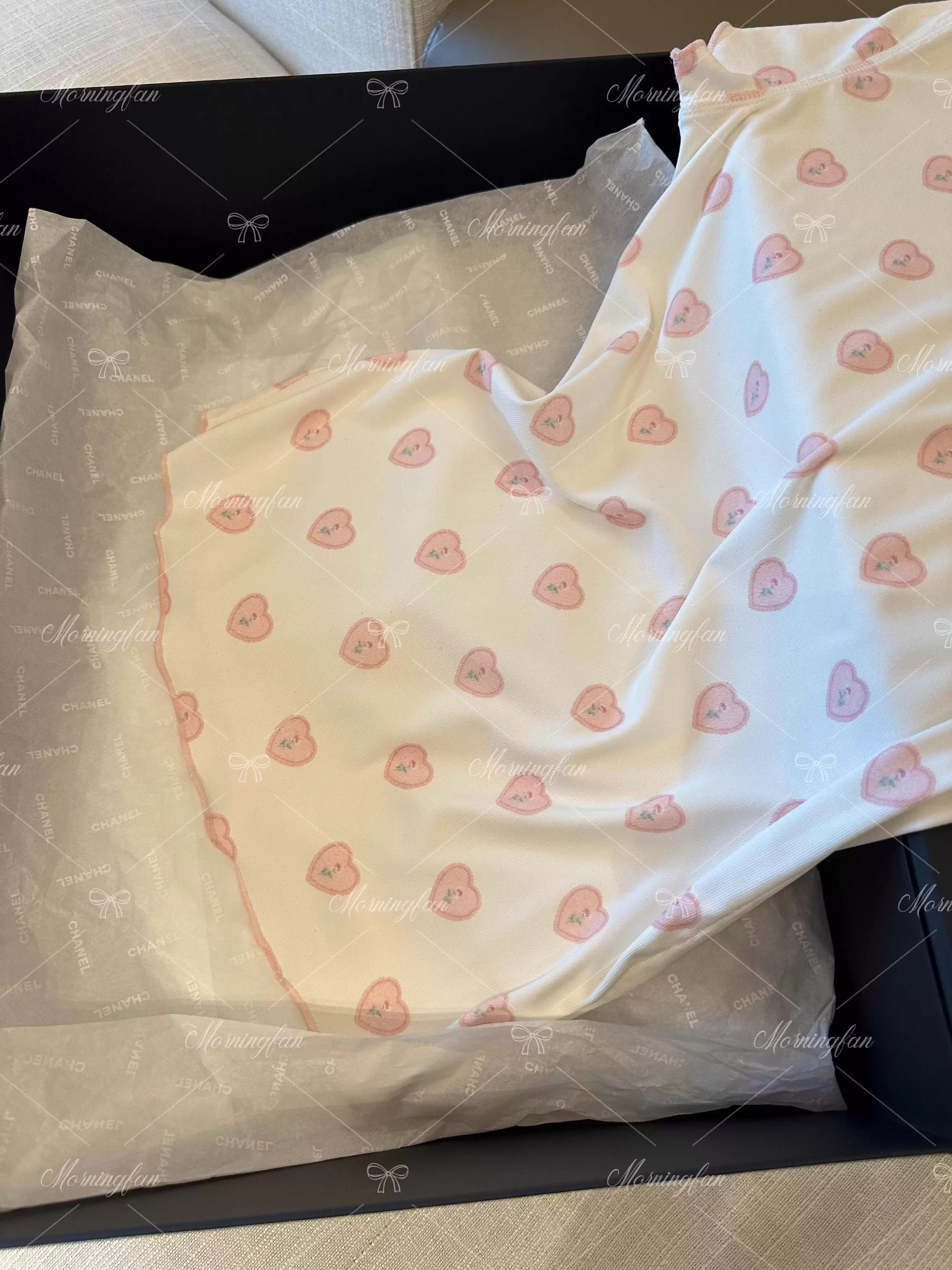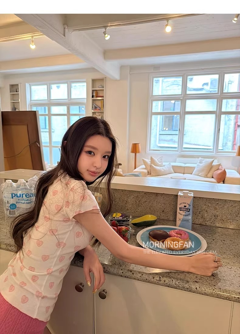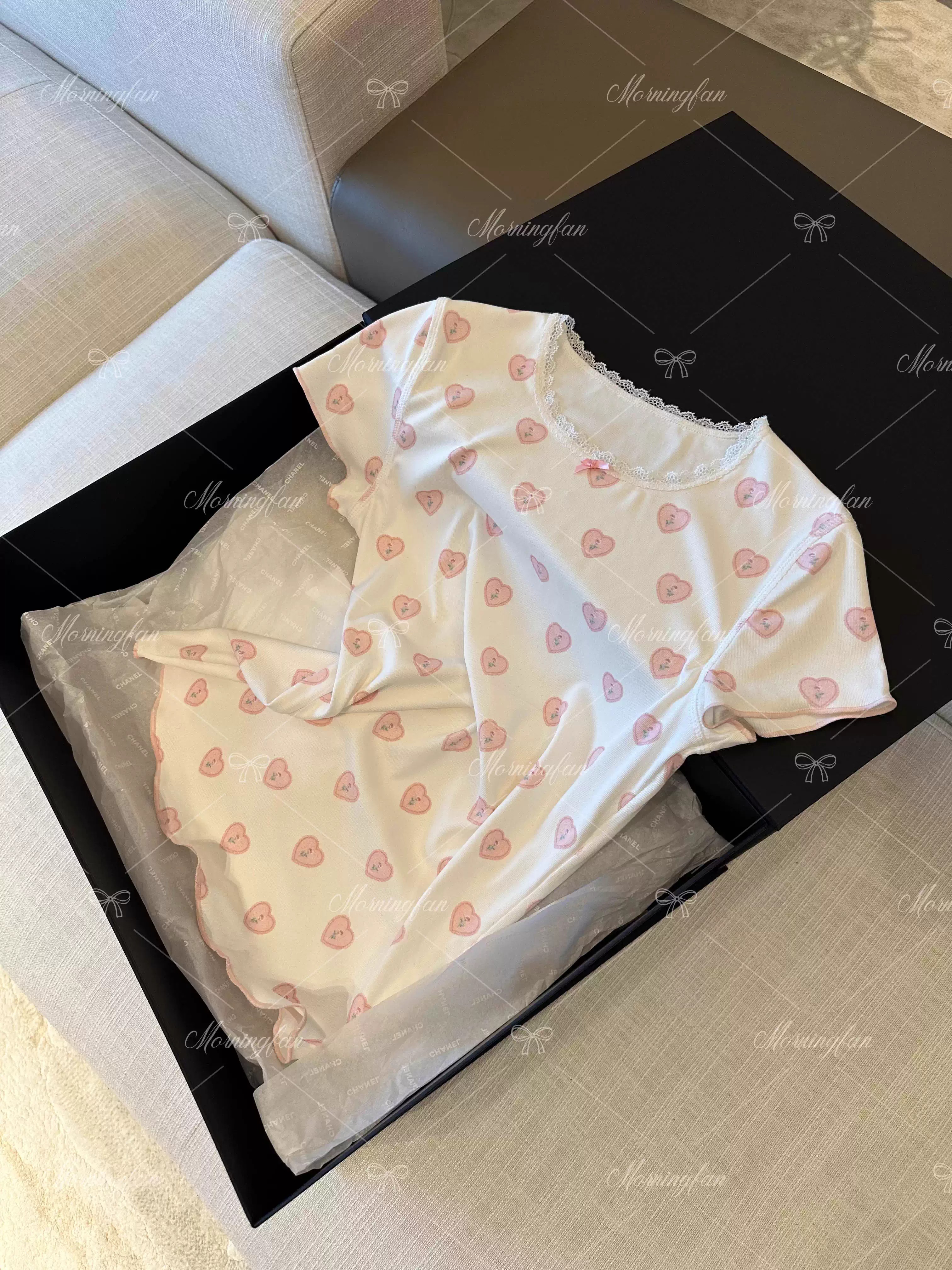다우 시시 주간 맑은 하늘 분말 꽃잎 원 웨이 비스듬한 襟 레이스 조각 새로운 중식 맨위 여름 출퇴근 패션 세트
