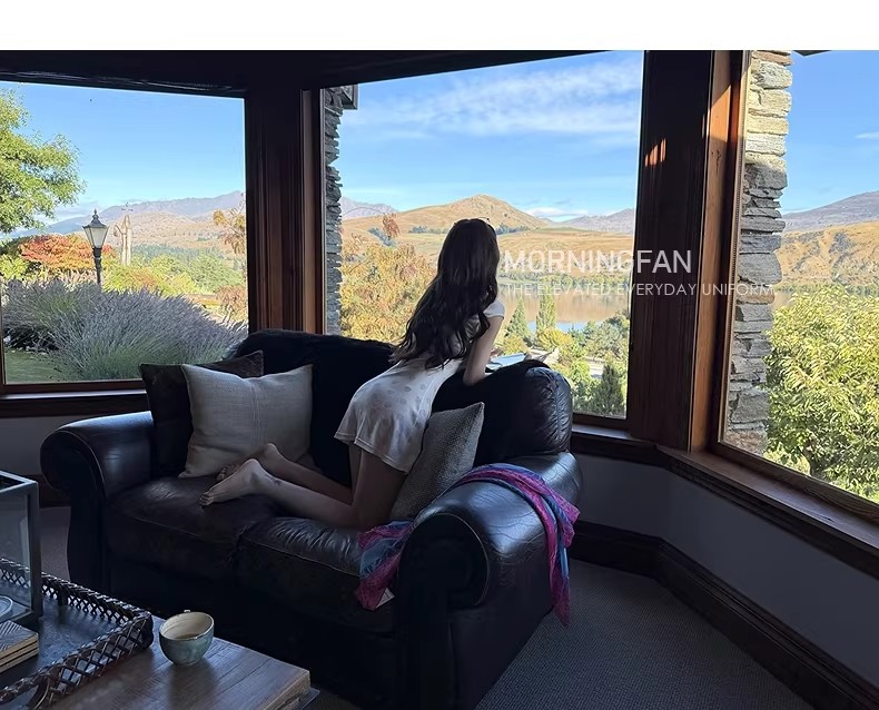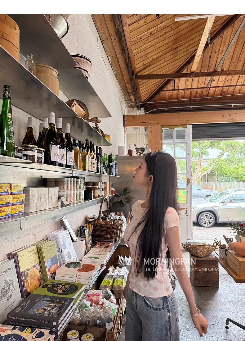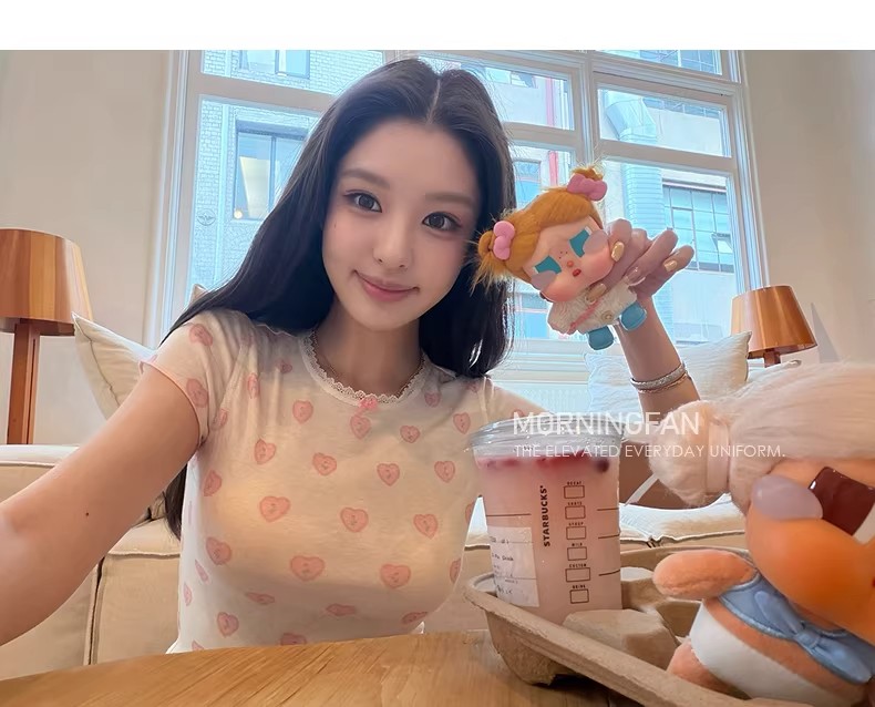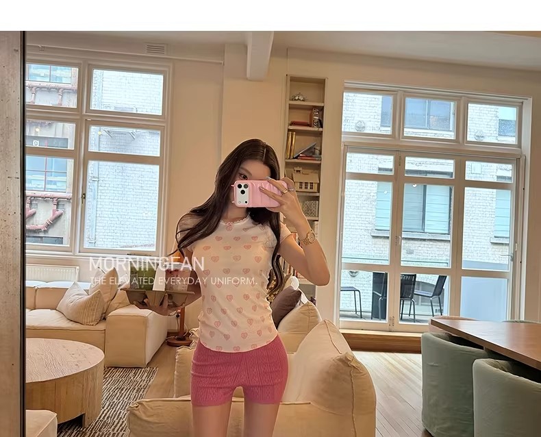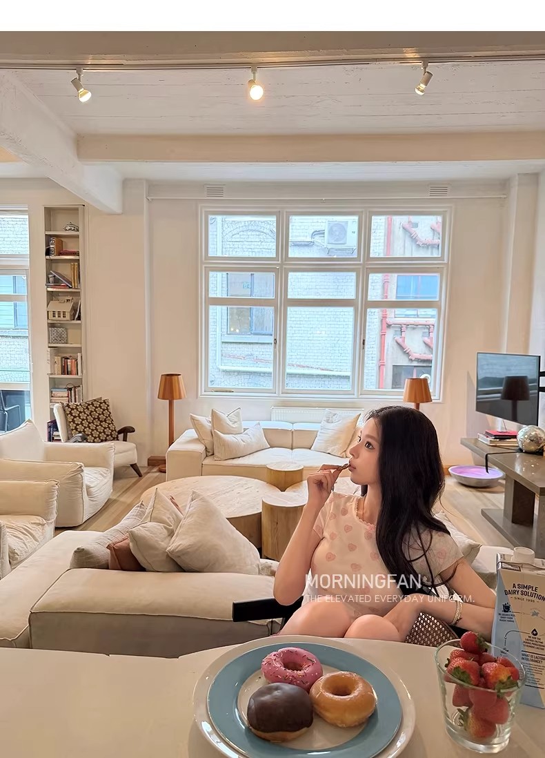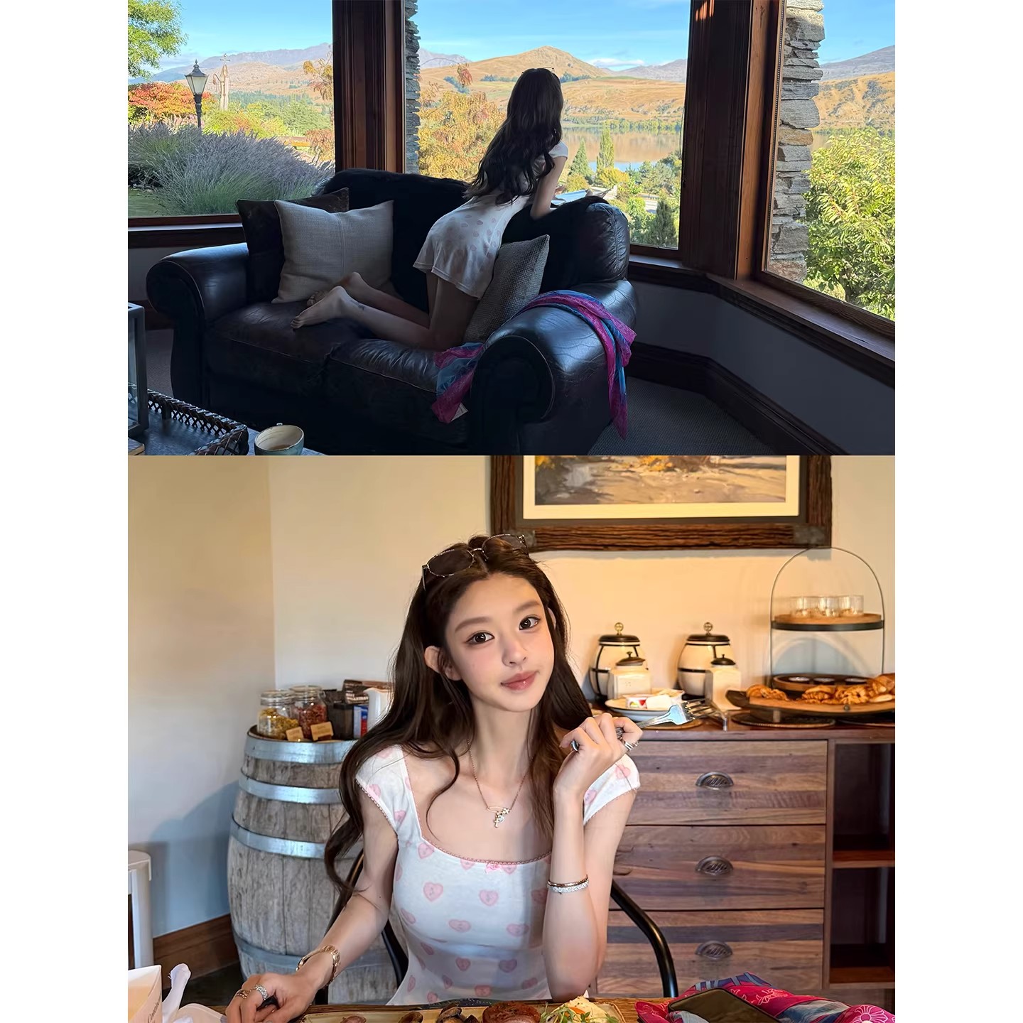 다우 시시 주간 맑은 하늘 분말 꽃잎 원 웨이 비스듬한 襟 레이스 조각 새로운 중식 맨위 여름 출퇴근 패션 세트