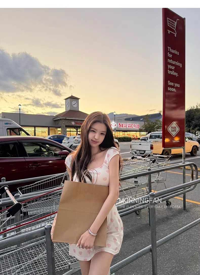 하나 달콤한 복숭아 yikett 밝은 ~ 중 빨간색 여름 오프숄더 니트 여성 드레스 허리 수축 슬림해 보이는 원피스 치마