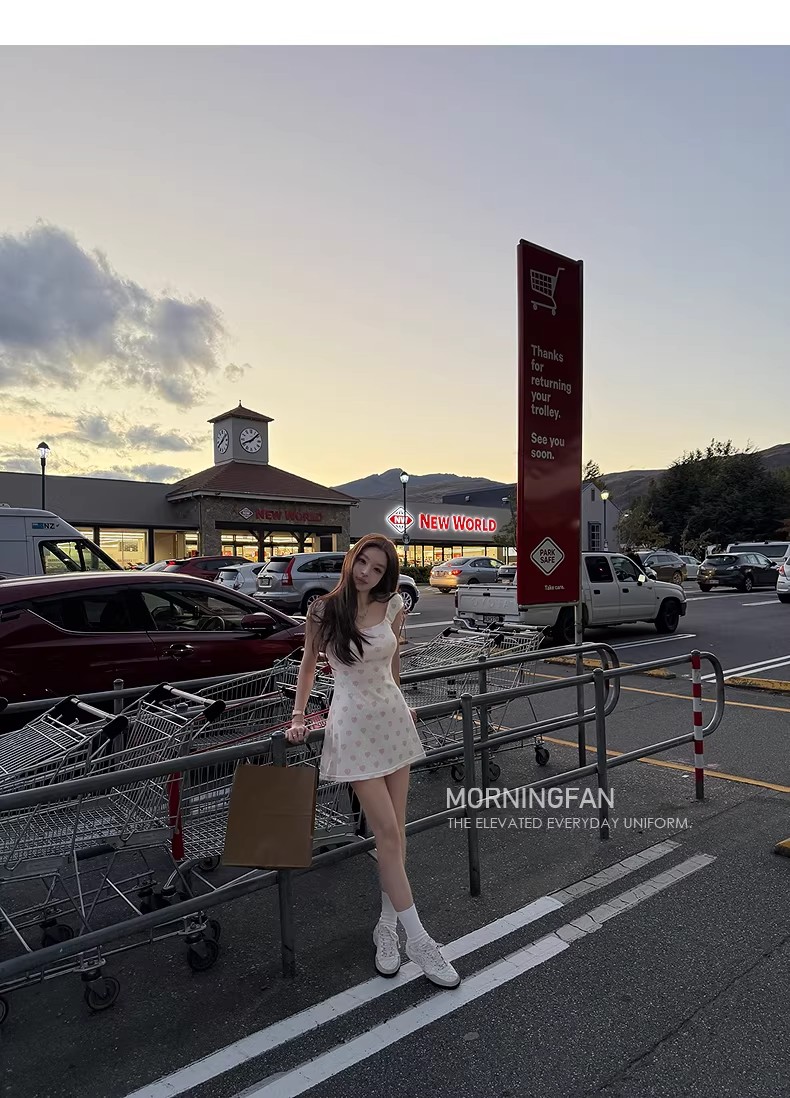 화이트 워터 여성 스와 리 작은 그는 벤 프랑스식 레트로 도트 무늬 튜브탑 여성 드레스 봄 여름 순수한 욕망 망사 미니 스커트