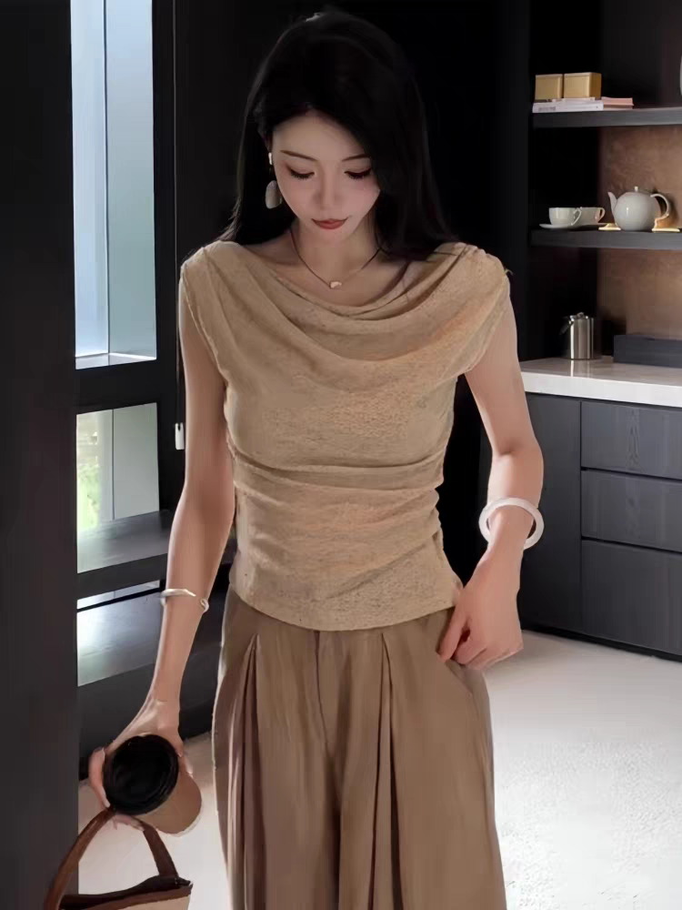한 부서 고유 한 잘 생긴 작은 날다 소매 반하이넥 니트 조끼 여성 2026 여름 디자인 센스 몸매 가꾸기 슬림해 보이는 맨위