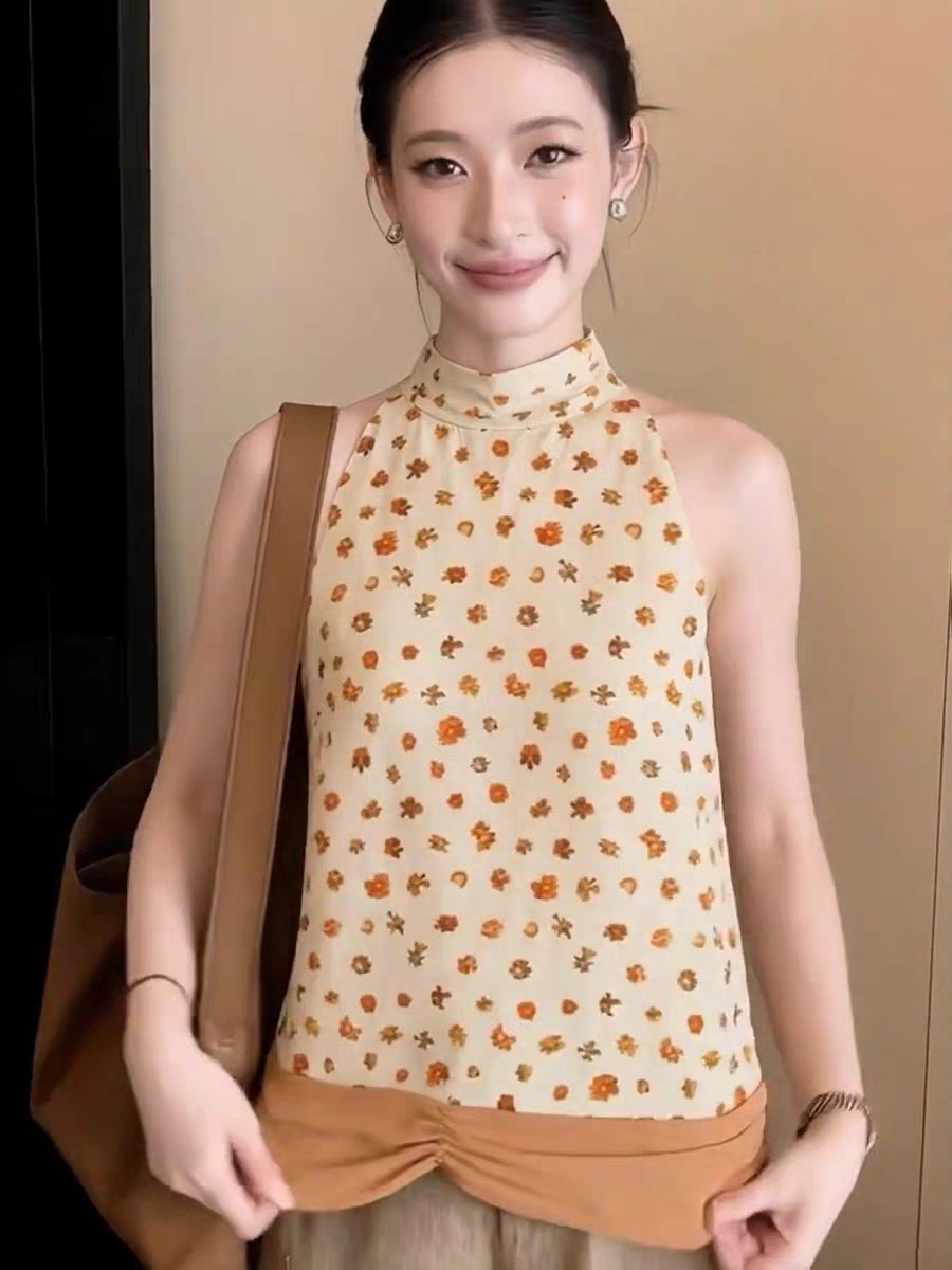 벨트 가슴 패드 여성 의류 캐미솔 부드러운 바람 꽃무늬 인사이드 가져 가라. 슬림해 보이는 2026 여름 맨위