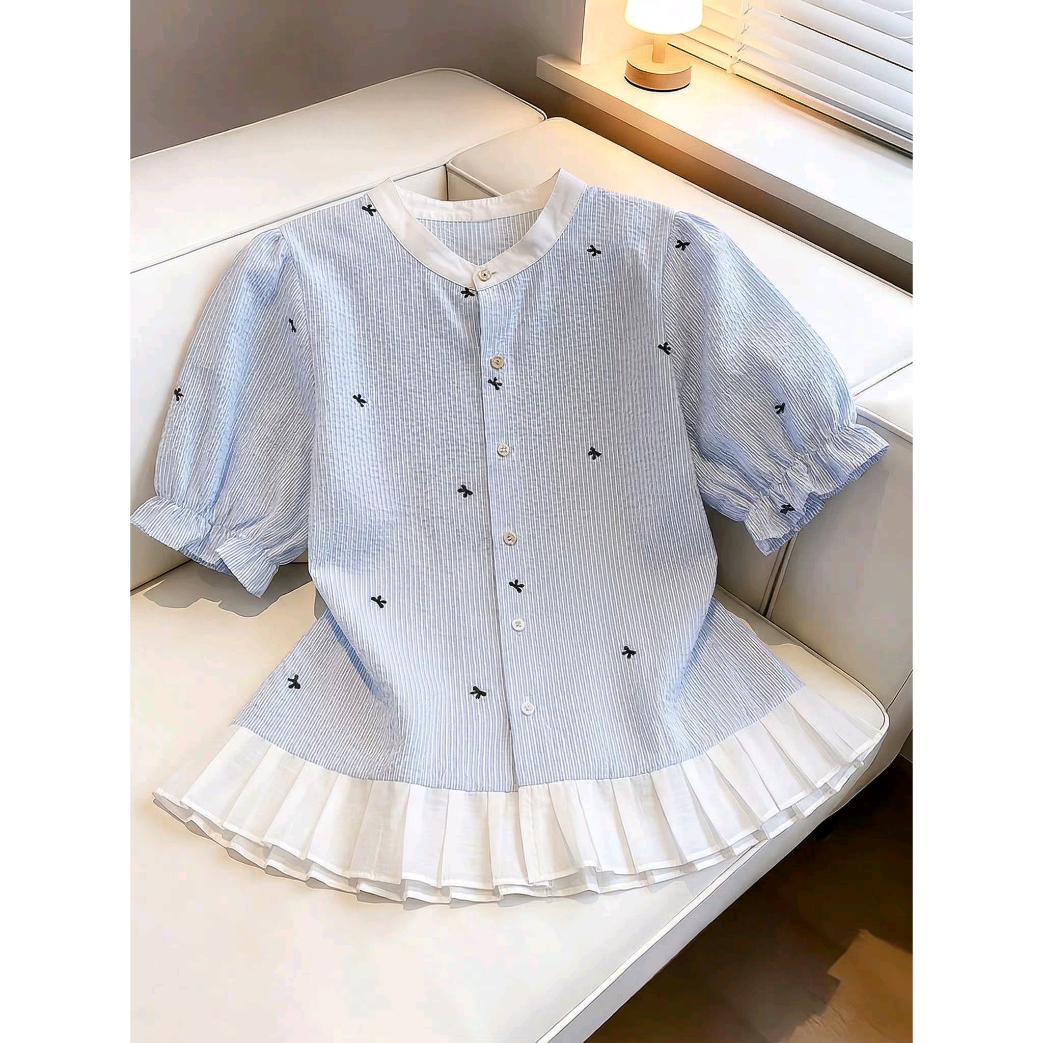 한 부서 ins 부드러운 달콤함 인형 폴로 칼라 작은 셔츠 여성 2026 여름 디자인 센스 연령 감소 몸매 가꾸기 다용도 셔츠