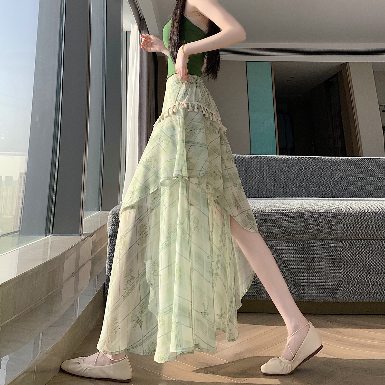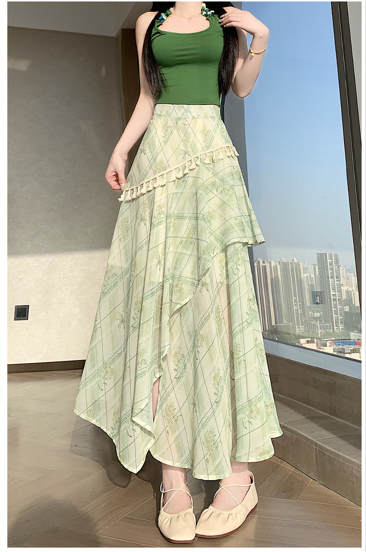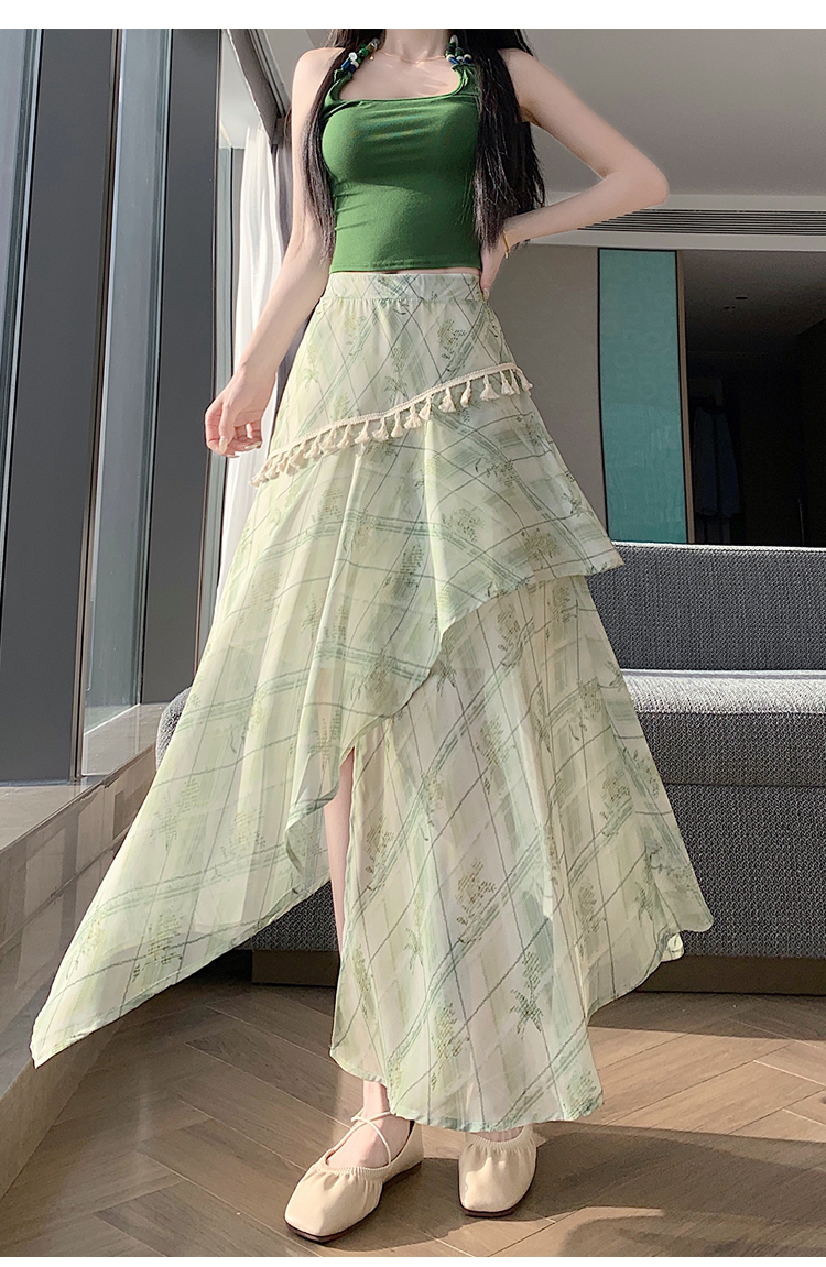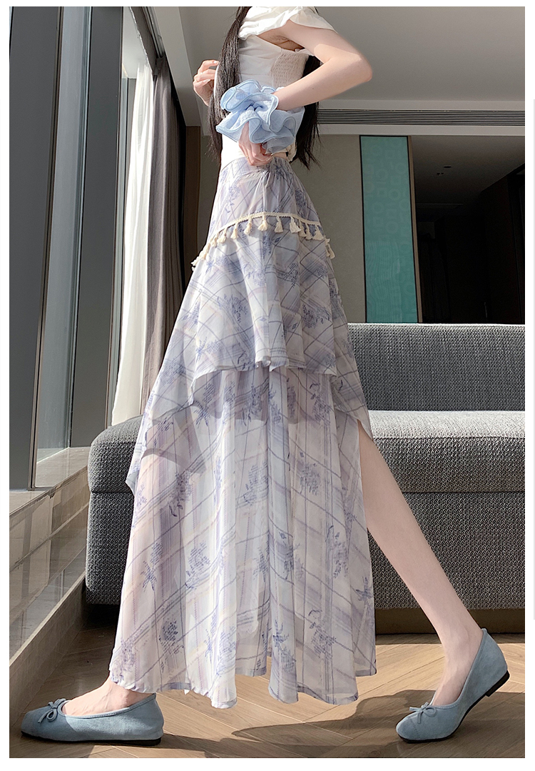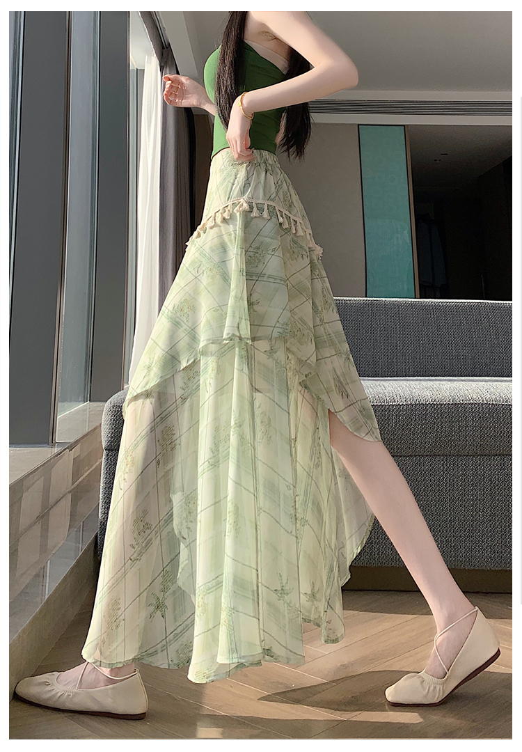 실사 한 부서 가벼움 우아한 불규칙 트임 반신 스커트 2026 여름 디자인 센스 프릴 롱 스커트