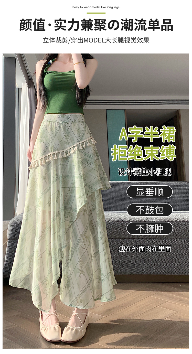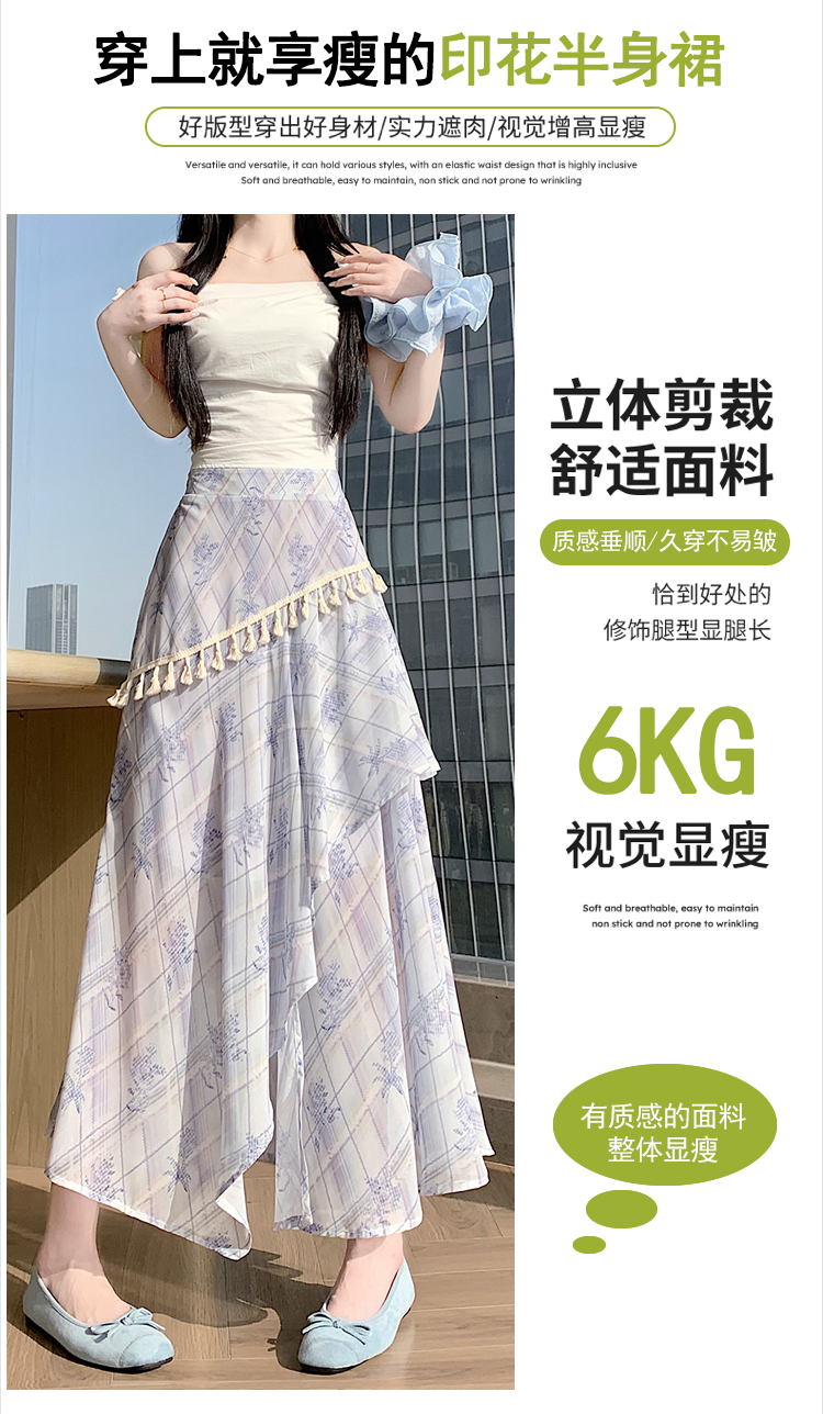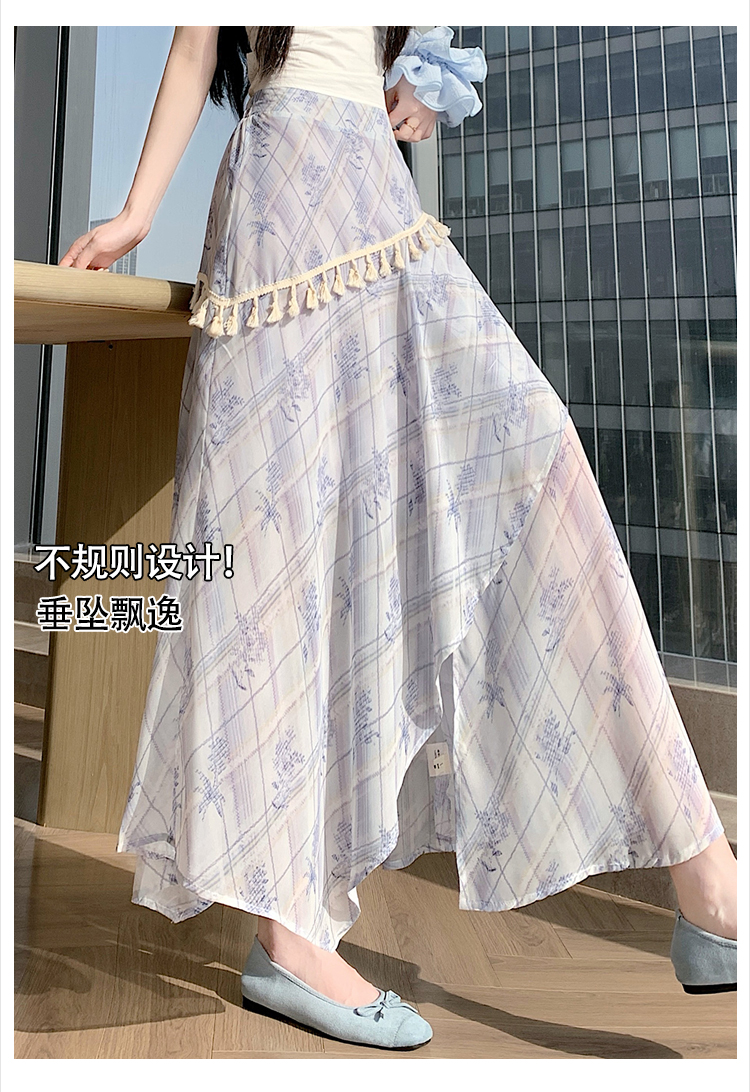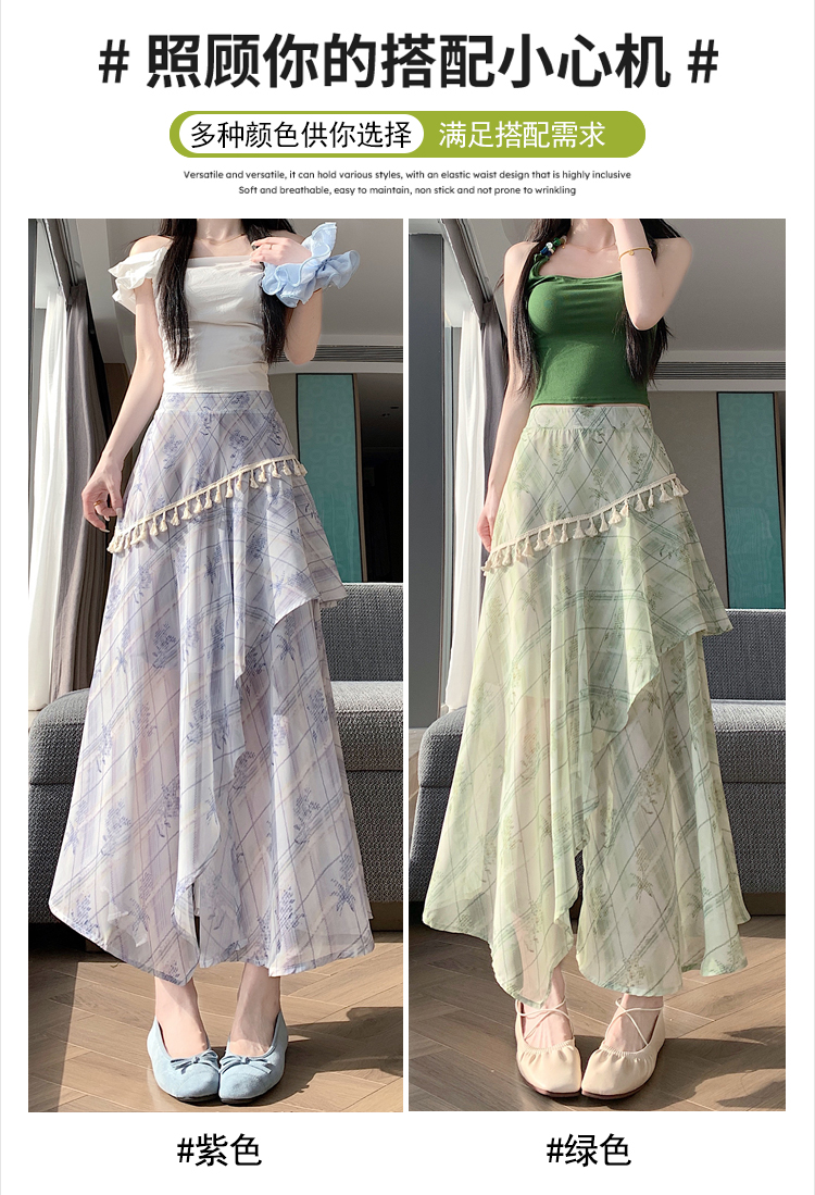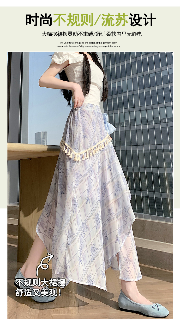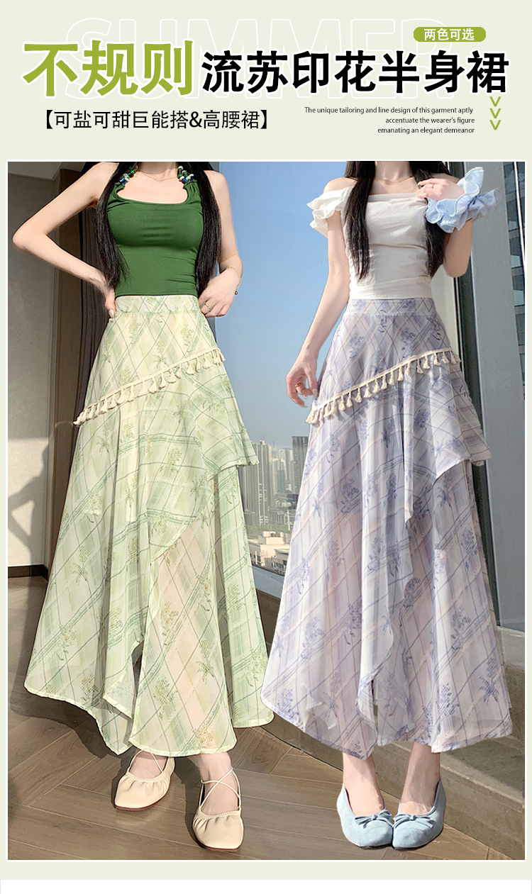 실사 디자인 센스 불규칙 레트로 술 트임 반신 스커트 2026 여름 슬림해 보이는 다용도 꽃무늬 A라인 스커트