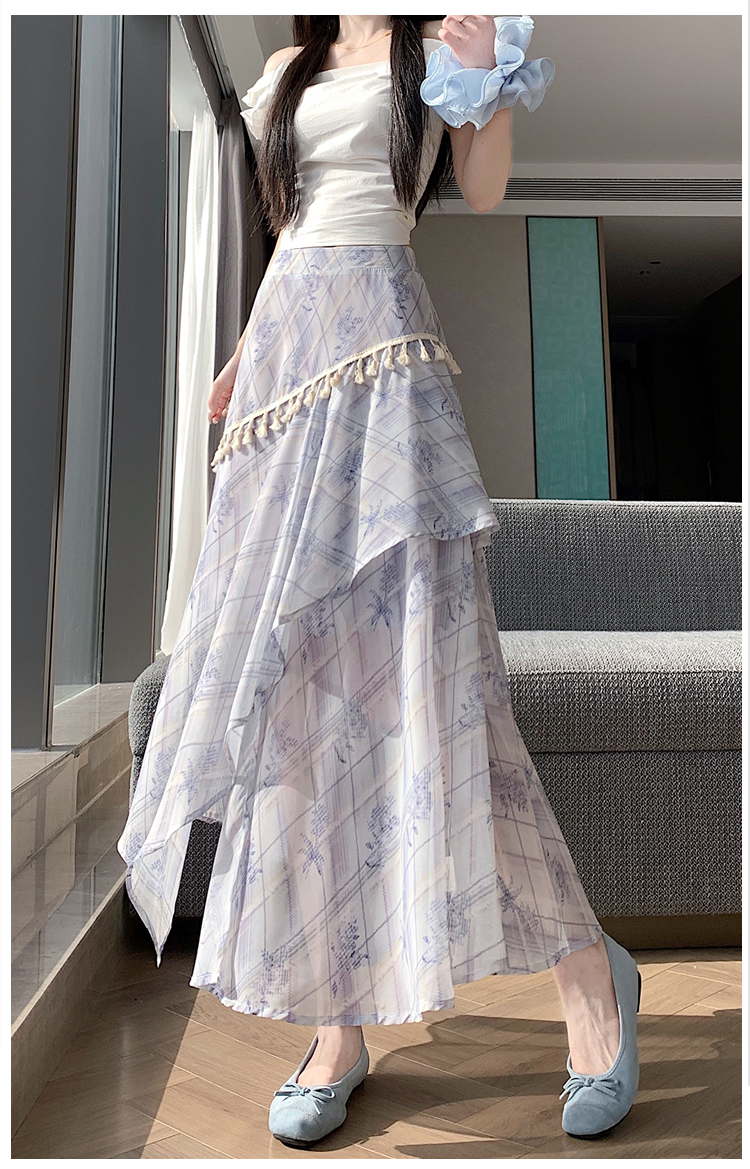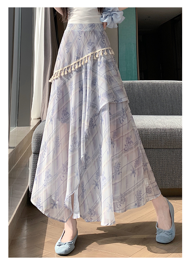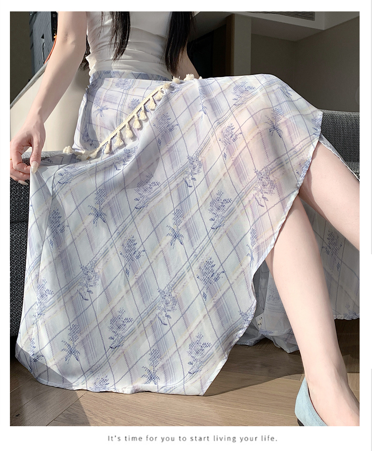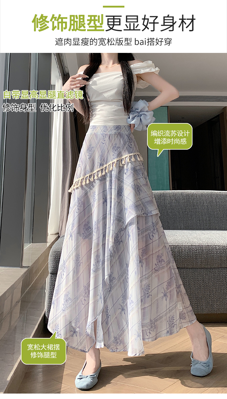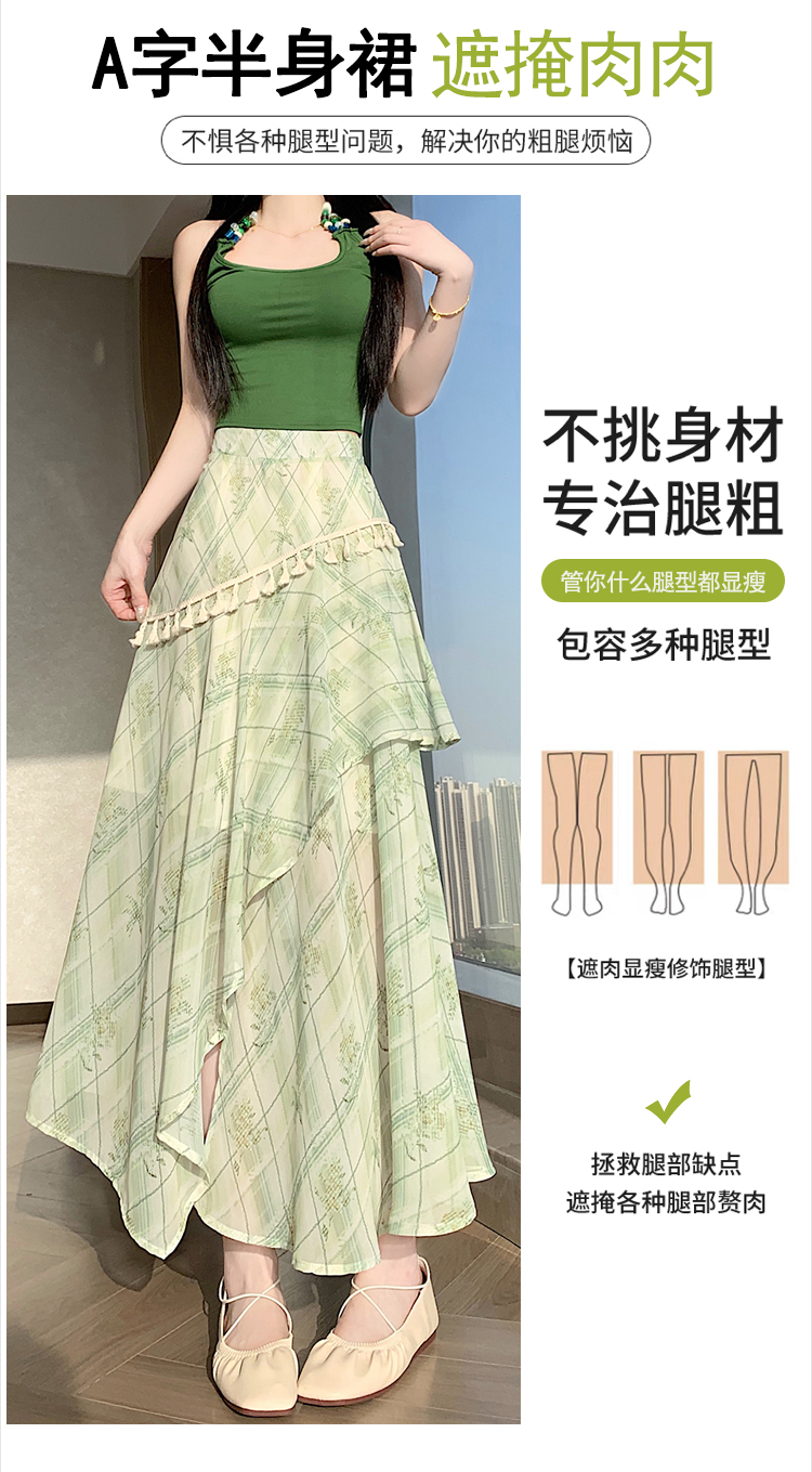 실사 디자인 센스 불규칙 레트로 술 트임 반신 스커트 2026 여름 슬림해 보이는 다용도 꽃무늬 A라인 스커트