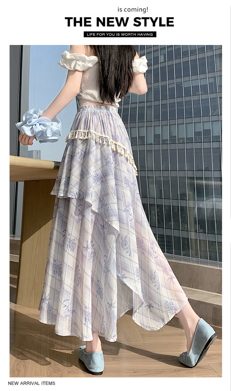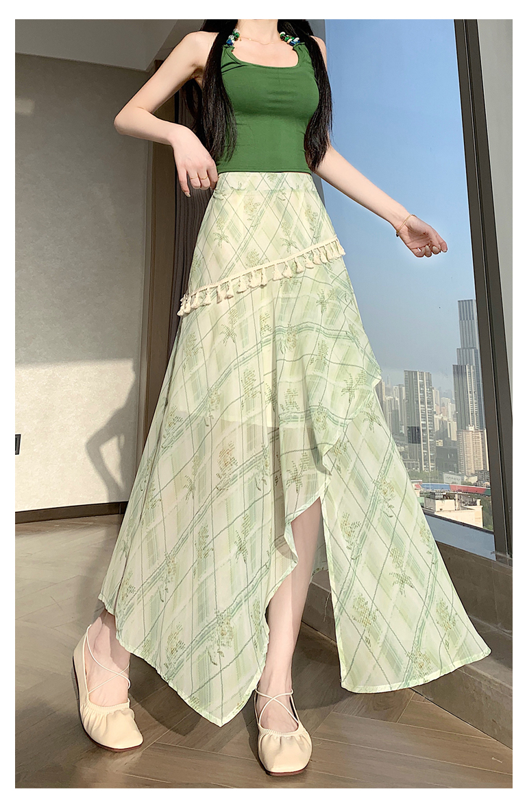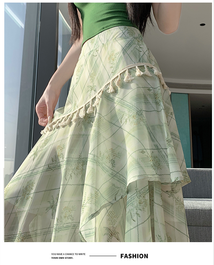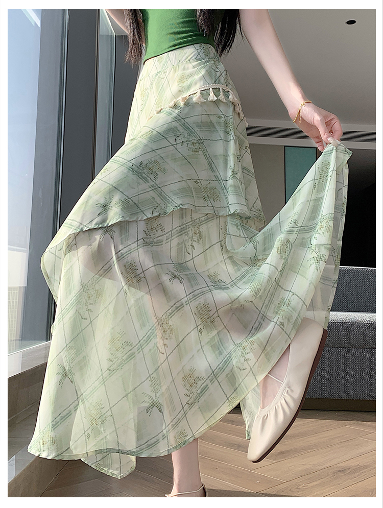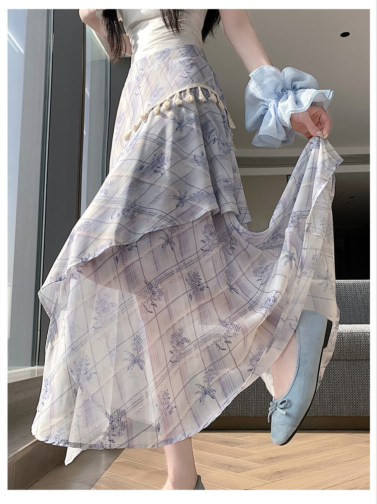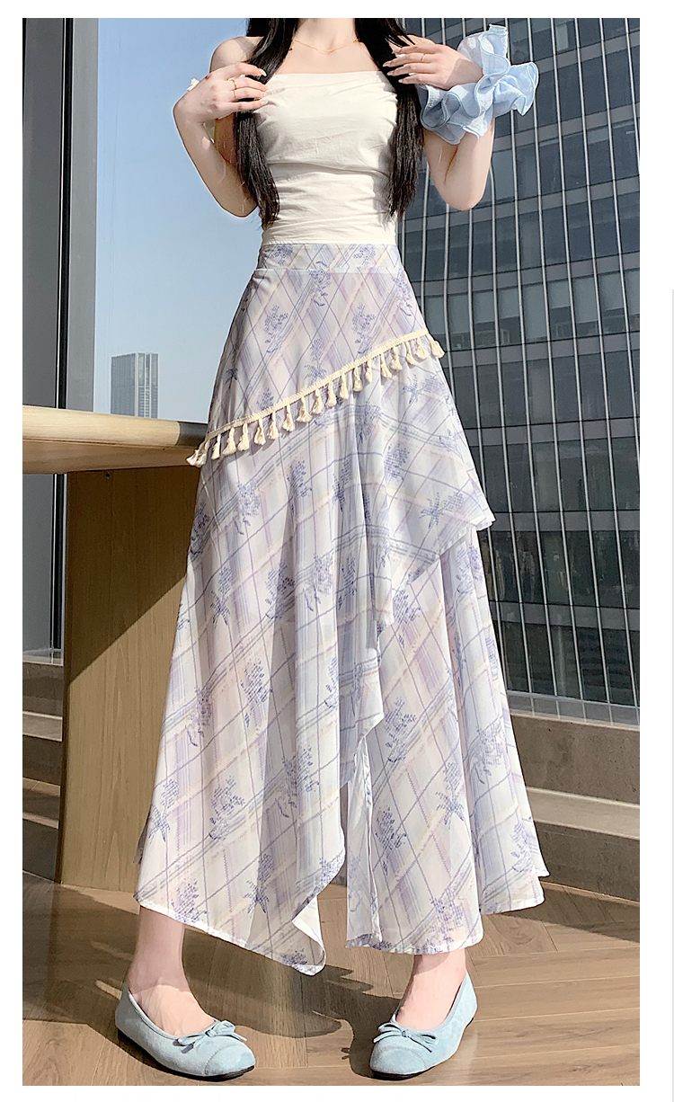 실사 디자인 센스 불규칙 레트로 술 트임 반신 스커트 2026 여름 슬림해 보이는 다용도 꽃무늬 A라인 스커트