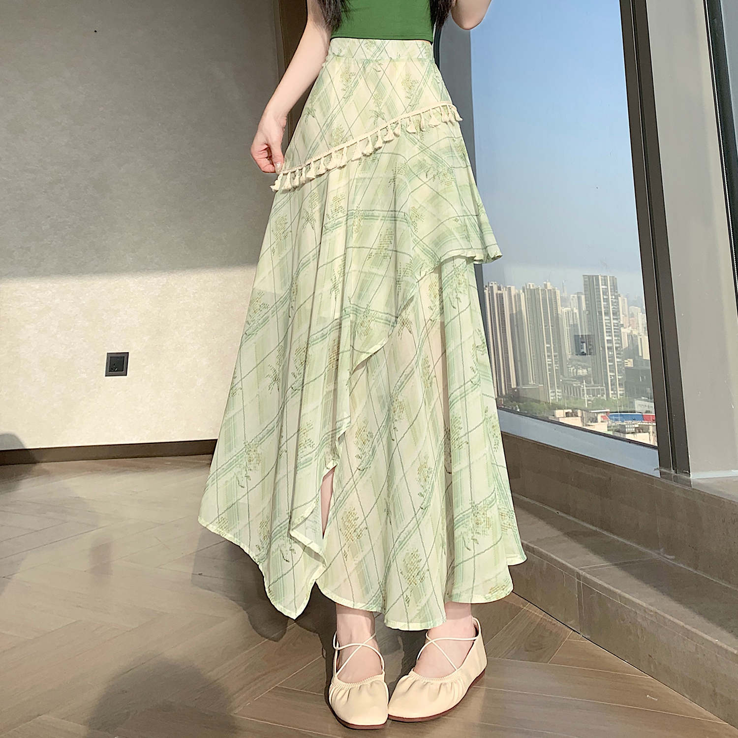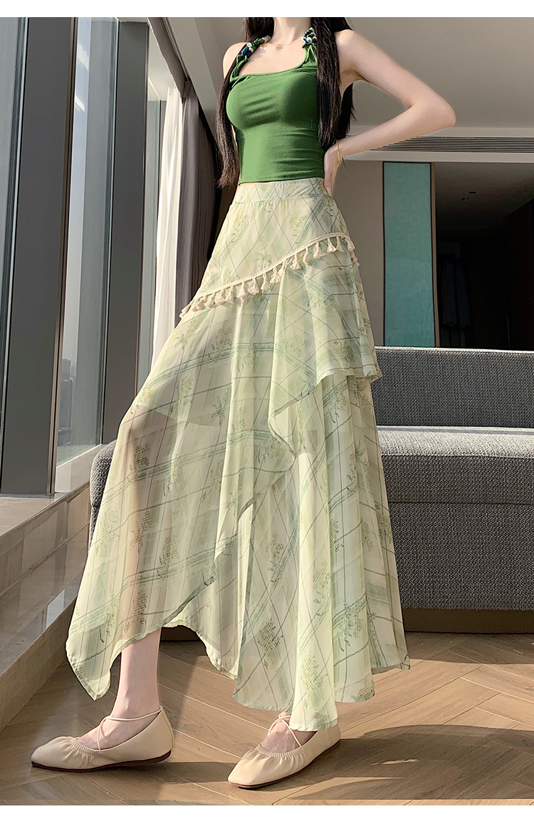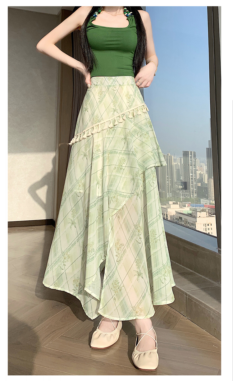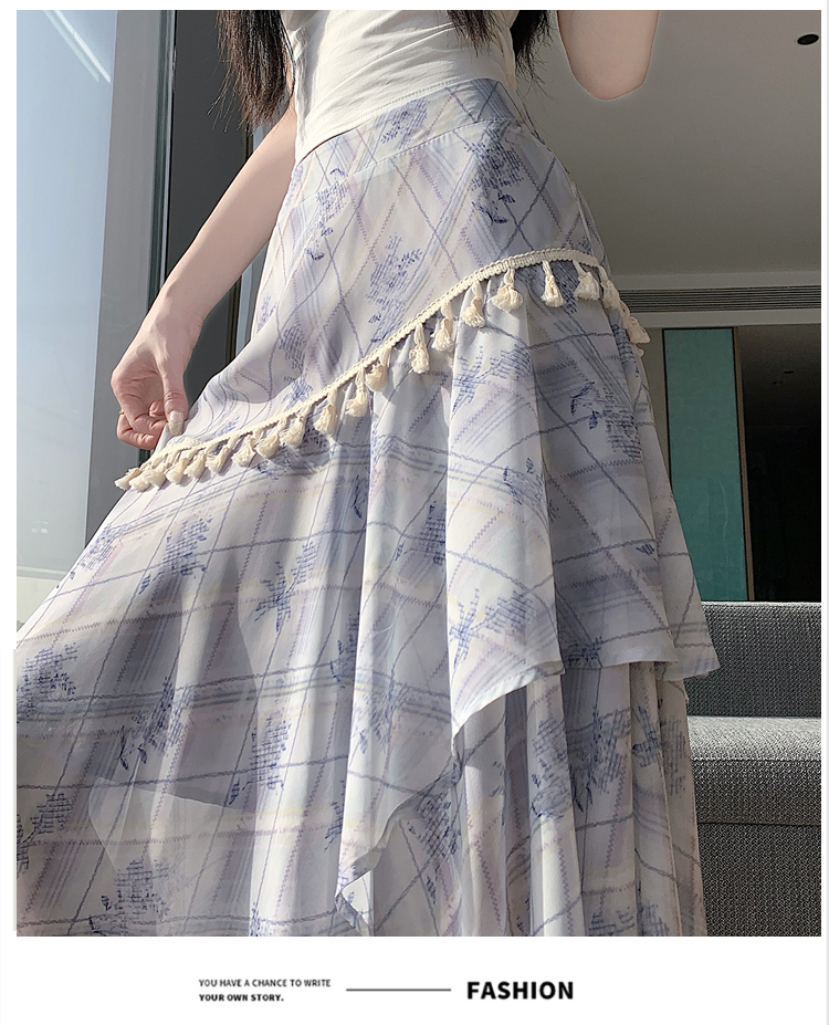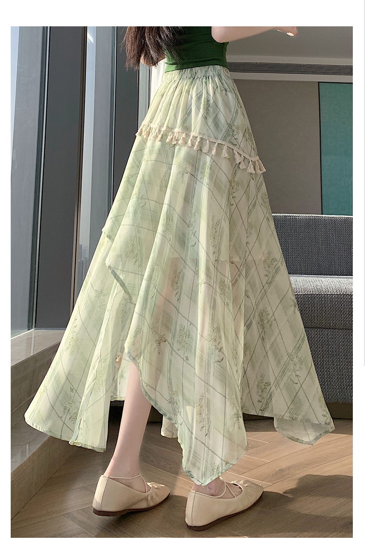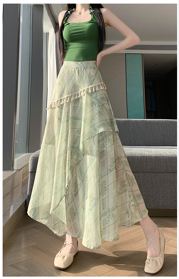 실사 디자인 센스 불규칙 레트로 술 트임 반신 스커트 2026 여름 슬림해 보이는 다용도 꽃무늬 A라인 스커트