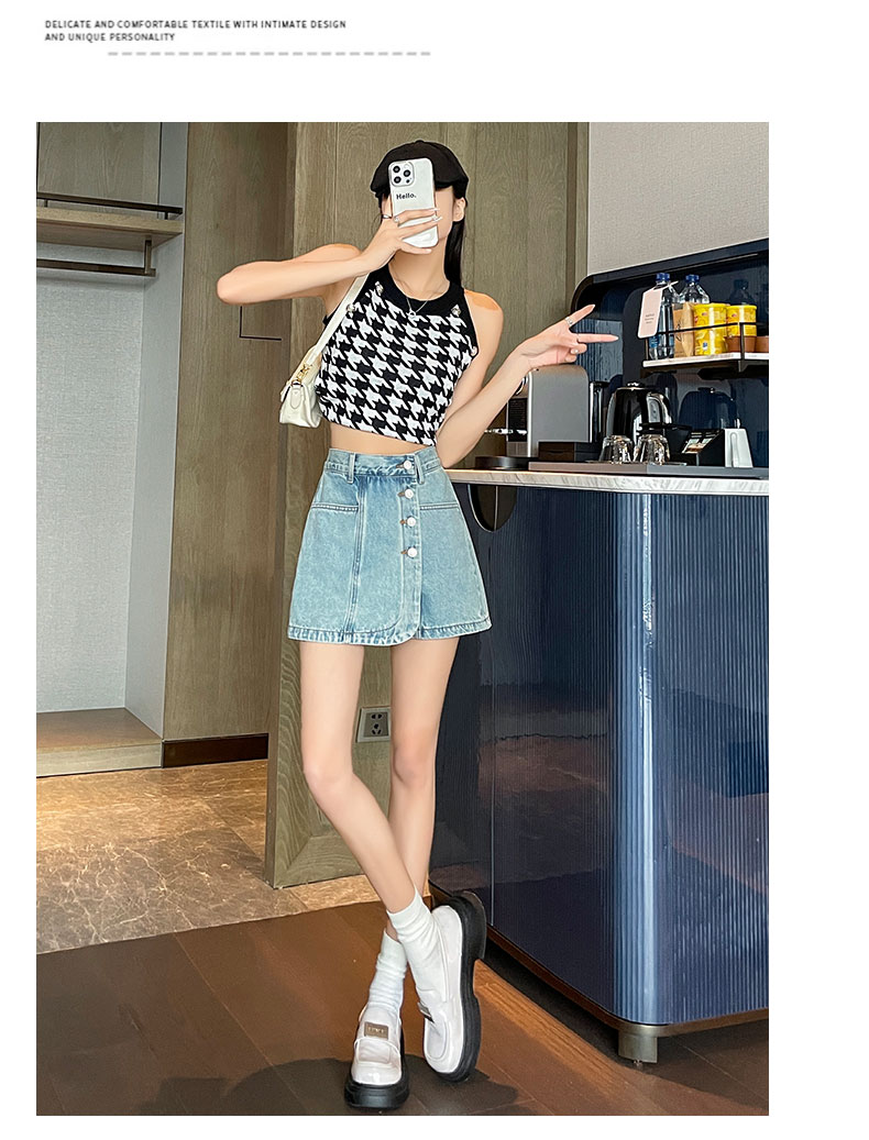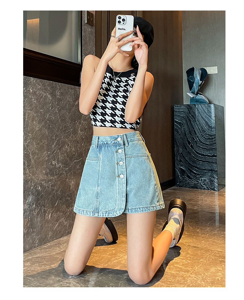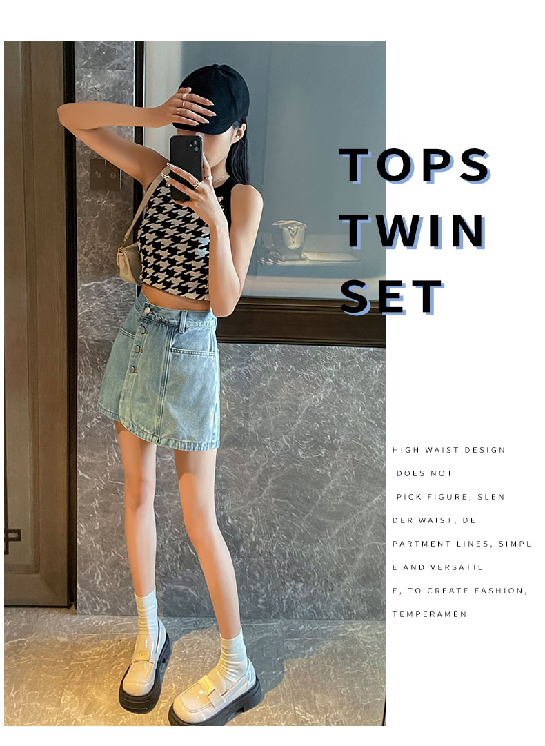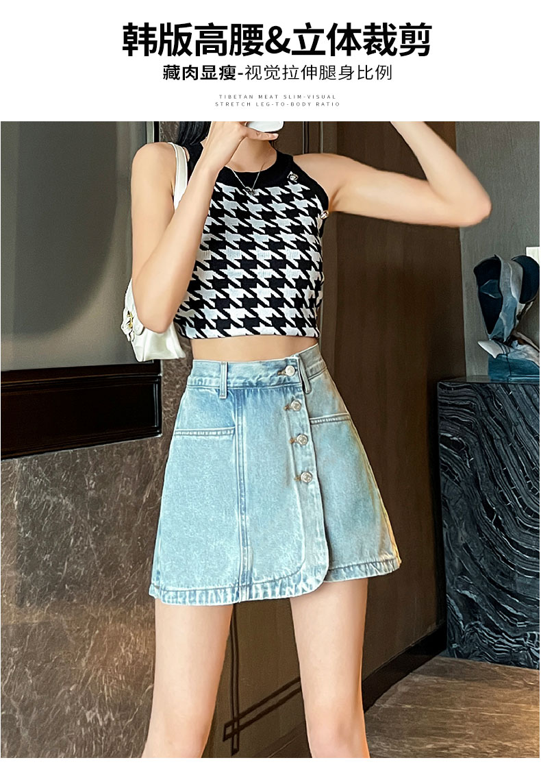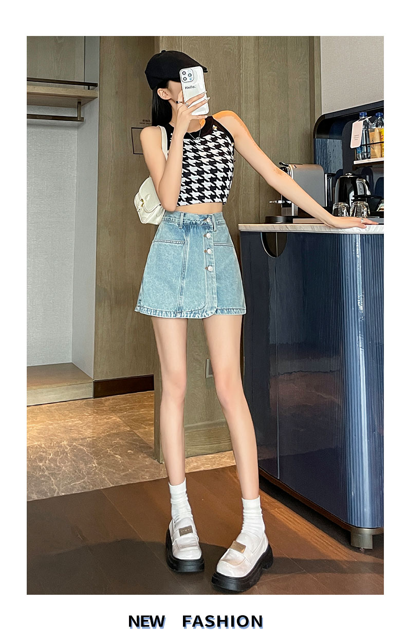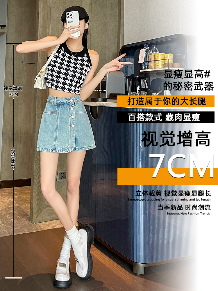 실사 하이웨이스트 데님 미니 스커트 여성 여름 새로운 작은 키 한 마디 슬림해 보이는 타이트 스커트 핫걸 노출 방지 반신 스커트