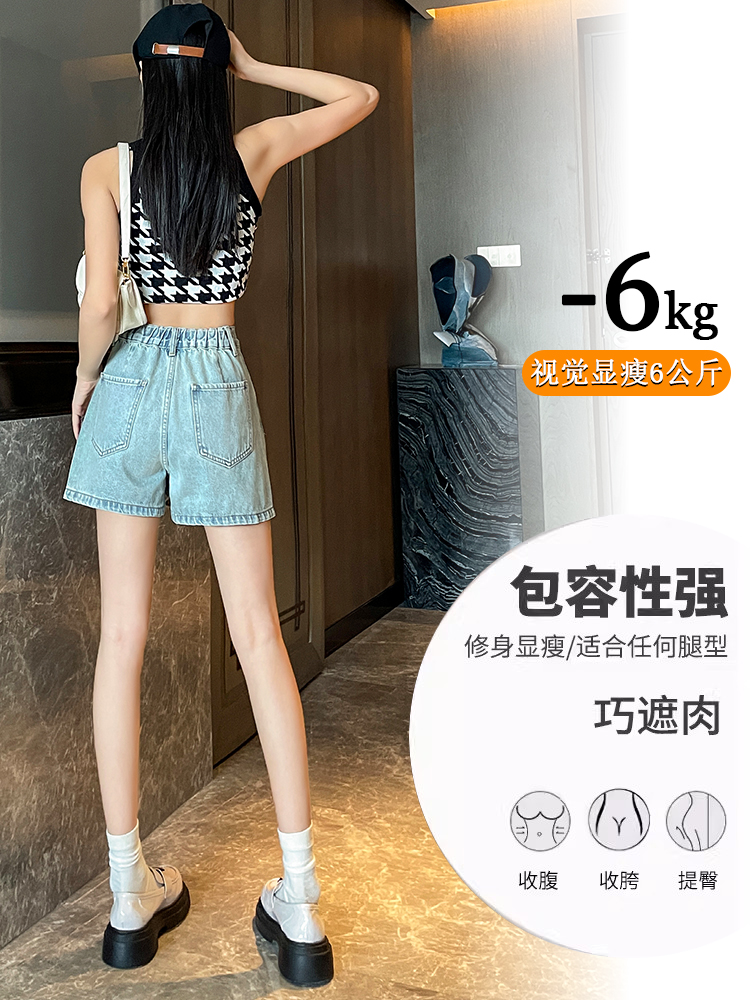 실사 핫걸 데님 반바지 여성 여름 얇은 스타일 하이웨이스트 슬림해 보이는 인터넷 유명인 디자인 센스 작은 키 핫 바지