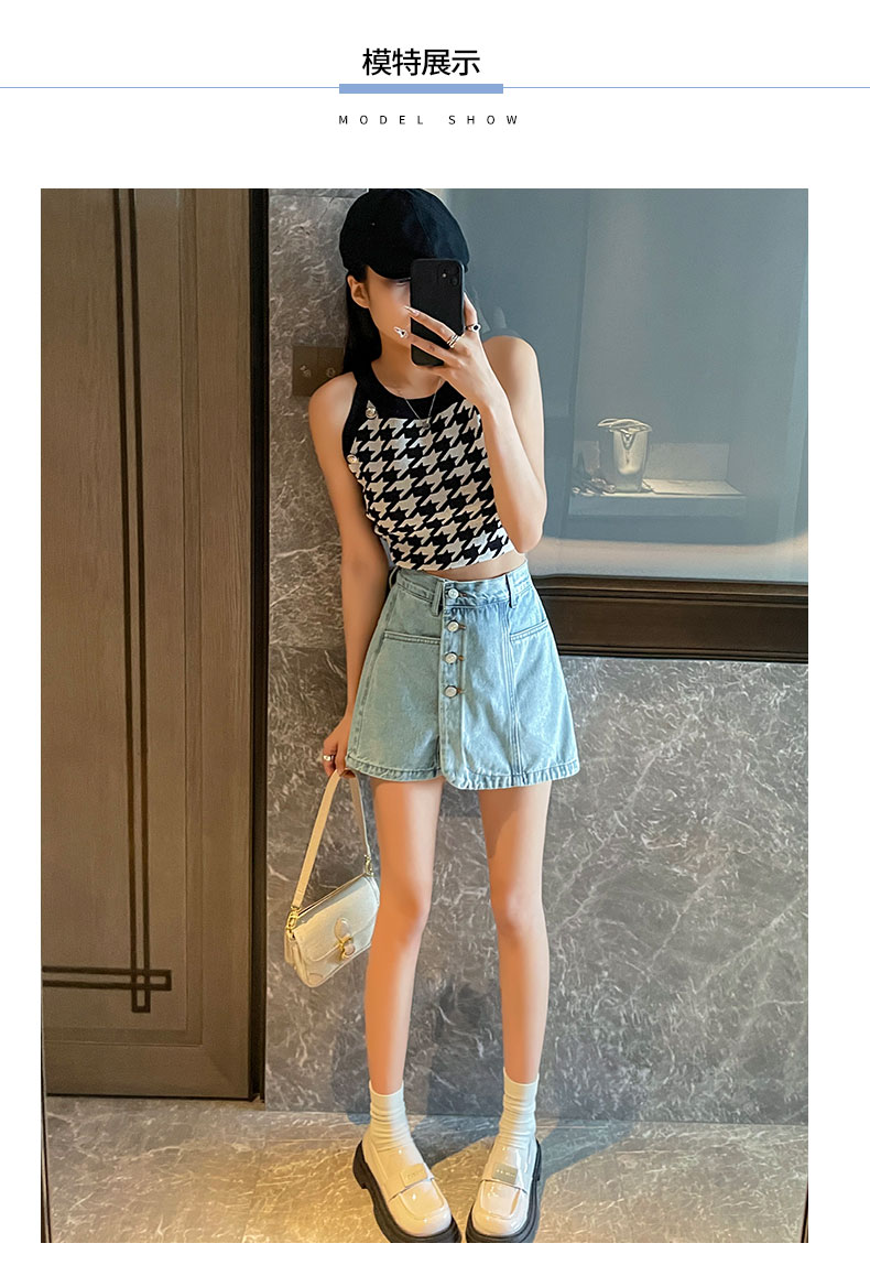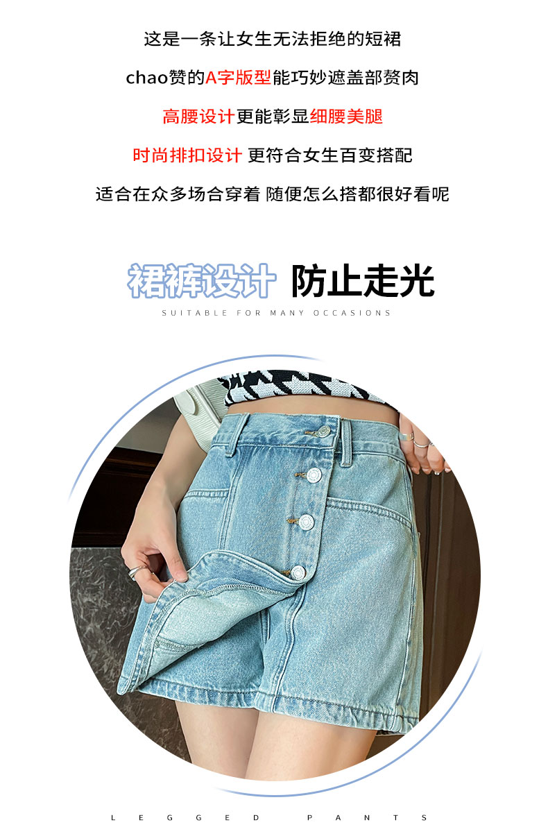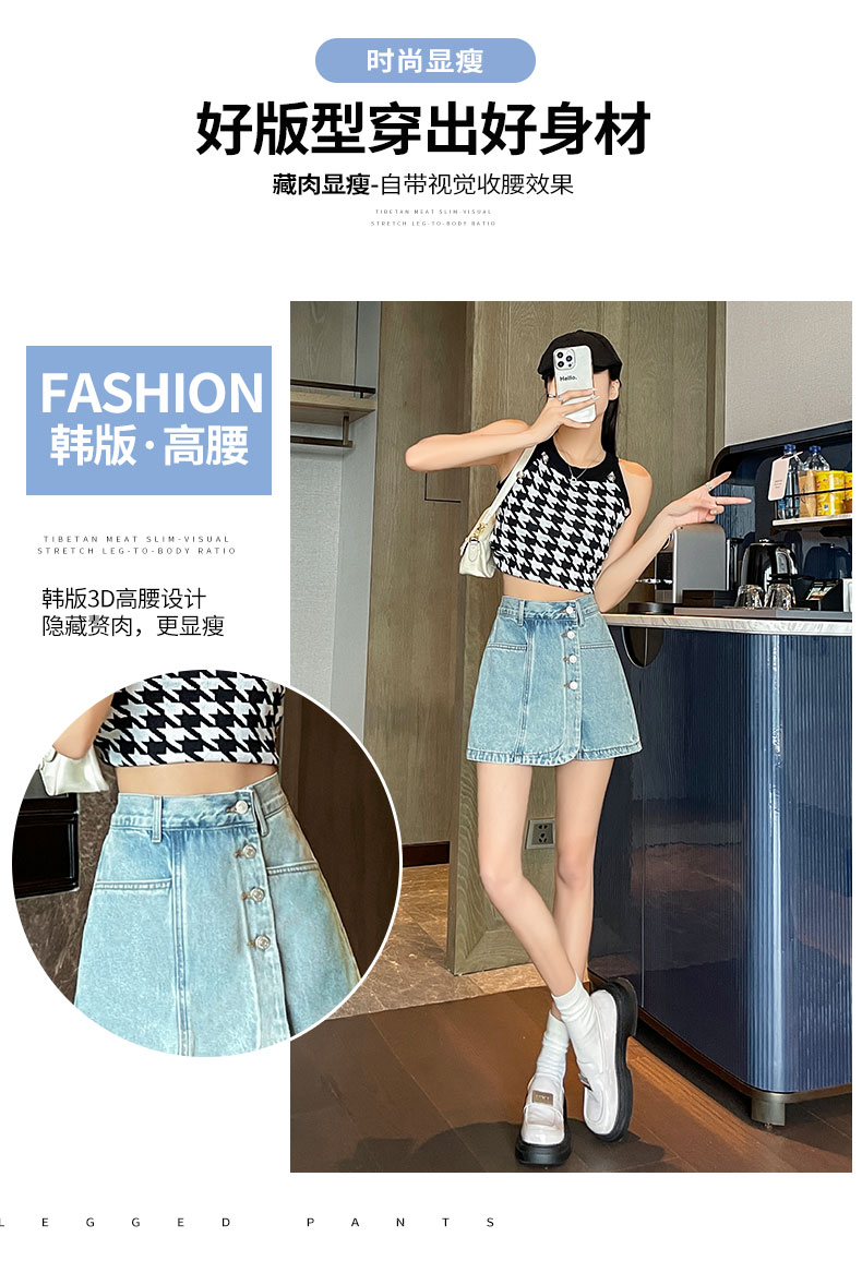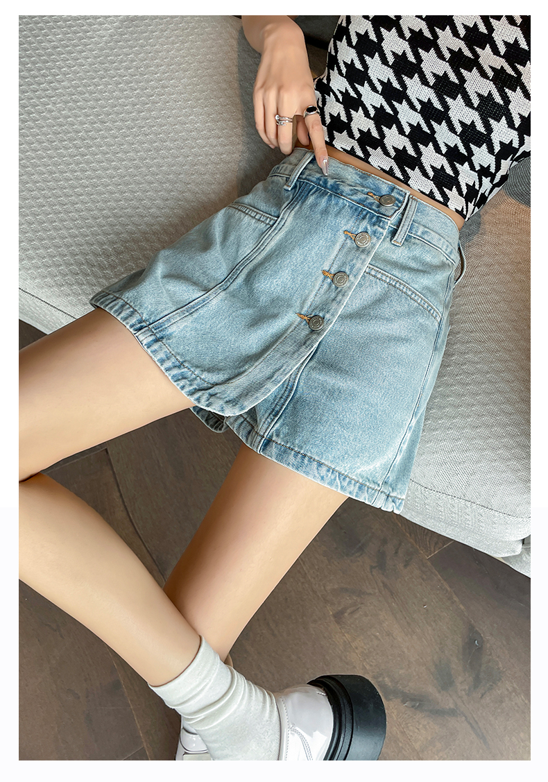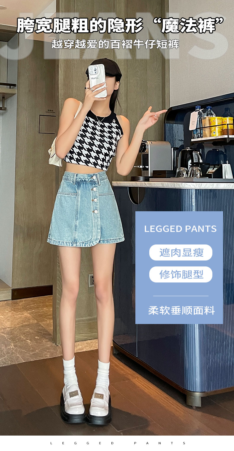 실사 핑크색 데님 짧은 치마바지 여성 여름 얇은 스타일 하이웨이스트 슬림해 보이는 반바지 디자인 센스 인터넷 유명인 핫걸 뜨거운 바지